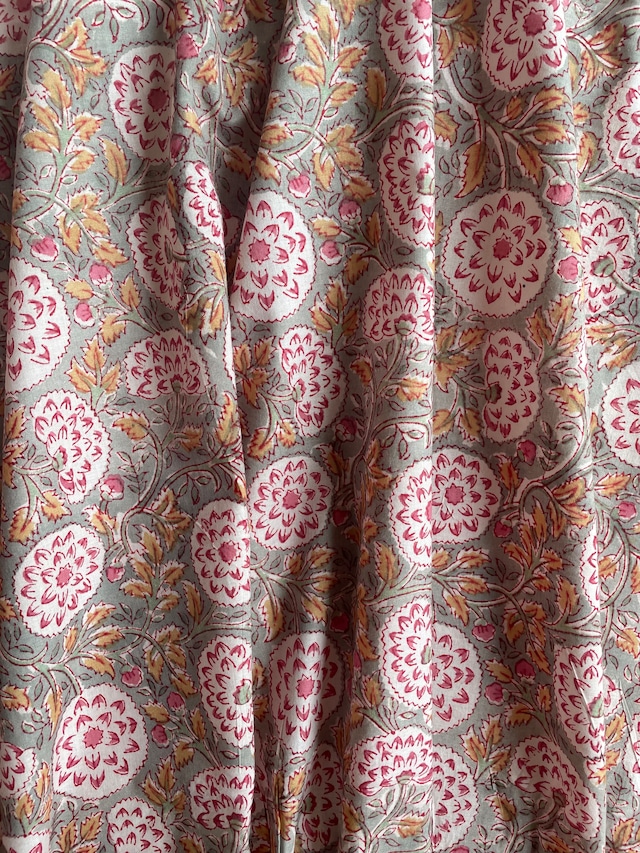 木製の型を手で押して色を重ねていくインドの伝統的な ブロックプリントの生地です。 機械では出せない手仕事ならではの 柔らかい雰囲気が魅力です。 *コットン100% *生地巾 約110cm *質感 少し張りがあります *厚さ 薄手 ◆販売単位◆ ・50cmずつの販売となります。 ・表示価格は50cmの価格です。 ・ご注文の際は 50cm 1 1m 2 とご入力ください。 ◆ご購入に関する注意点◆ ・商品は明るい昼間の自然光で撮影しております。 お使いのモニターの設定や光の当たり具合などで 実際の色味と異なって見える場合がございます。 ご了承の上、ご購入をお願い致します。 Instagramで動画をあげておりますので そちらもあわせてご覧ください。 ・全てインド産です。 一つ一つ手染めの為、表面のキズ、染めムラ(色の濃淡) プリントの欠け、ズレ、カスレ、シミまた歪等が ある場合がございます。 それもブロックプリントの魅力です。 当店では良品として販売しております。 ・はじめの数回は色落ちする可能性がございます。 お洗濯は単独でお願いいたします。 また、染料の匂いが残っています。 ご注意ください。 ・カット部分がまっすぐでない場合がございます。 ・海外製品の為、日本製品のような品質ではございません。 ◆送料について◆ 基本的にはクリックポストでの発送です。 厚みがオーバーした場合はレターパックプラス またはゆうパックでのお届けとなります。 発送完了メールでご確認ください。 ※追加料金はいただいておりませんのでご安心ください。