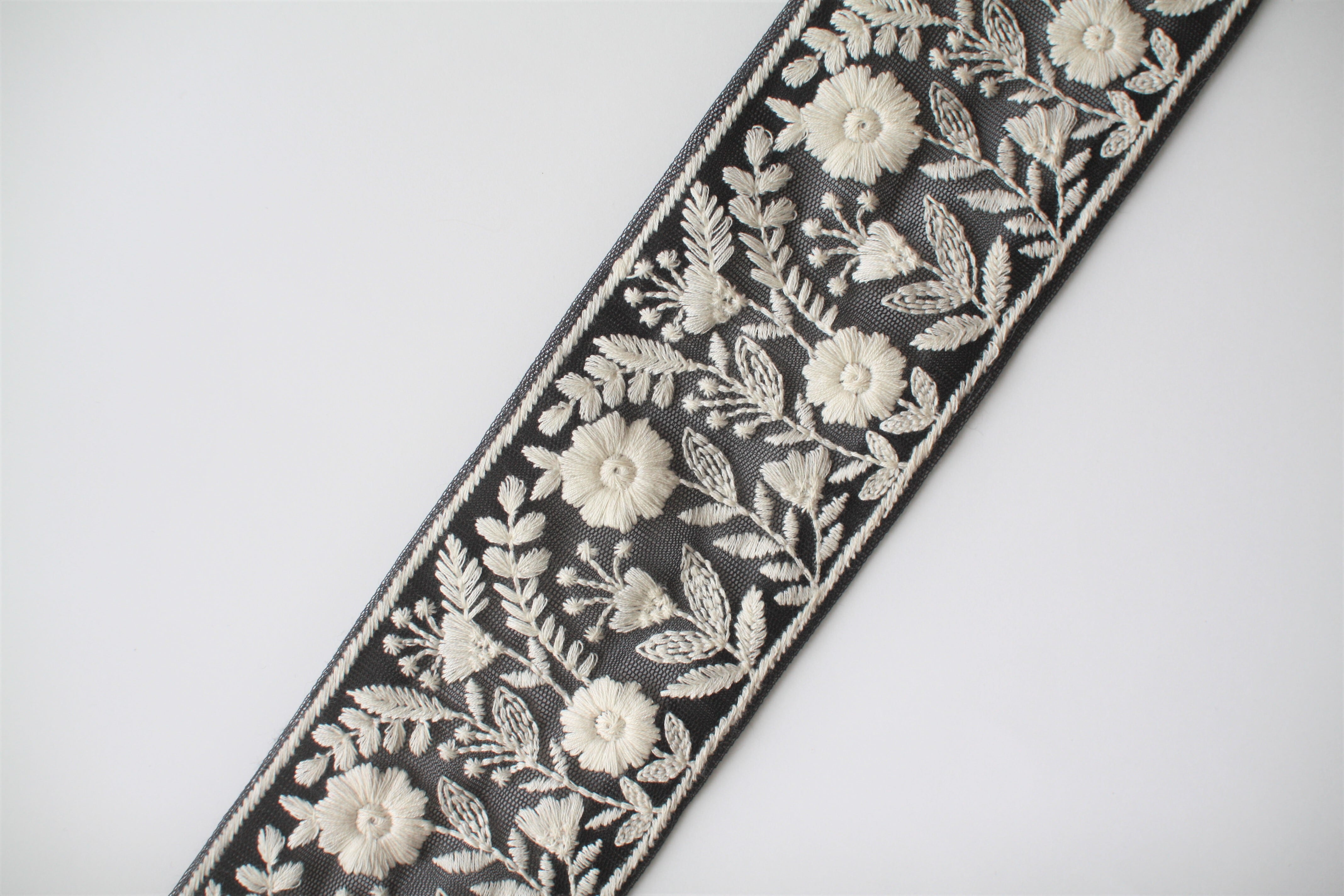 ◆1mカット済◆チュール花柄刺繍リボン・ブラック