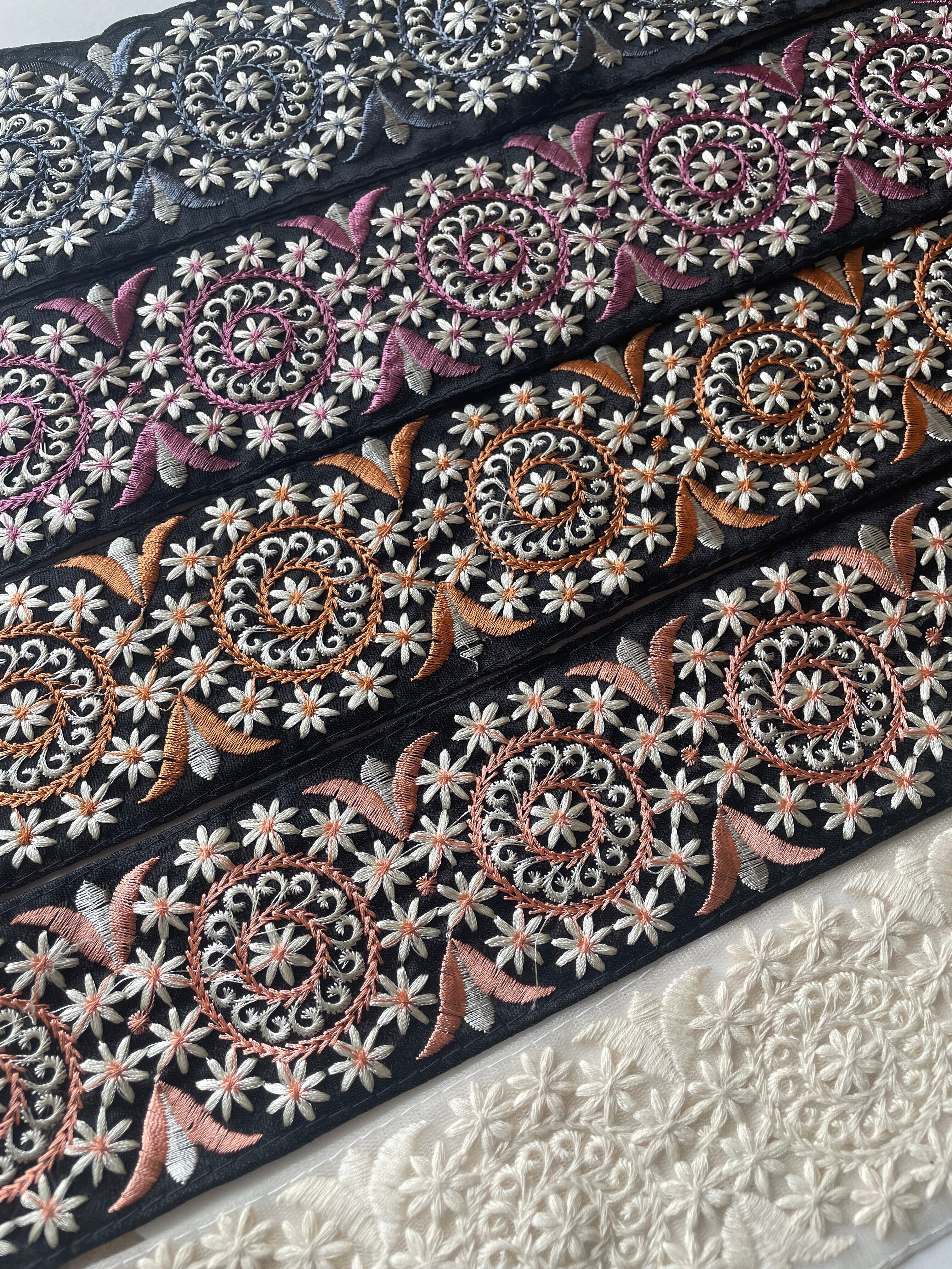 ◆1mカット済◆チュール花柄刺繍リボン・グレー