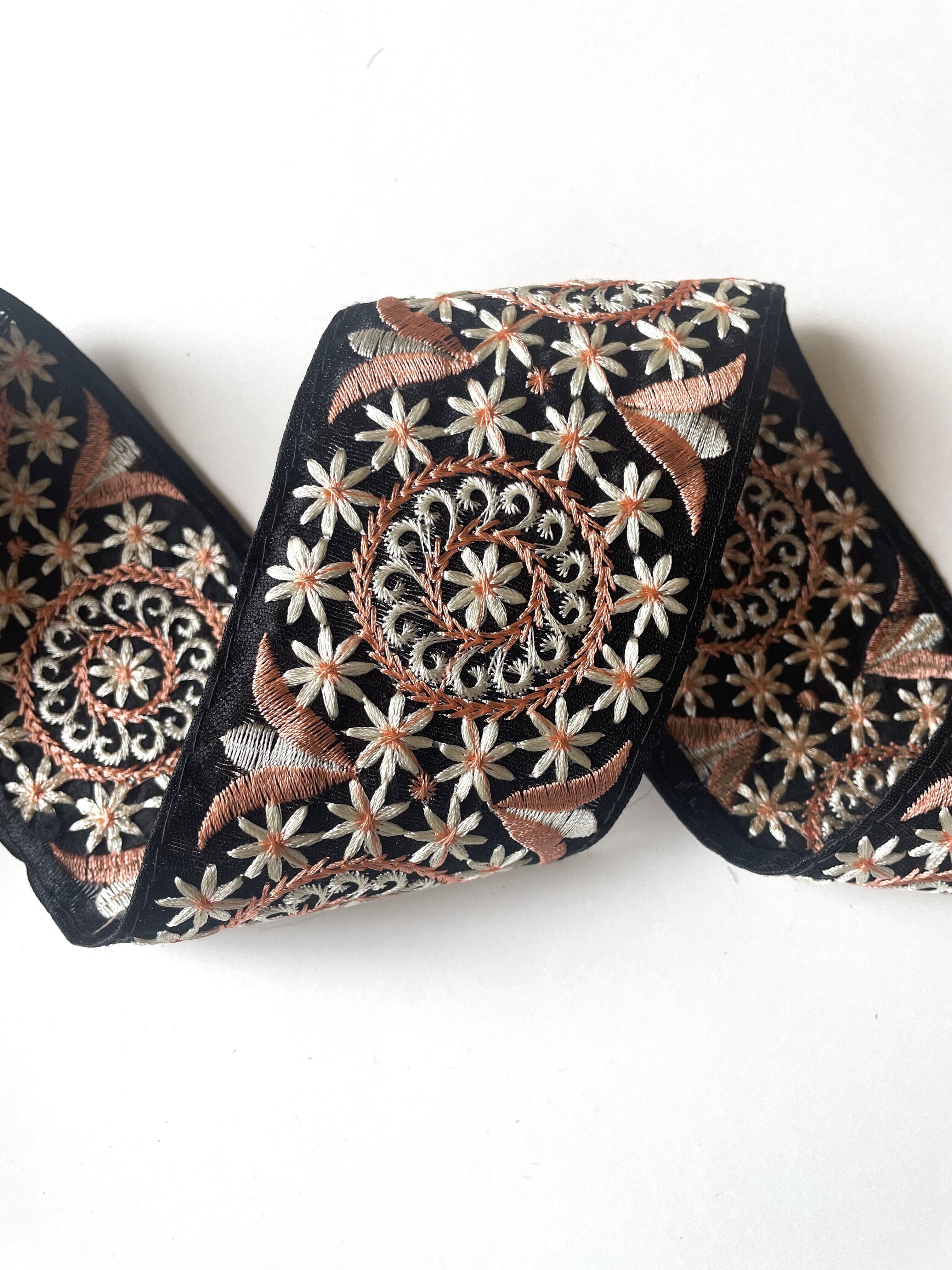 ◆1mカット済◆チュール花柄刺繍リボン・ネールピンク