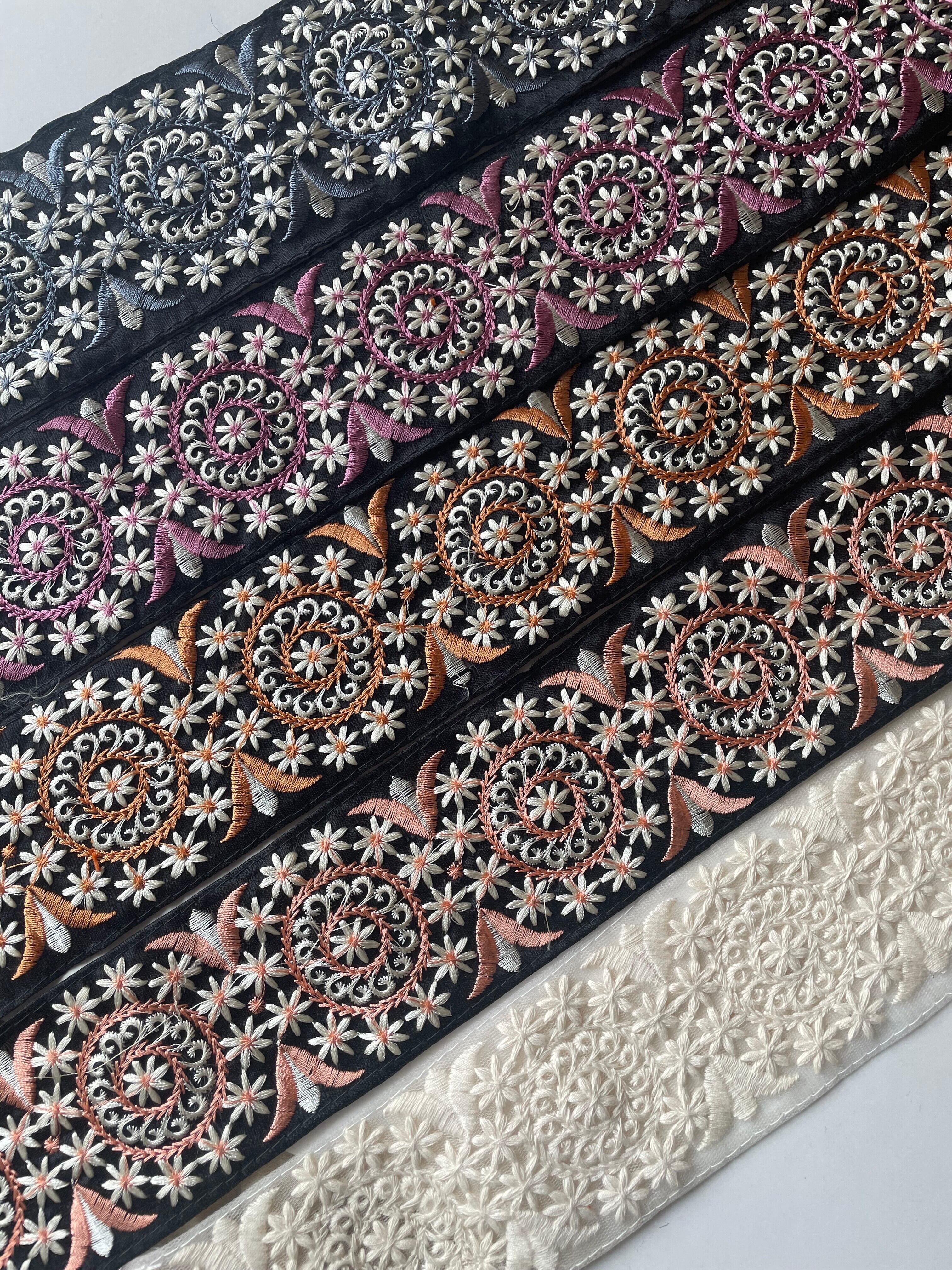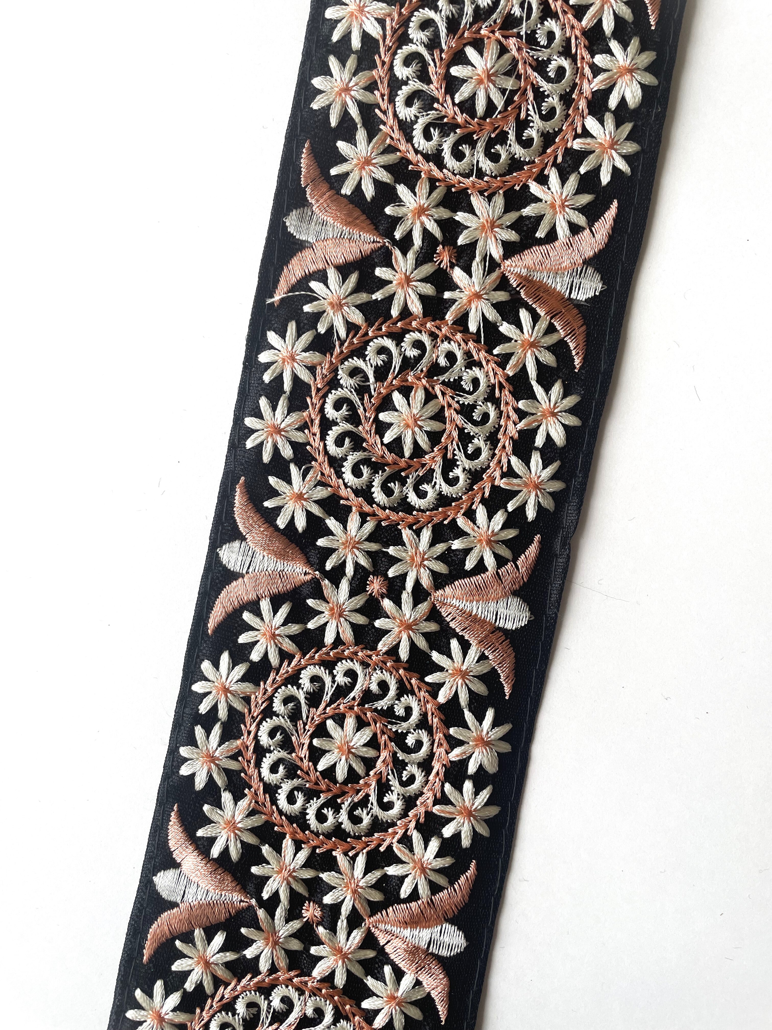 ◆65cmカット済◆チュール花柄刺繍リボン・ネールピンク