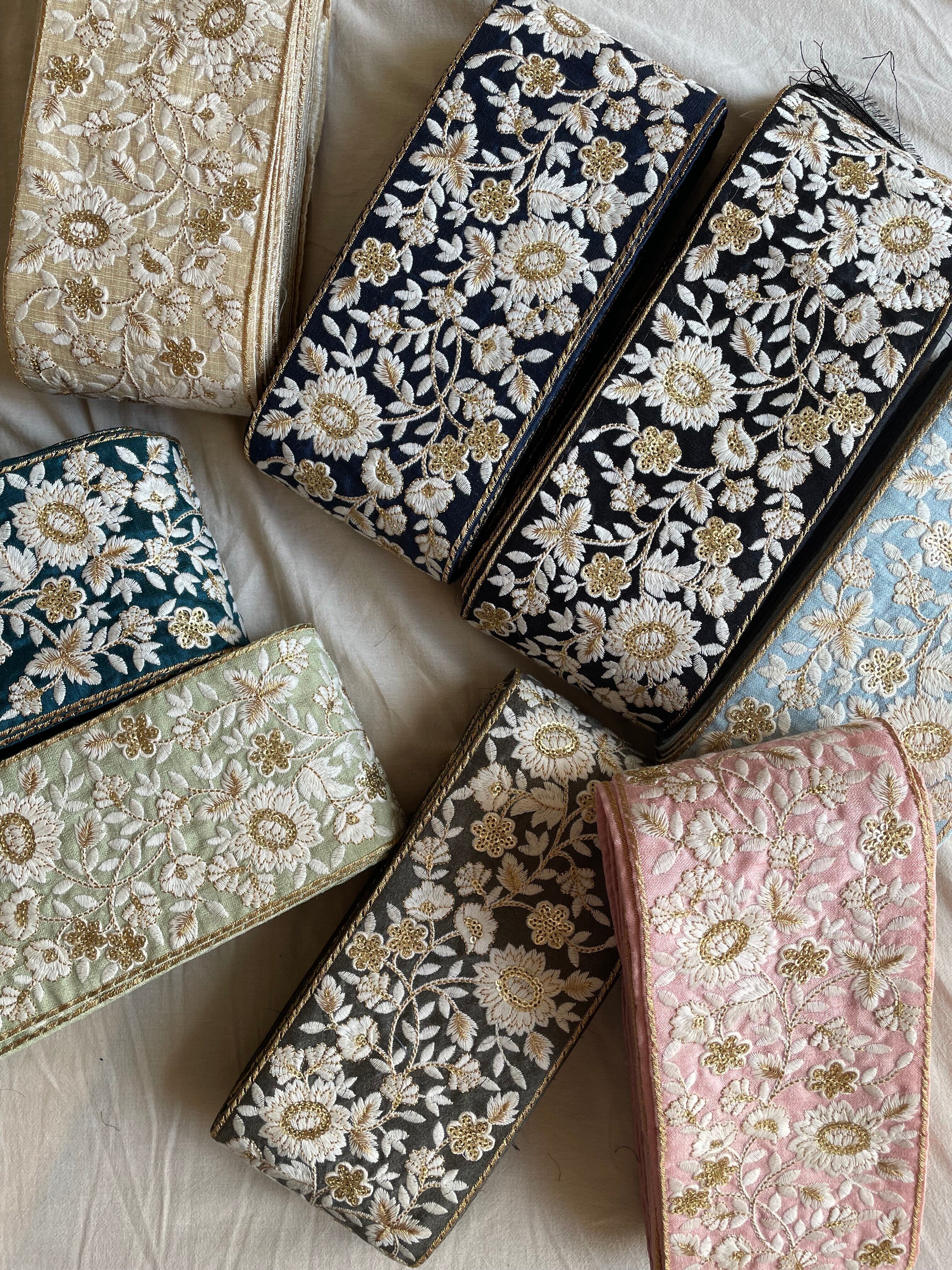 ◆70cmカット済◆インド花柄刺繍リボン・オリーブ