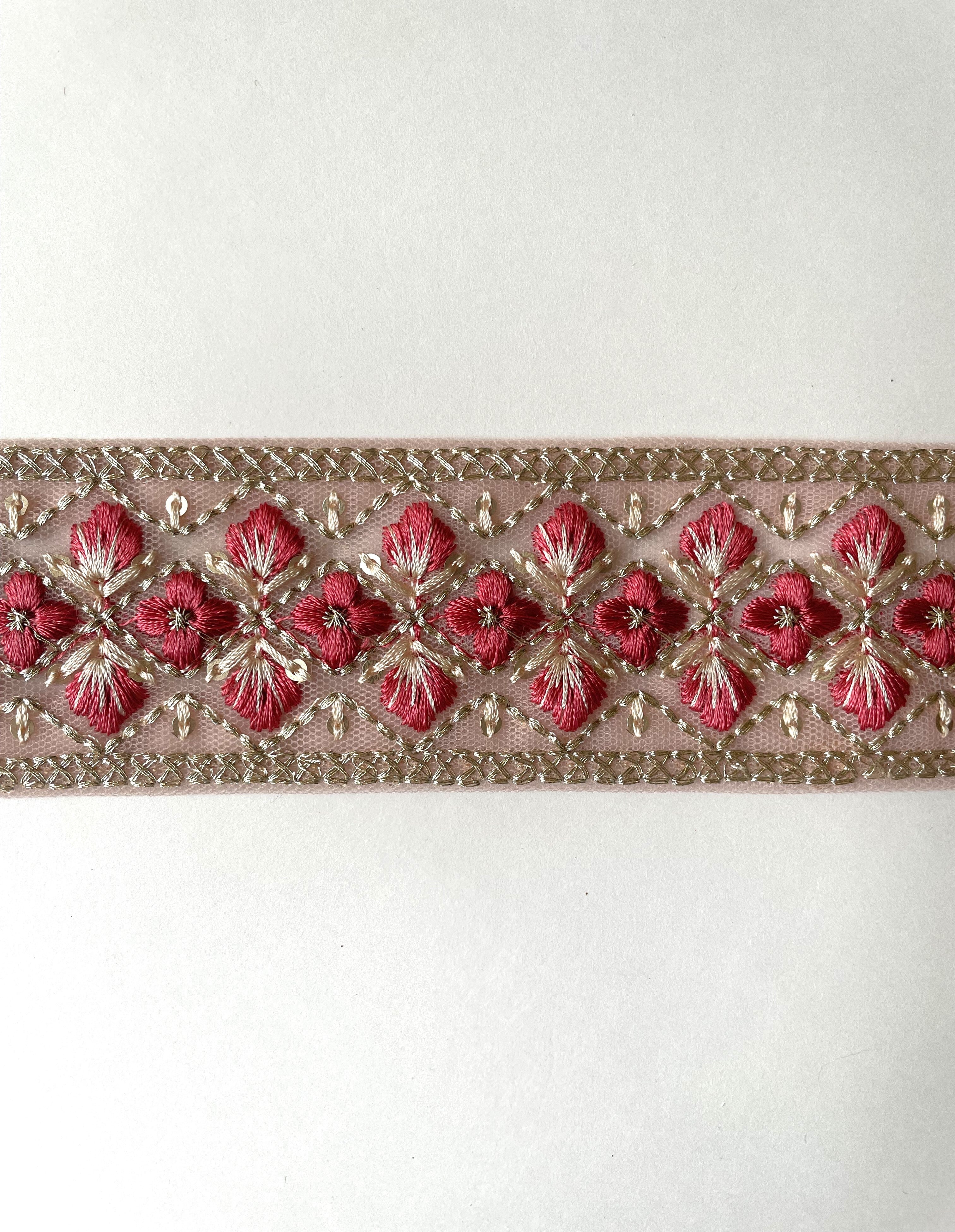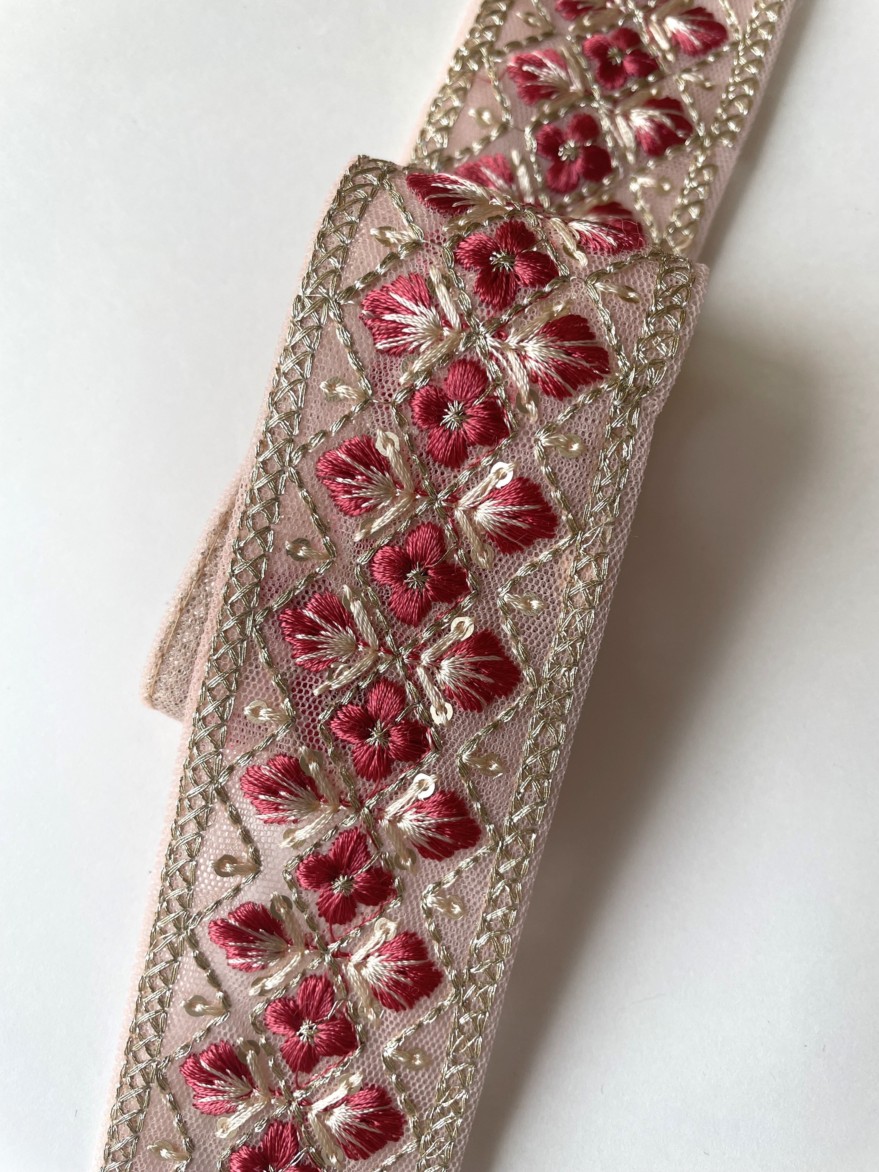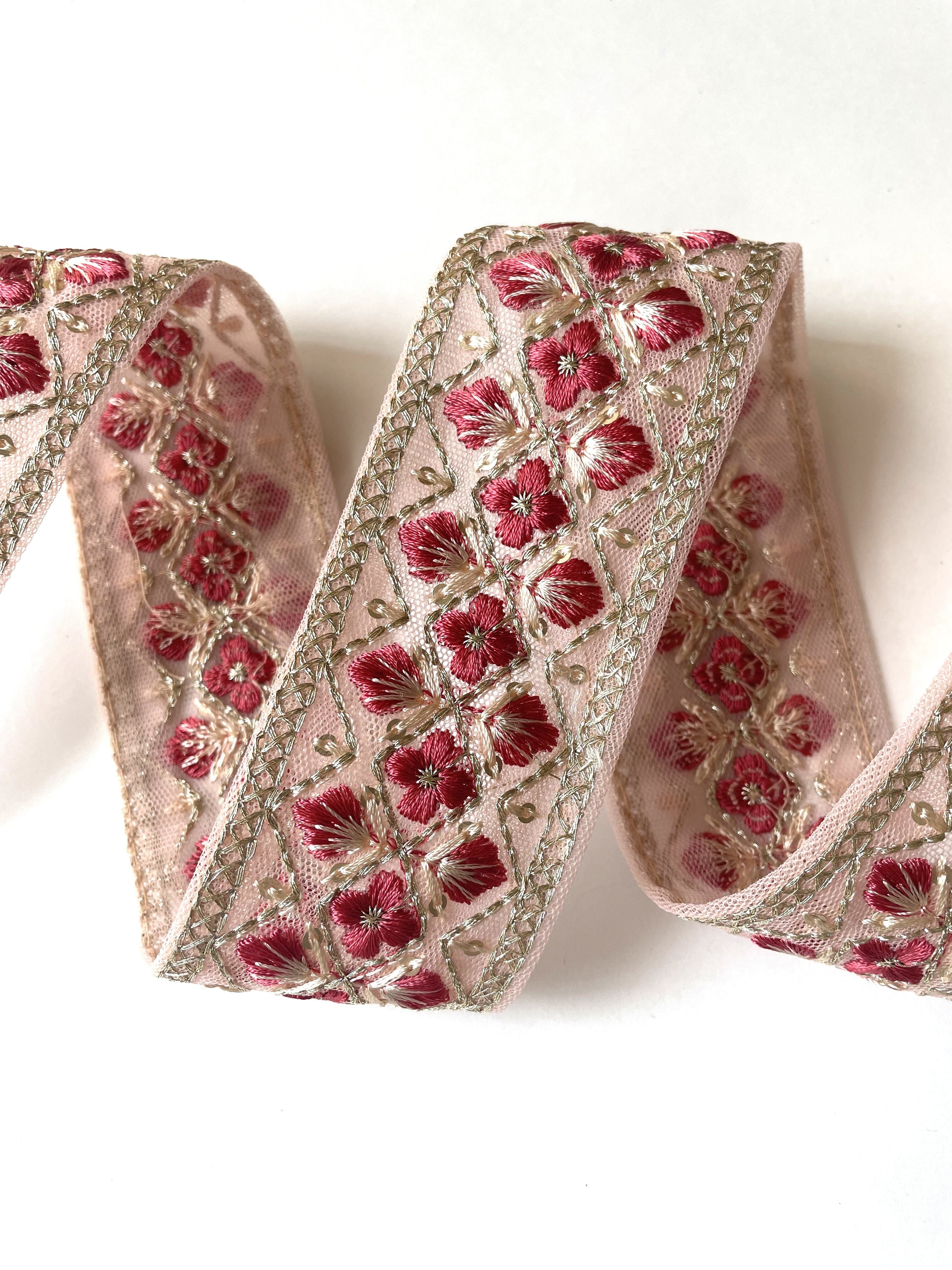◆1mカット済◆インド花柄刺繍リボン・ローズ