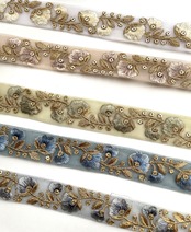 ◆1mカット済◆チュール花柄刺繍リボン・ベージュ
