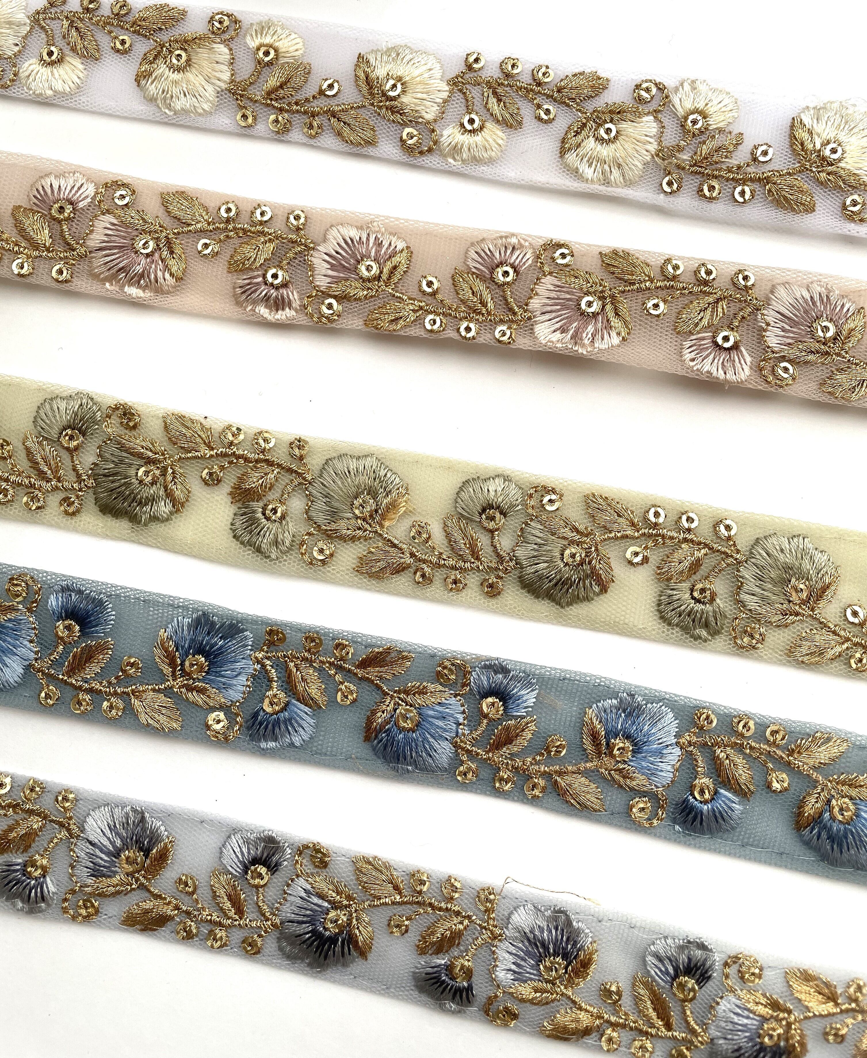 ◆1mカット済◆チュール花柄刺繍リボン・ホワイト