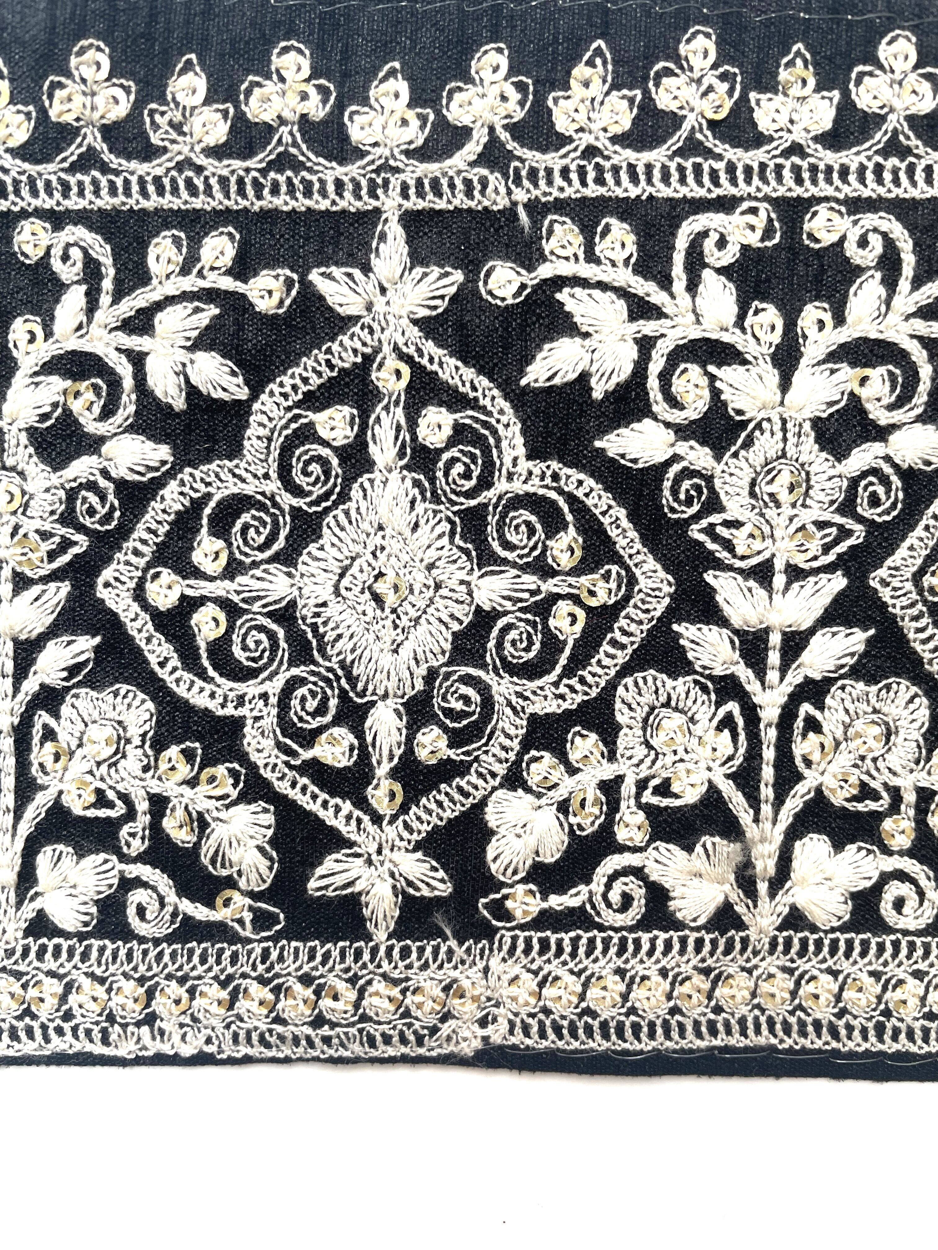 ◆70cmカット済◆インド花柄刺繍リボン・オリーブ