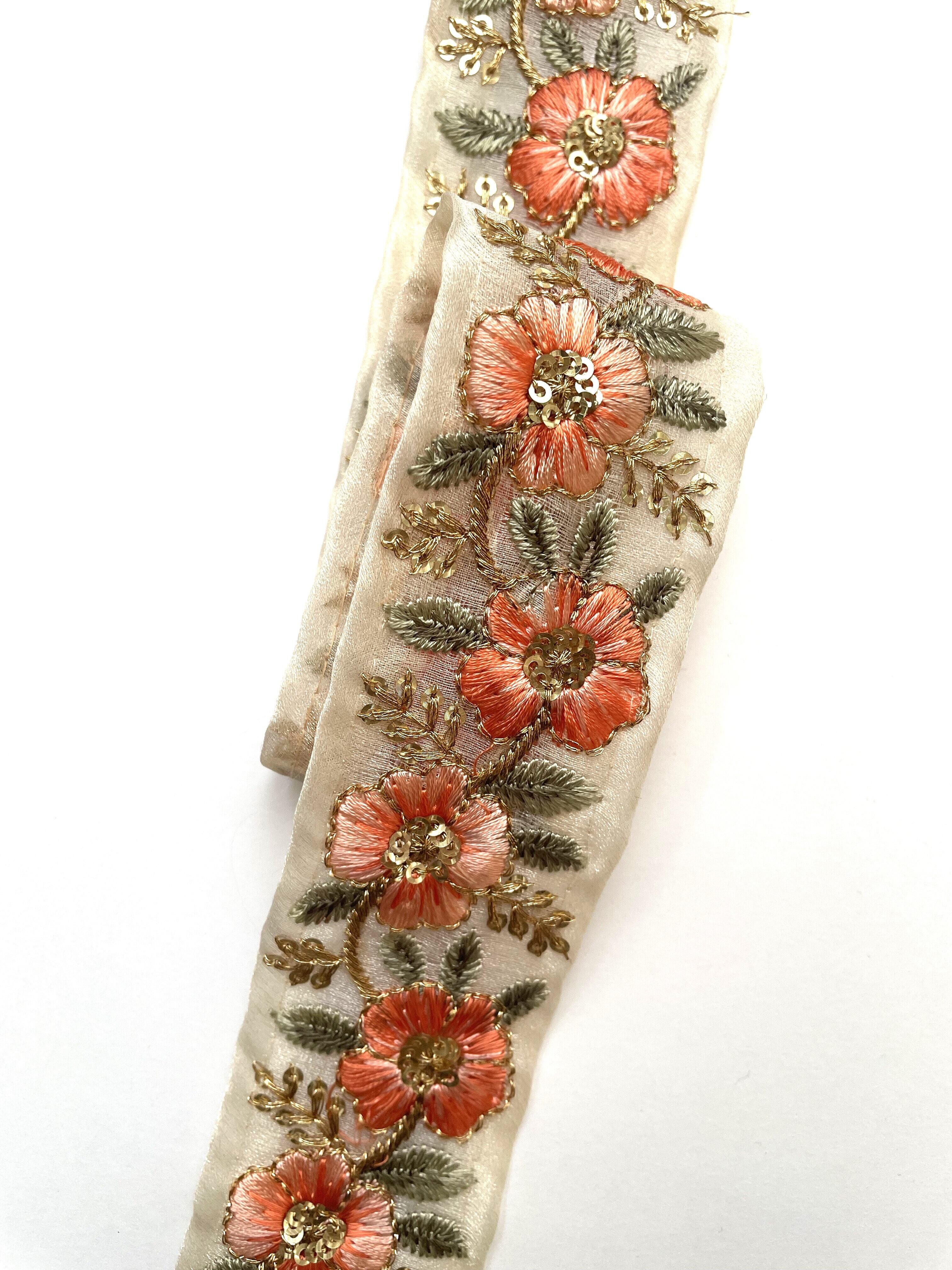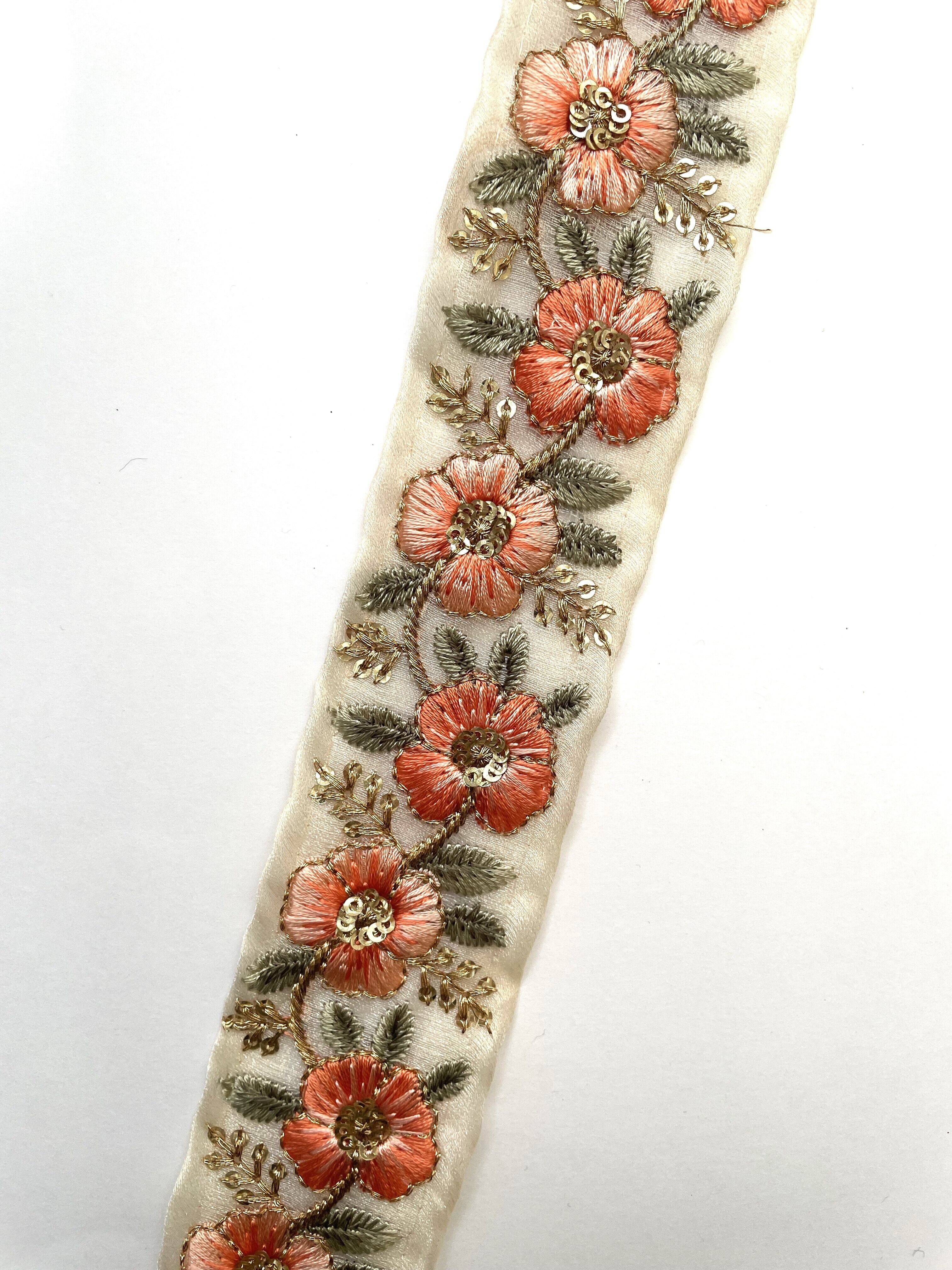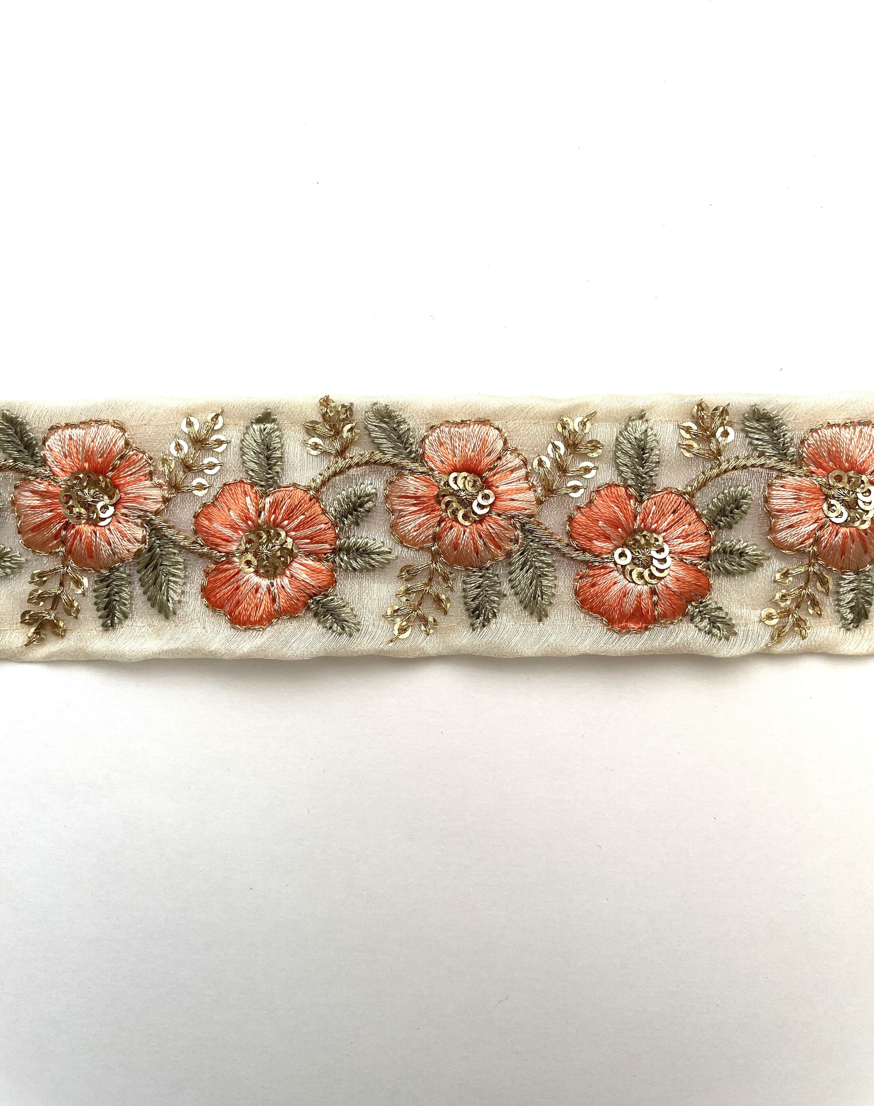 ◆1mカット済◆インド花柄刺繍リボン・ホワイト