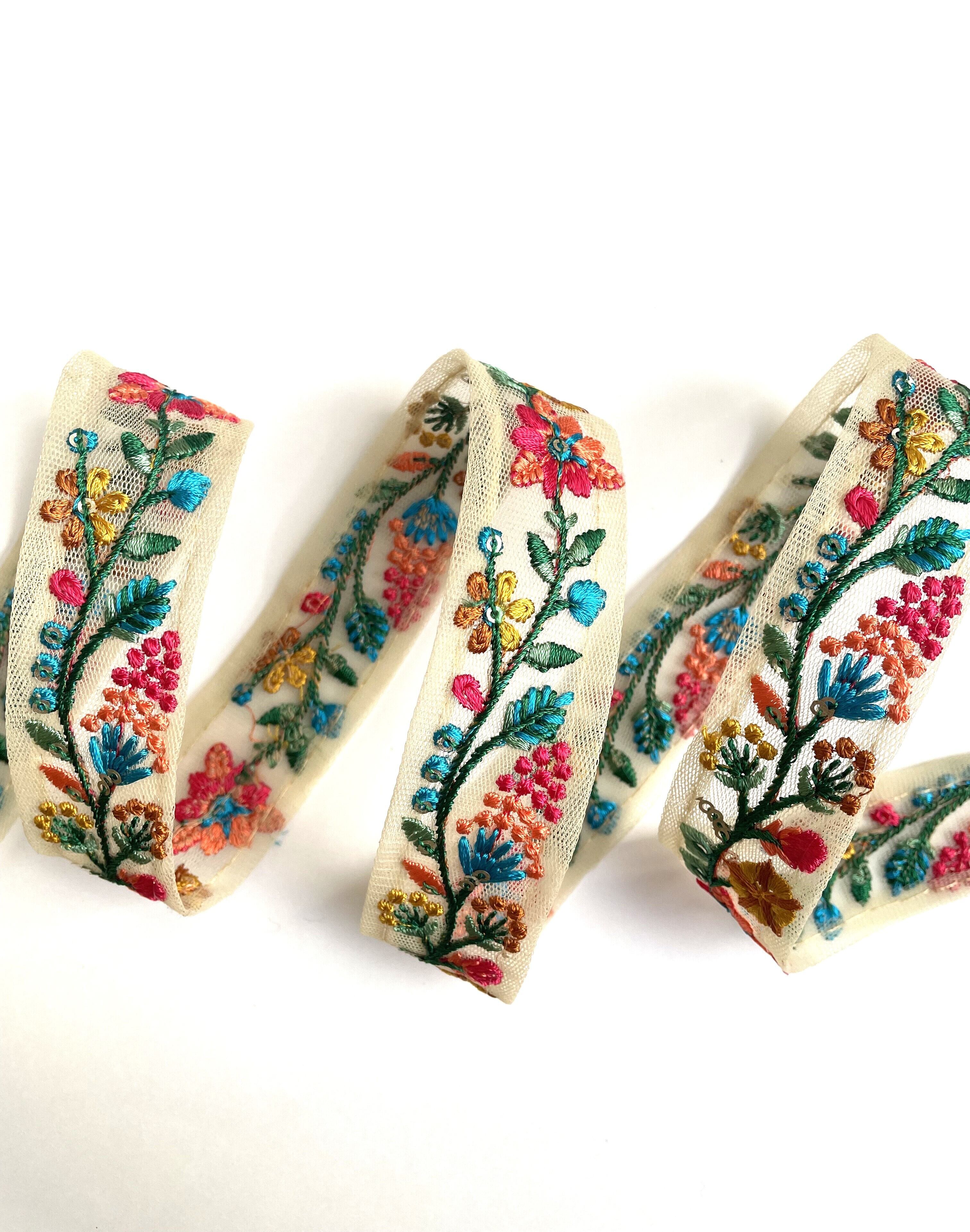 ◆1mカット済◆チュール花柄刺繍リボン・B