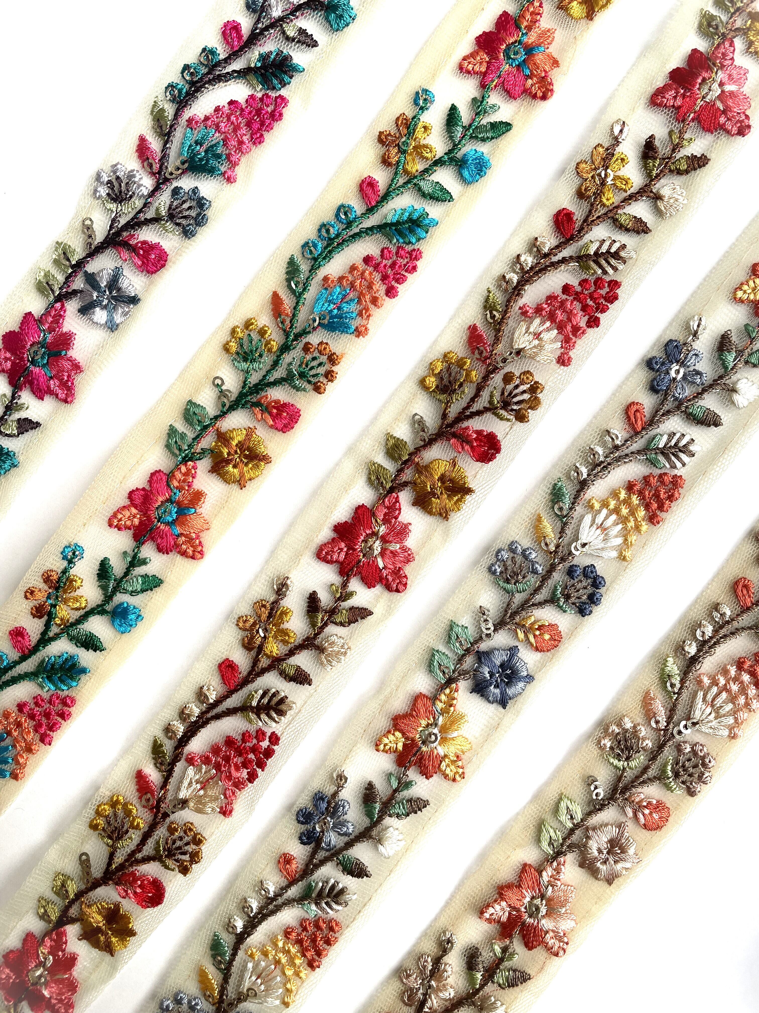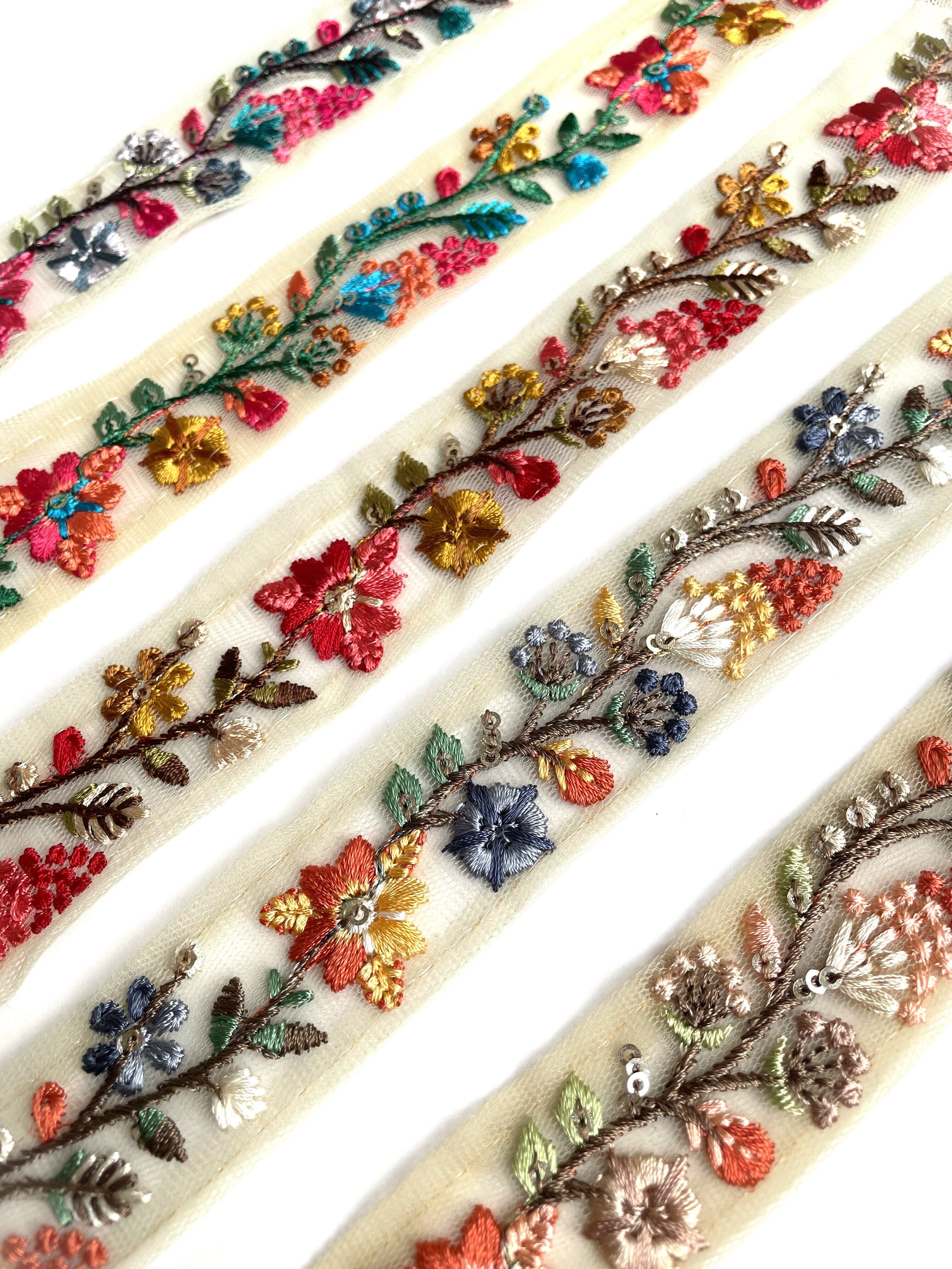 ◆60cmカット済◆チュール花柄刺繍リボン・E