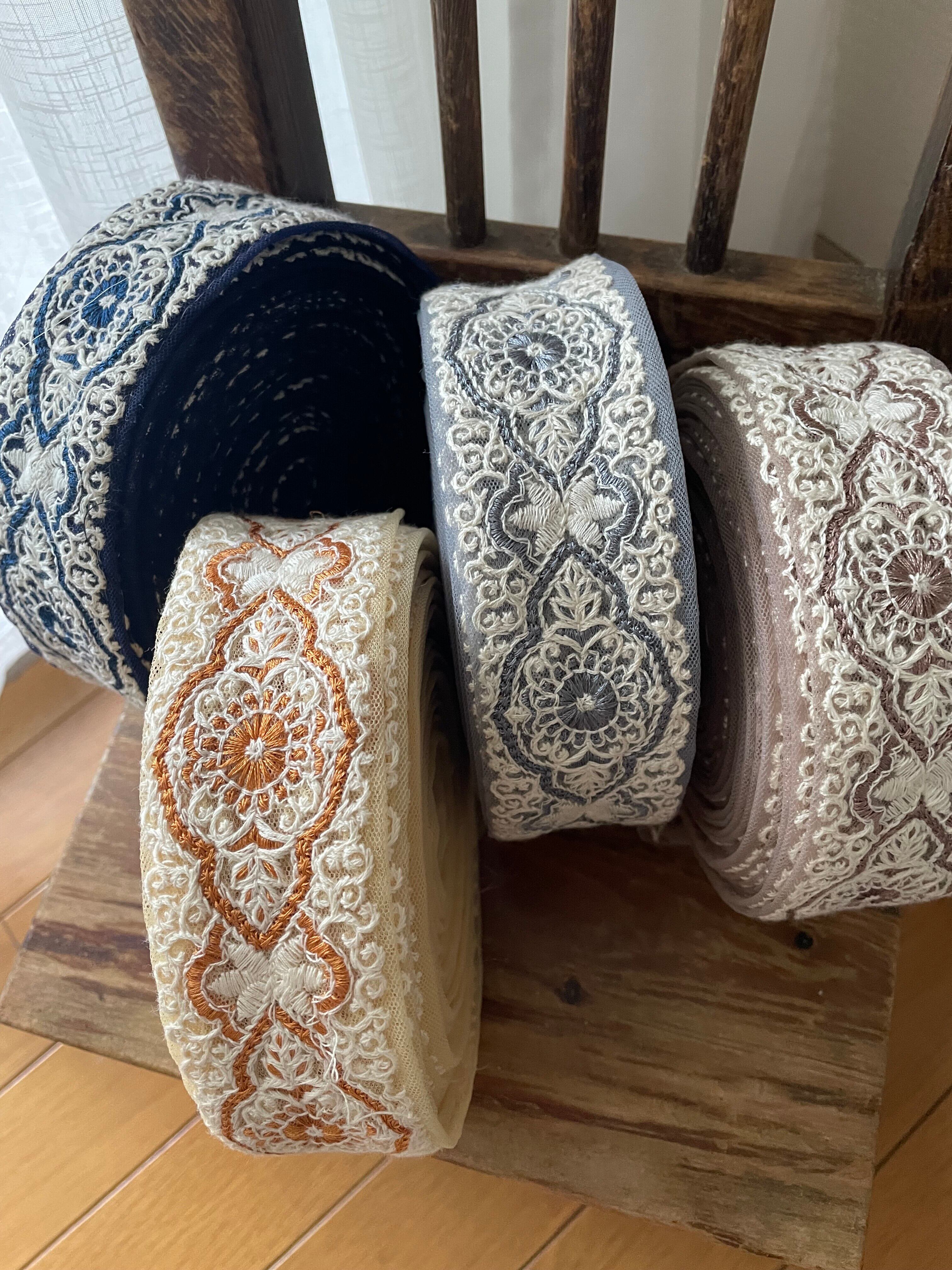 ◆60cmカット済◆チュール花柄刺繍リボン・ローズグレー
