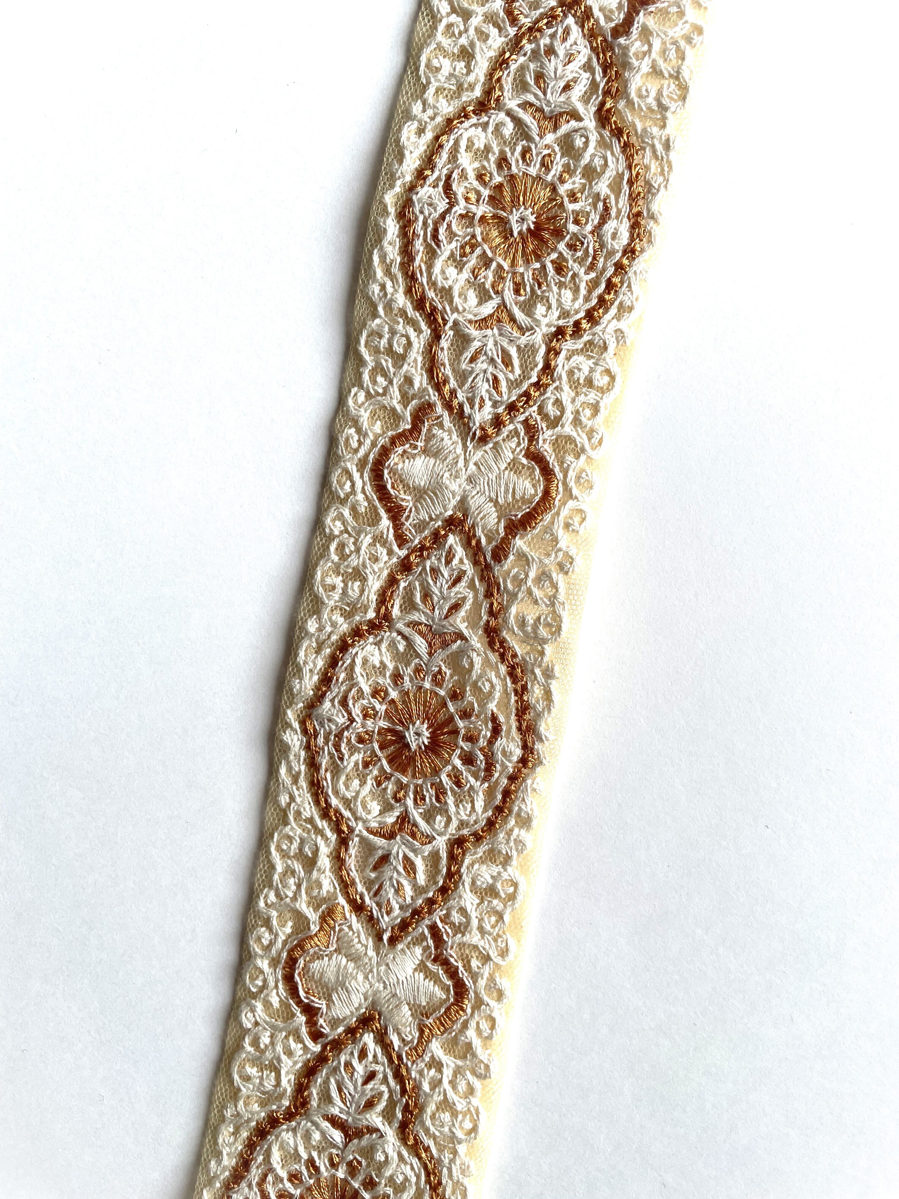 ◆65cmカット済◆チュール花柄刺繍リボン・ウィート
