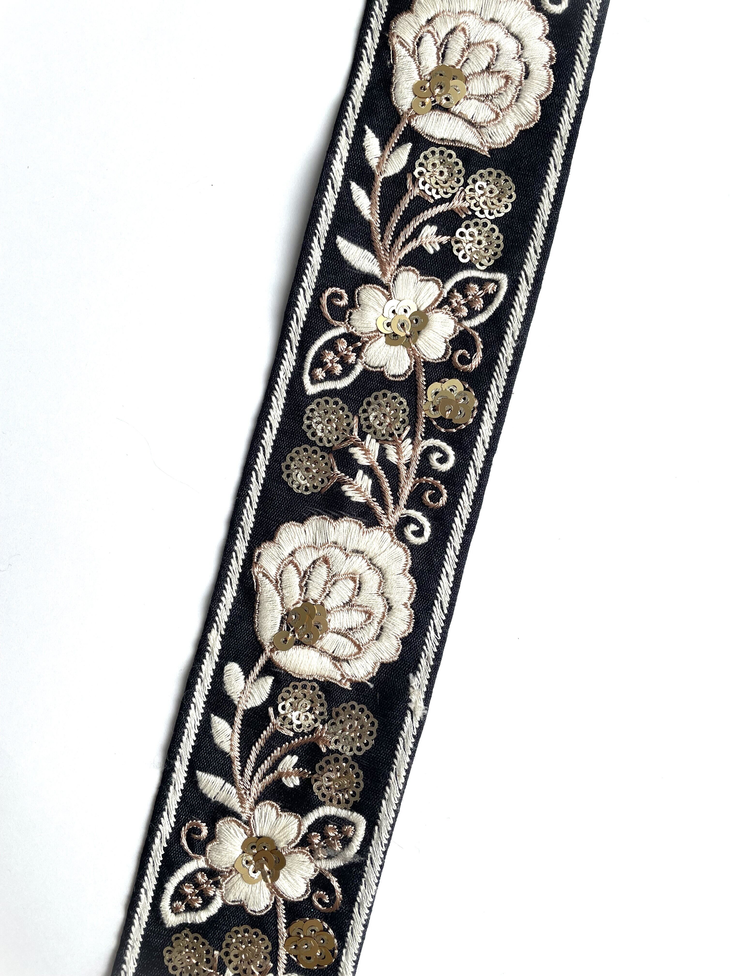 ◆1mカット済◆インド花柄刺繍リボン