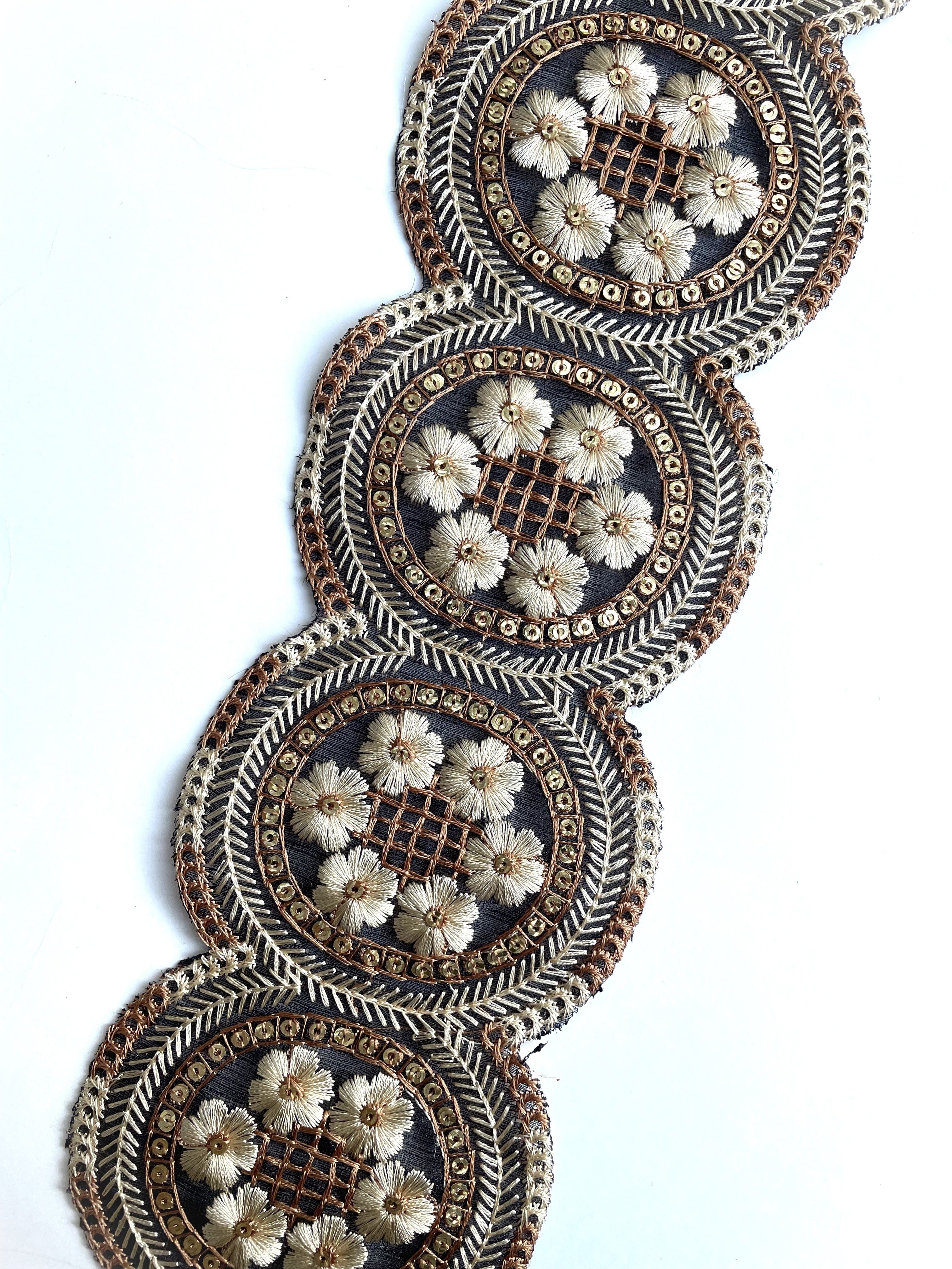 ◆1mカット済◆チュールラウンド花柄刺繍リボン・ブラック