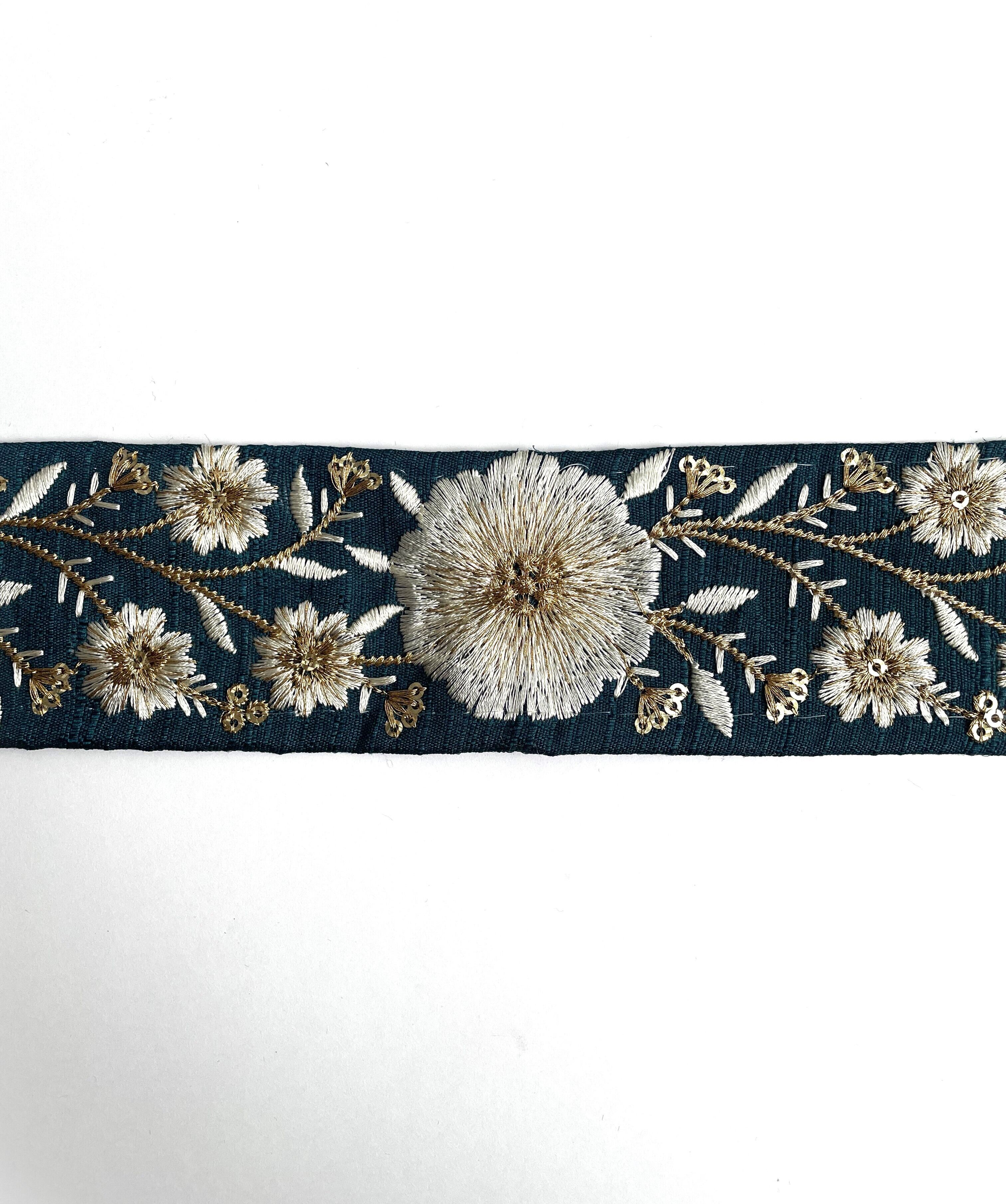 ◆1mカット済◆インド花柄刺繍リボン・グリーン