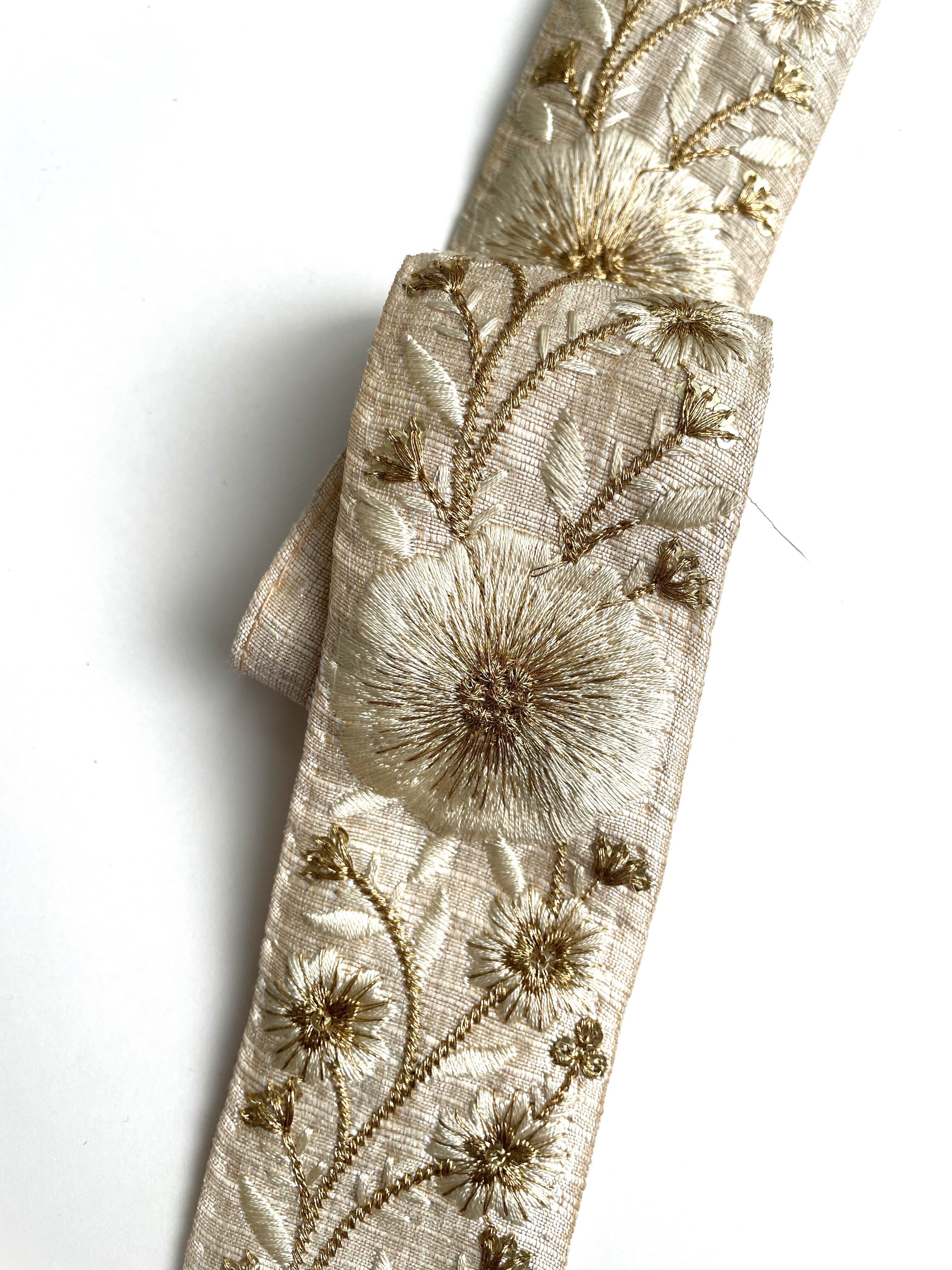 ◆1mカット済◆インド花柄刺繍リボン・ベージュ