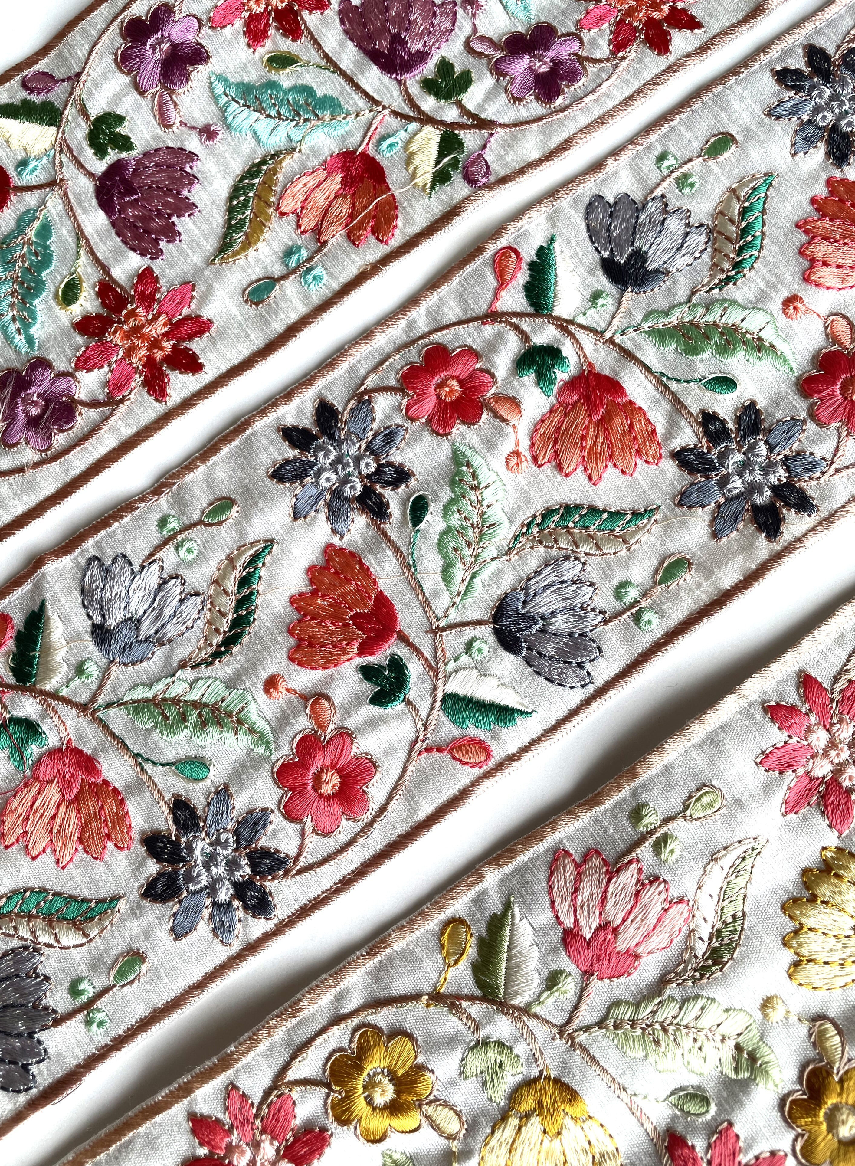 ◆70cmカット済◆インド花柄刺繍リボン・F