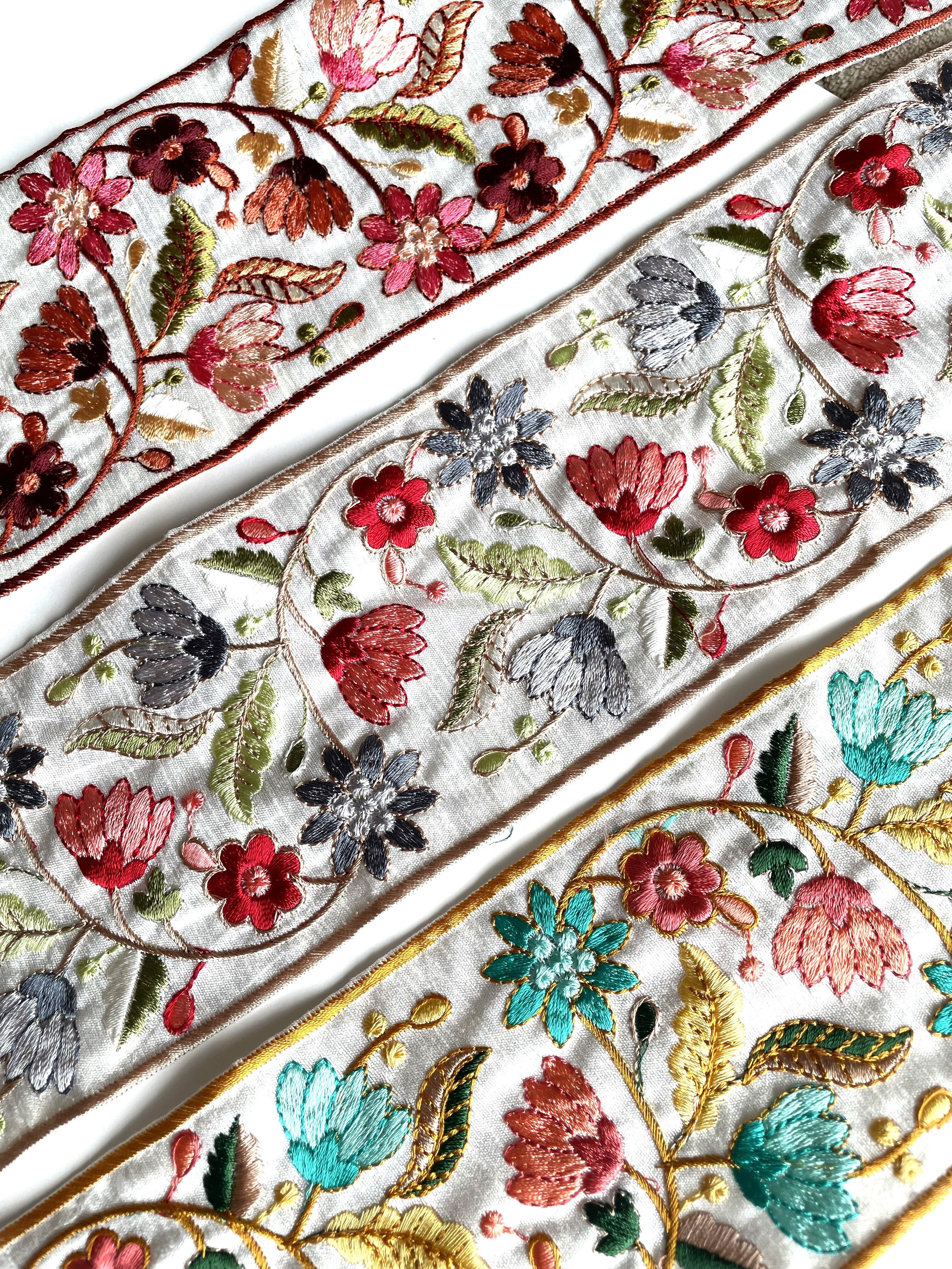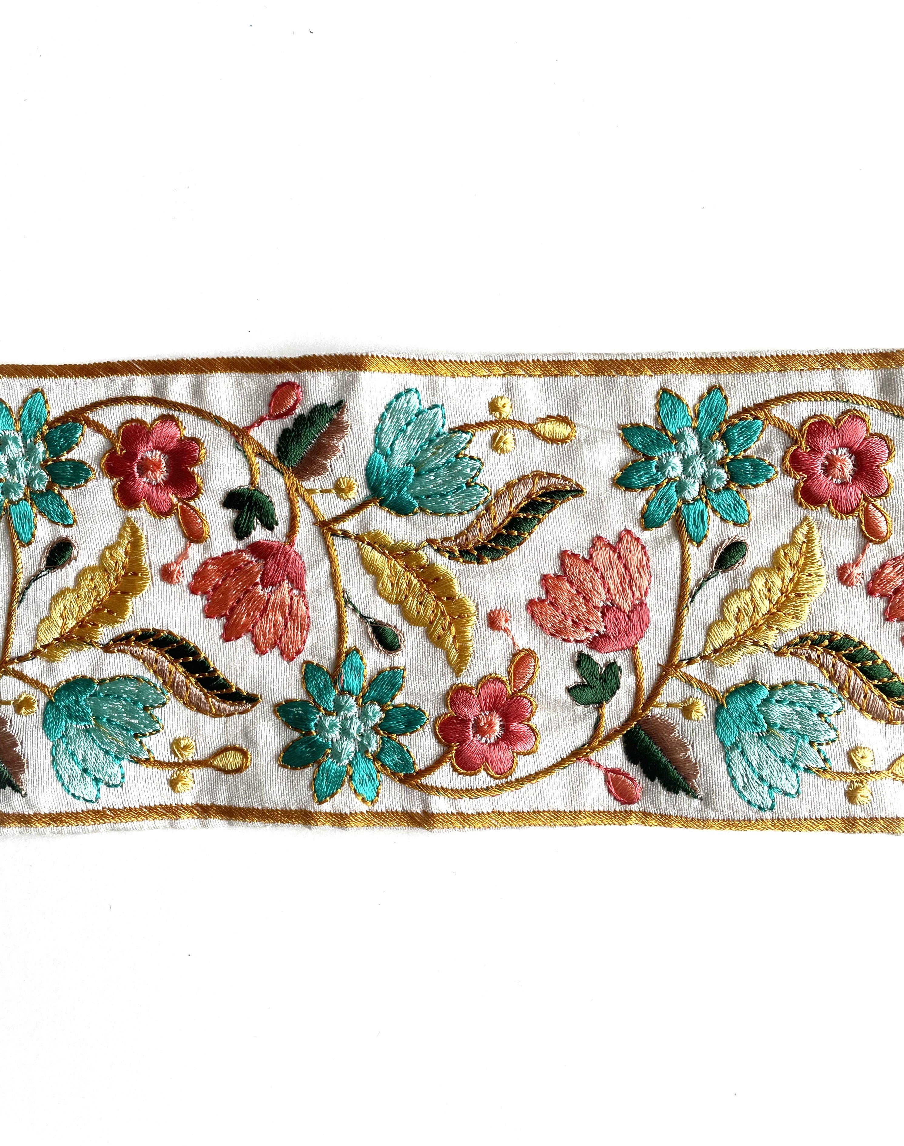 ◆1mカット済◆インド花柄刺繍リボン・D