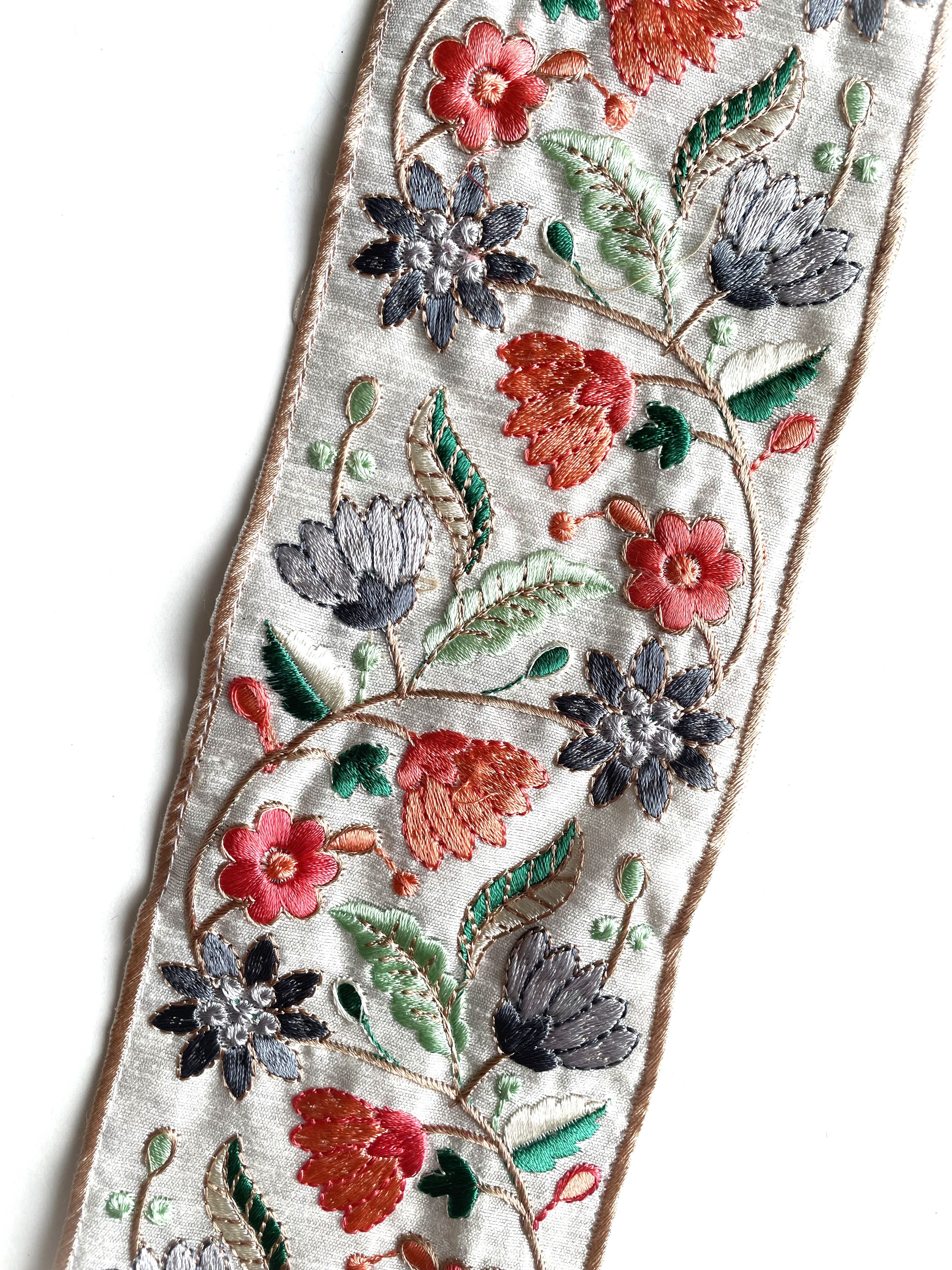 ◆1mカット済◆インド花柄刺繍リボン・B