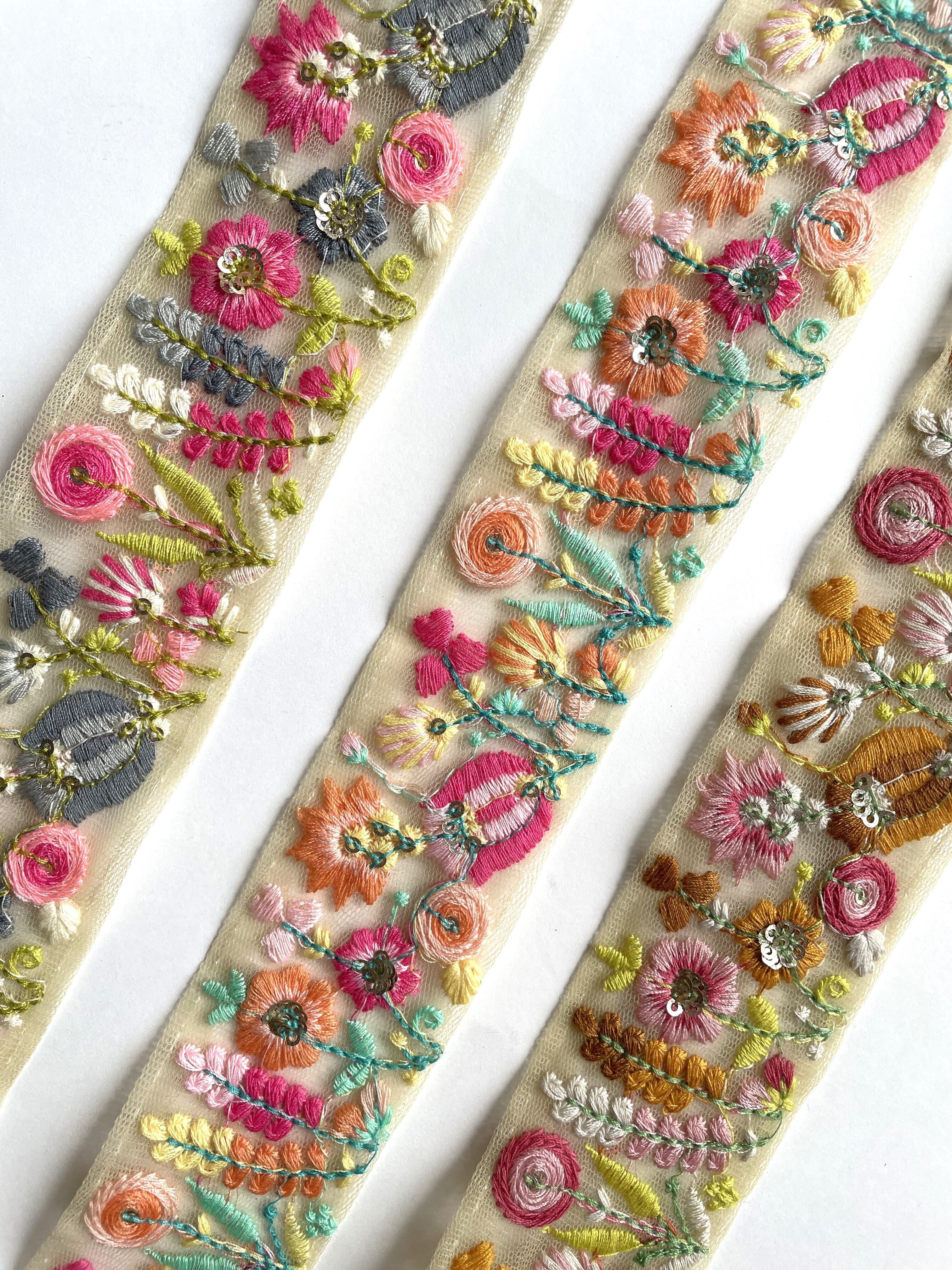 ◆70cmカット済◆チュール花柄刺繍リボン・B