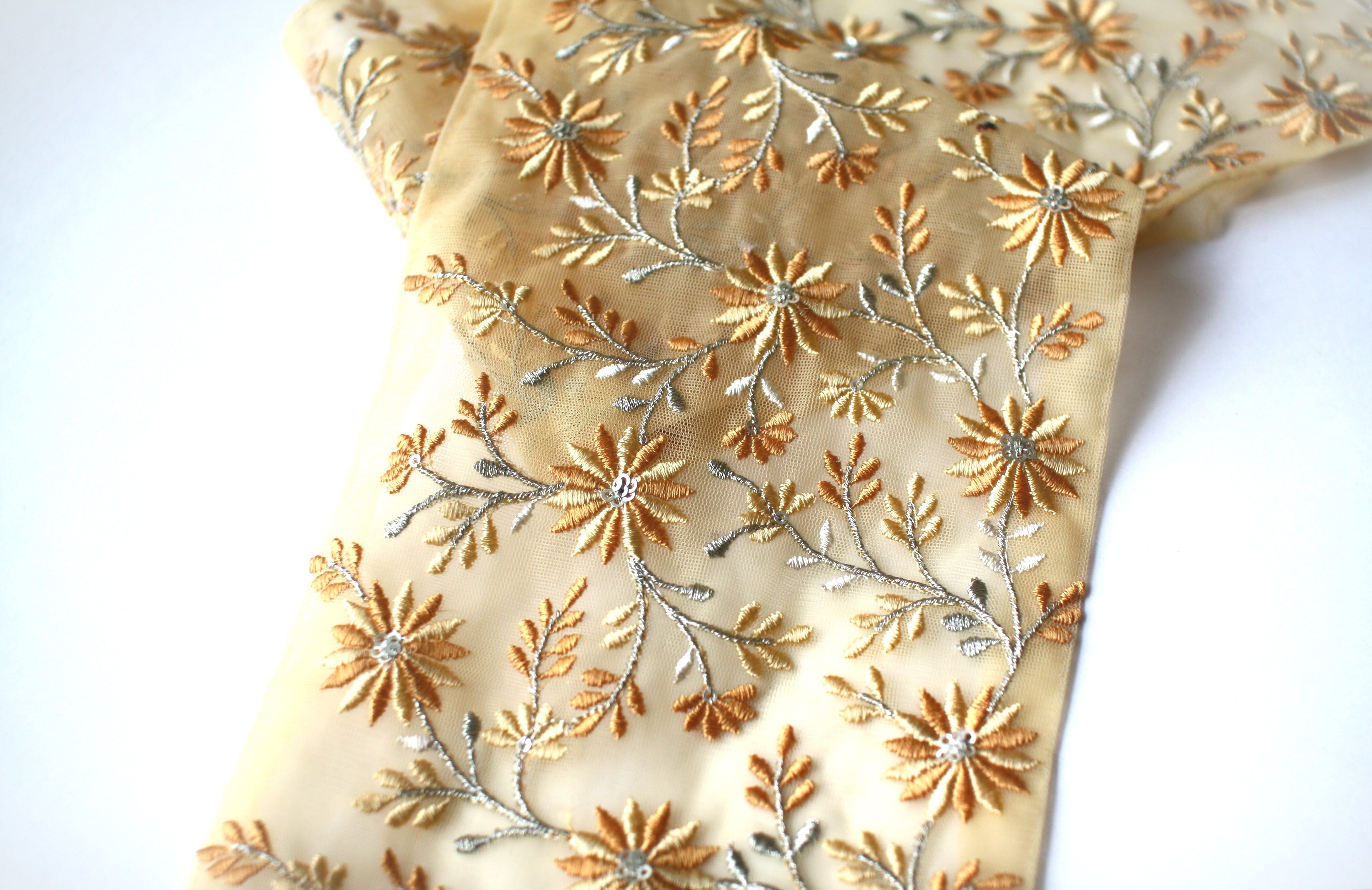 ◆70cmカット済◆チュール花柄刺繍リボン・イエロー