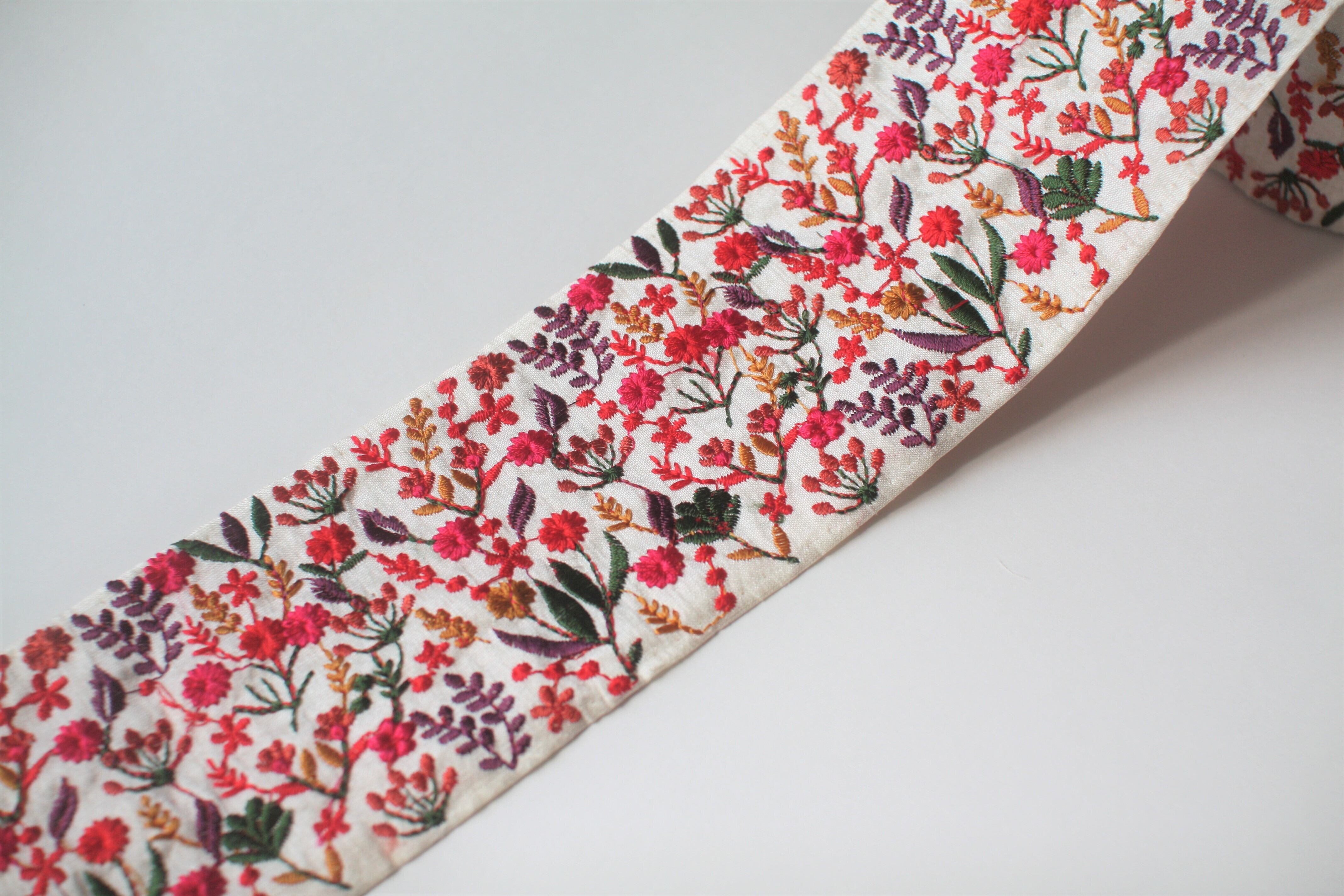 ◆55cmカット済◆インド花柄刺繍リボン・ピンク