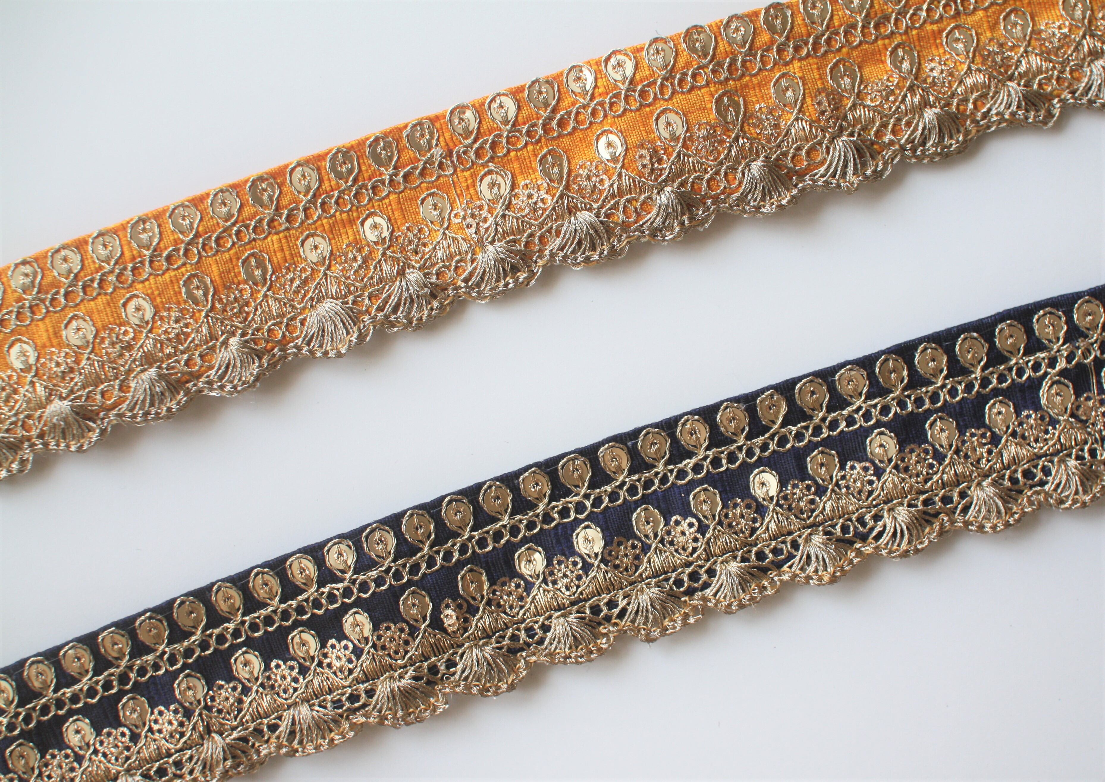 ◆1mカット済◆インド刺繡リボン・オレンジ