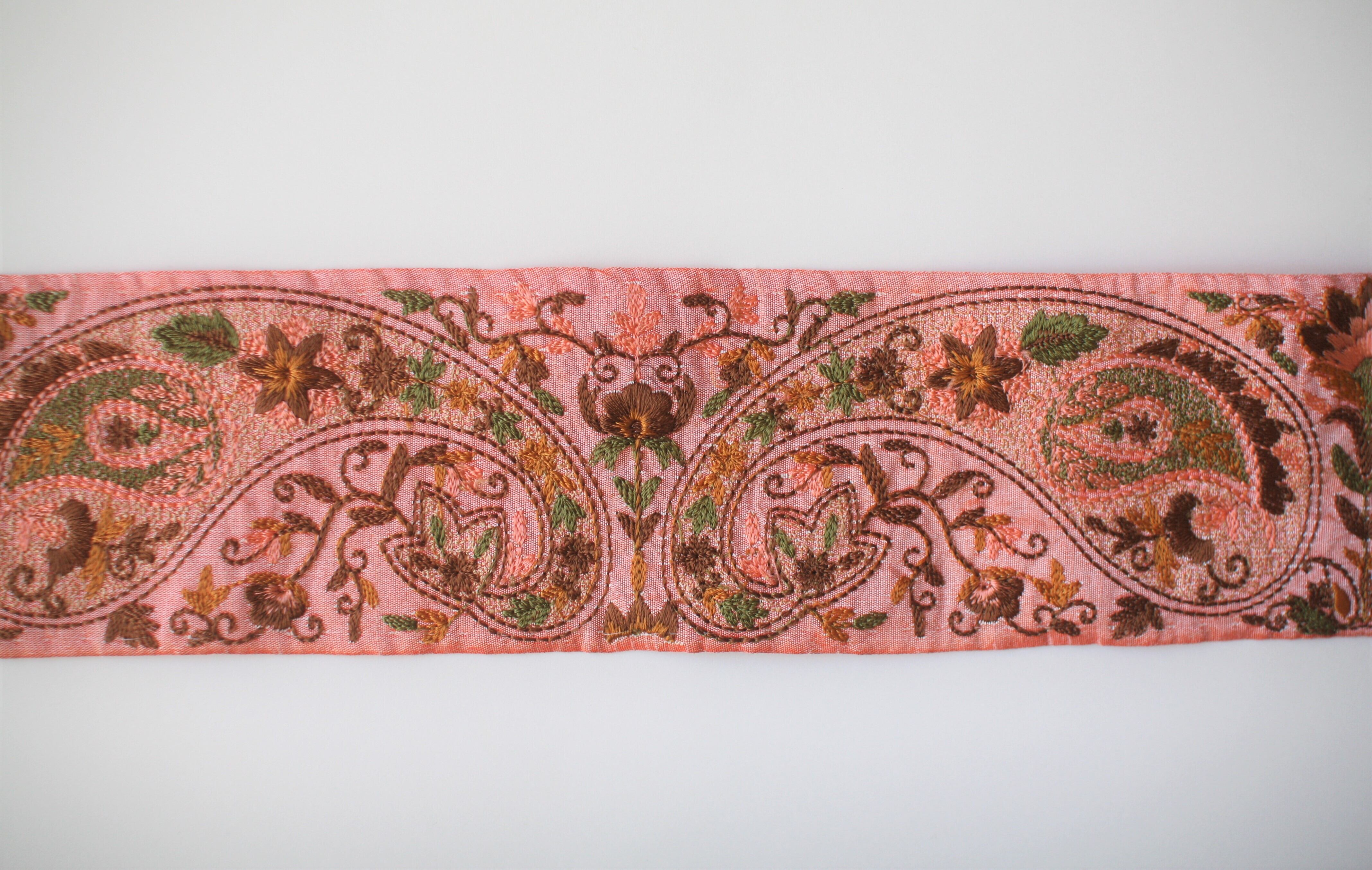 ◆1mカット済◆インド花柄刺繍リボン・ピンク