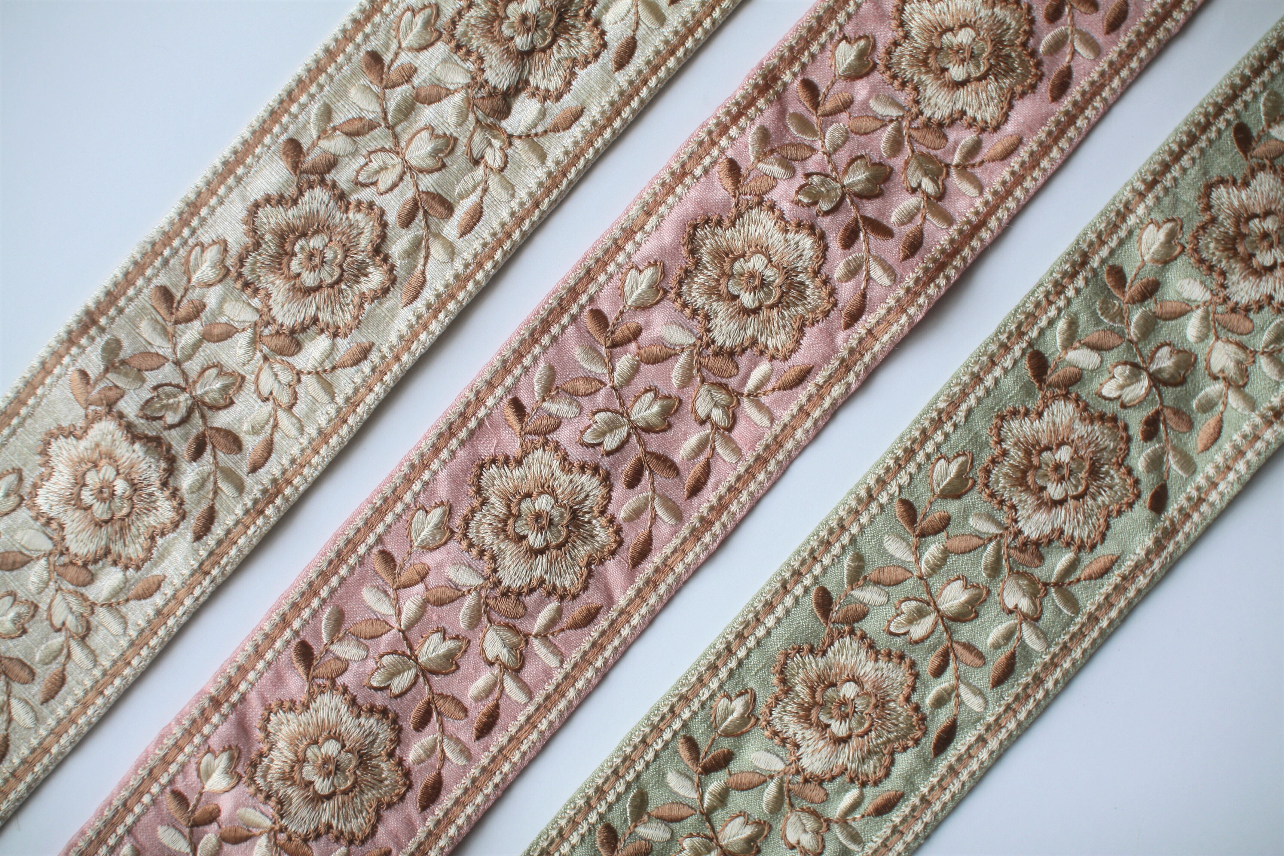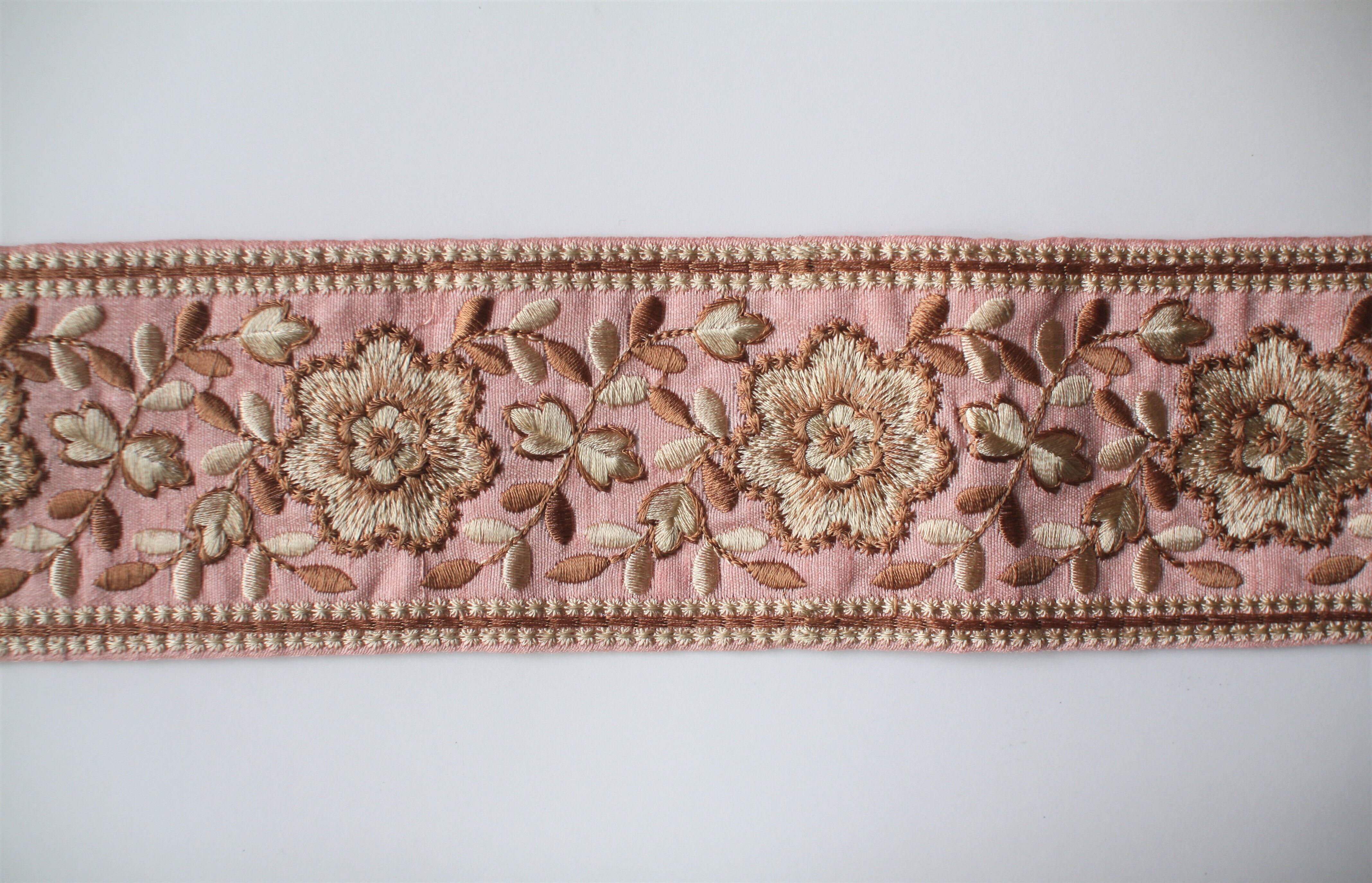 ◆90cmカット済◆インド花柄刺繍リボン・ピンク