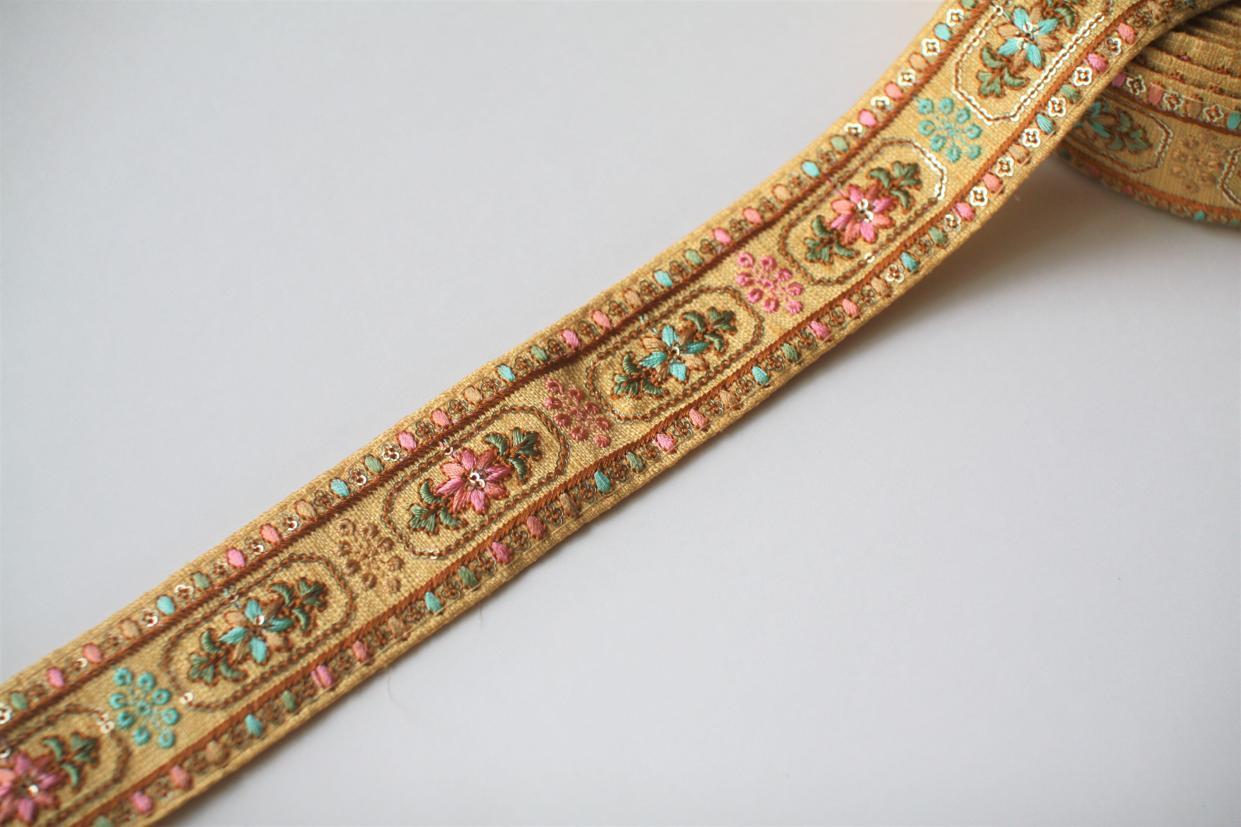 ◆50cmカット済◆インド花柄刺繍リボン・イエロー