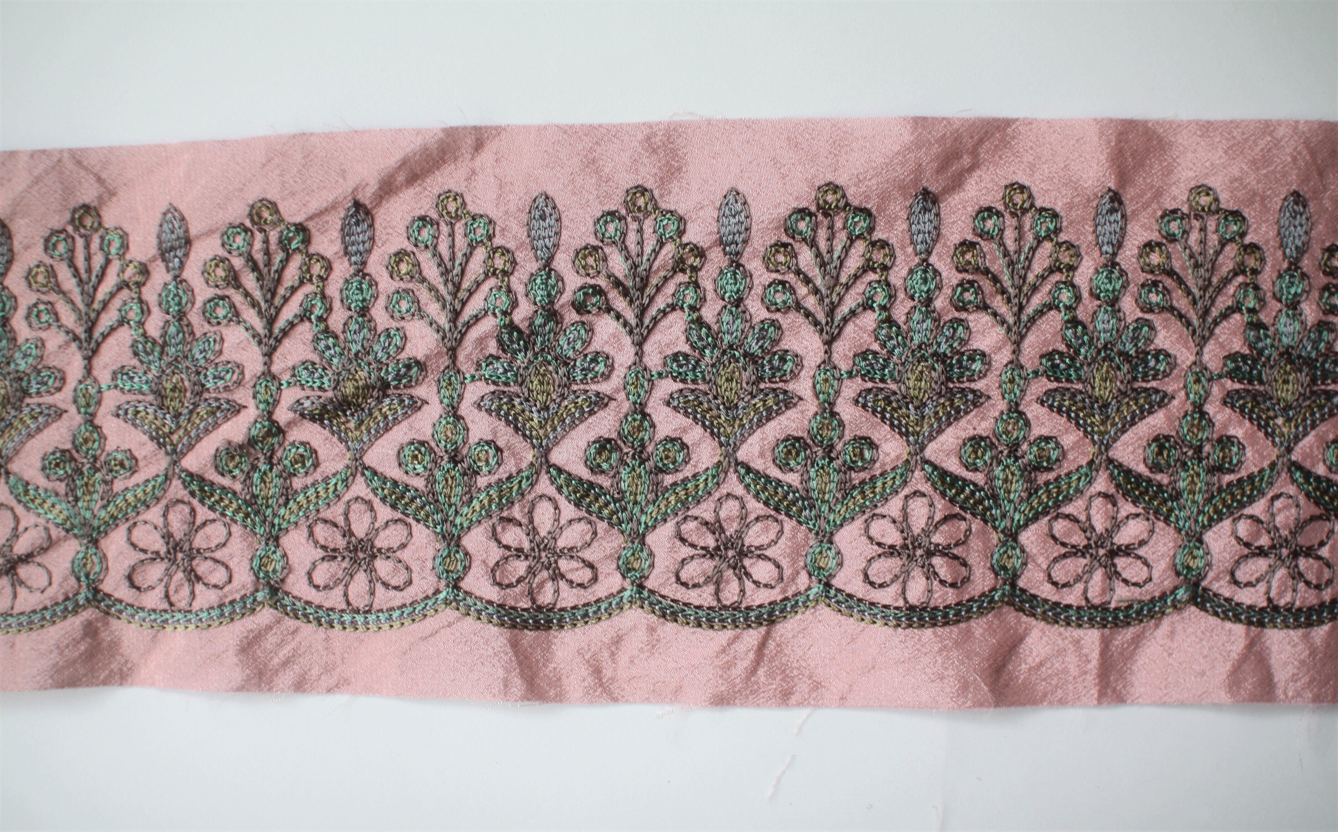 ◆95cmカット済◆インド花柄刺繍リボン・ピンク