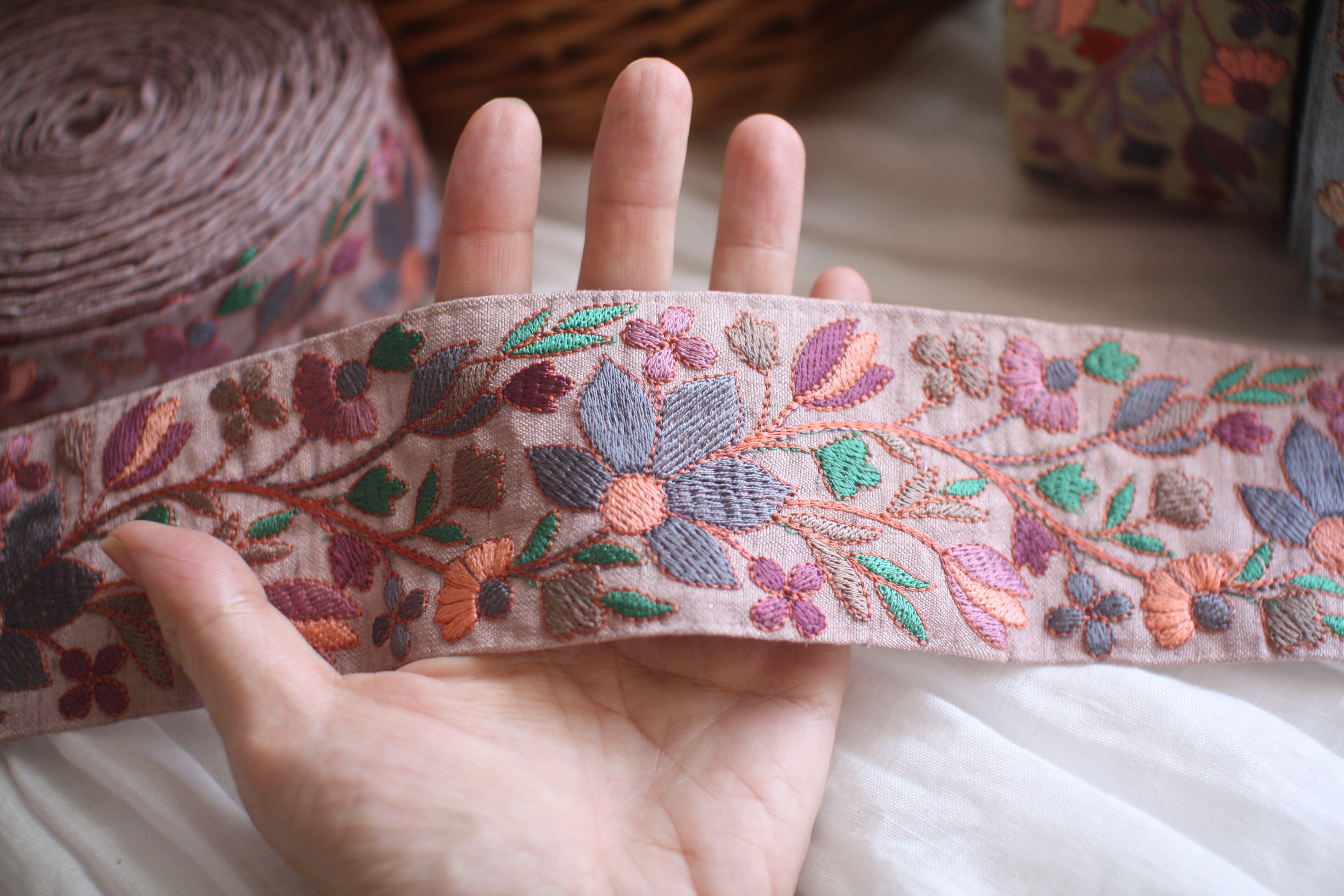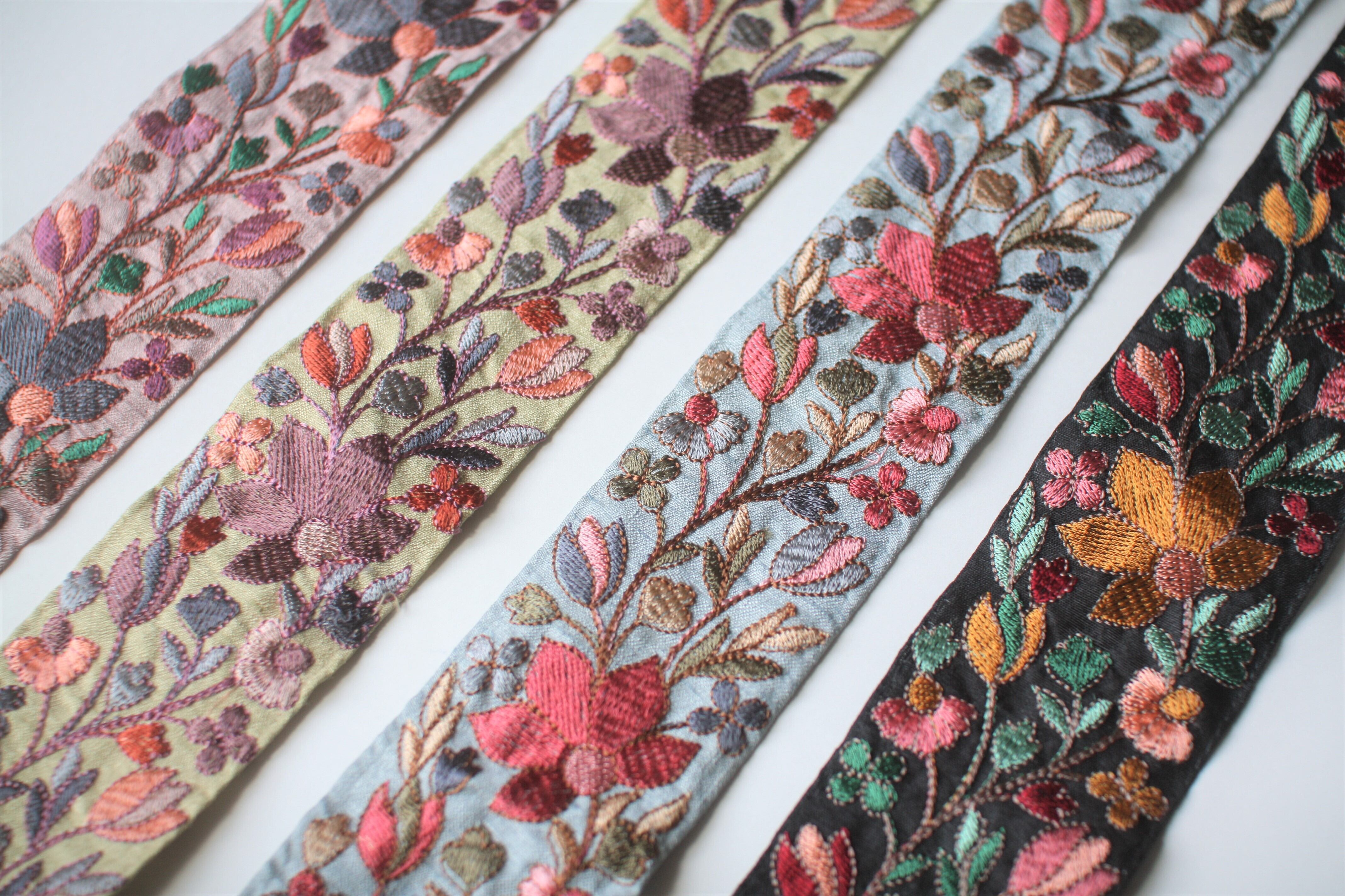 ◆1mカット済◆インド花柄刺繍リボン・ブラック
