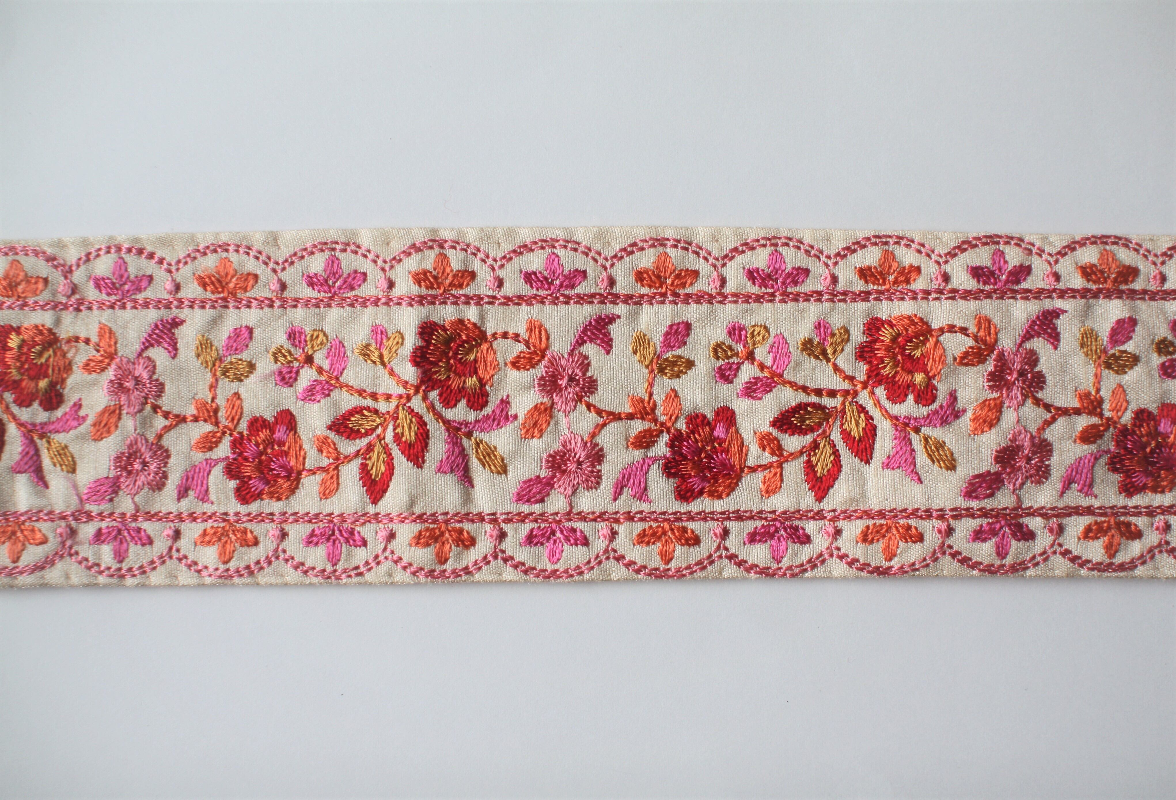 ◆70cmカット済◆インド花柄刺繍リボン・ベージュ