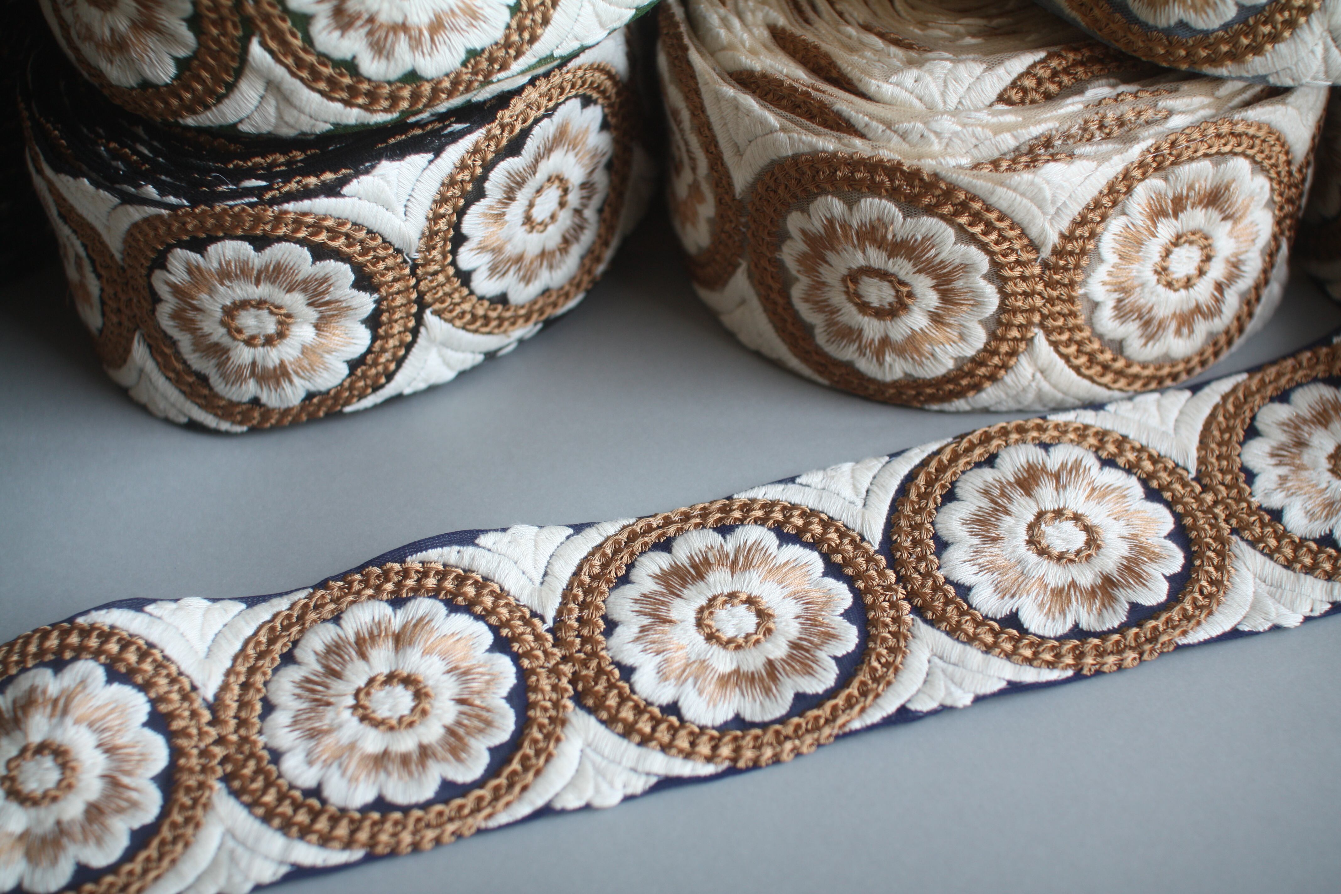 ◆75cmカット済◆チュール花柄刺繍リボン・ブルー