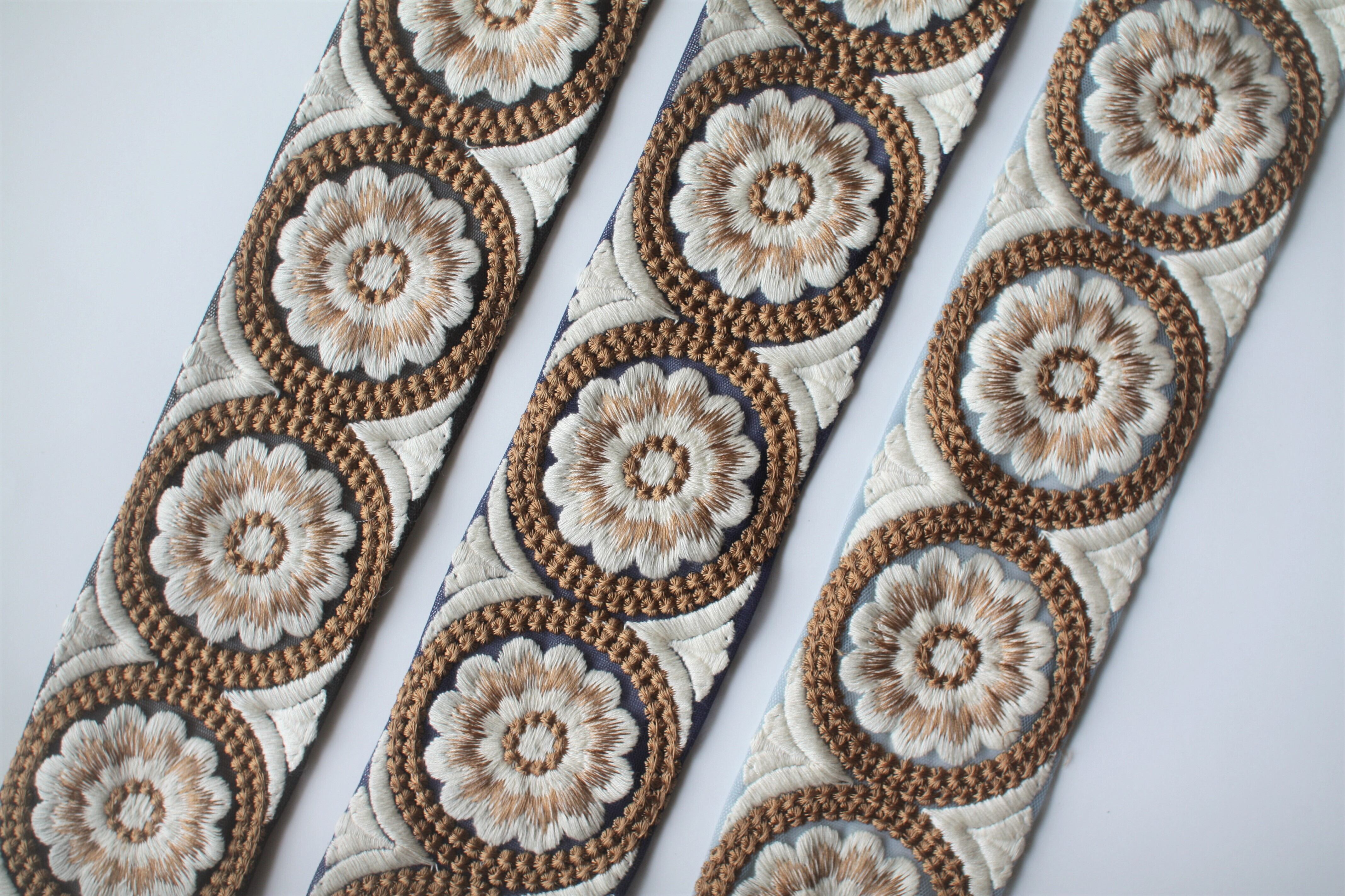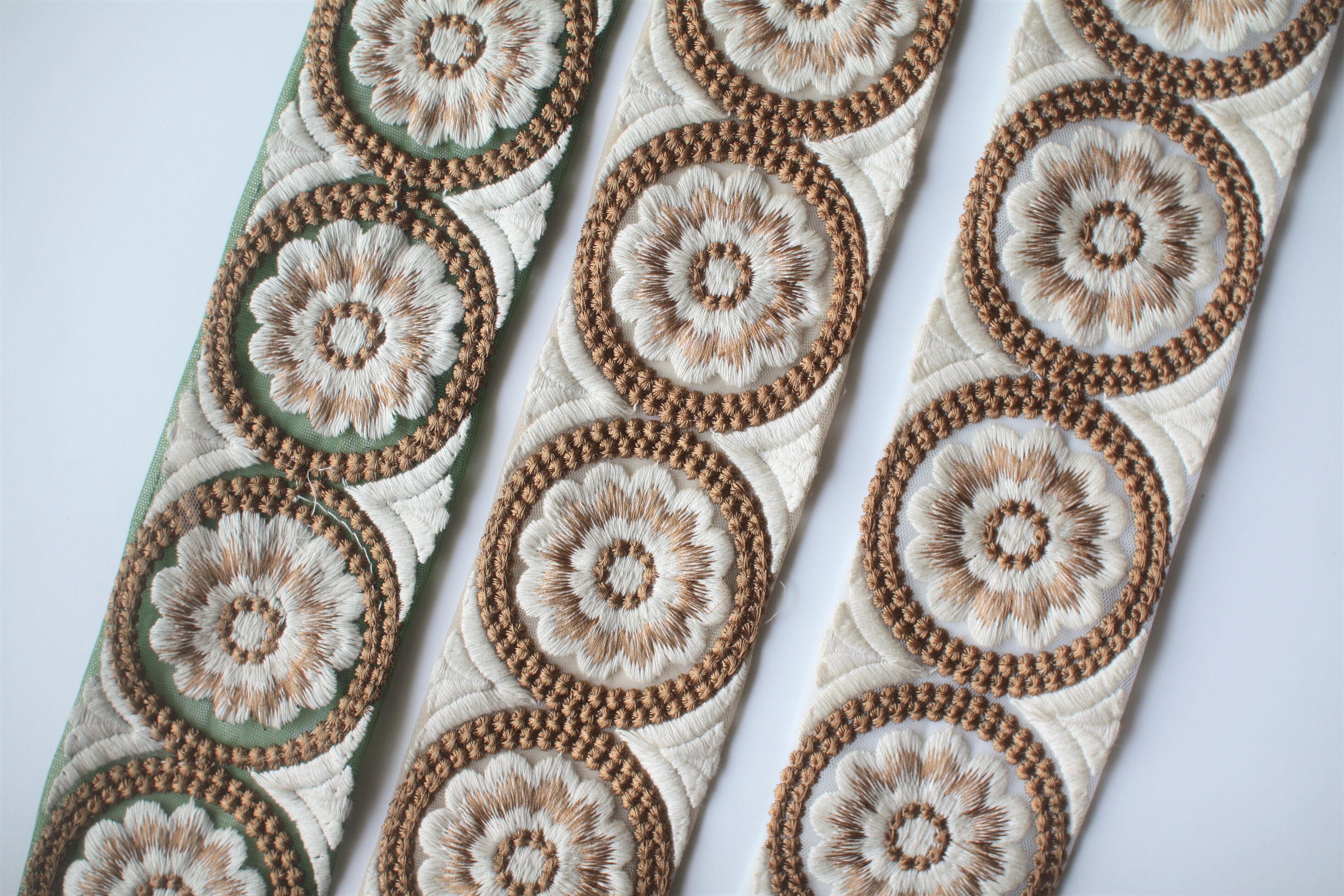 ◆1mカット済◆チュール花柄刺繍リボン・グリーン