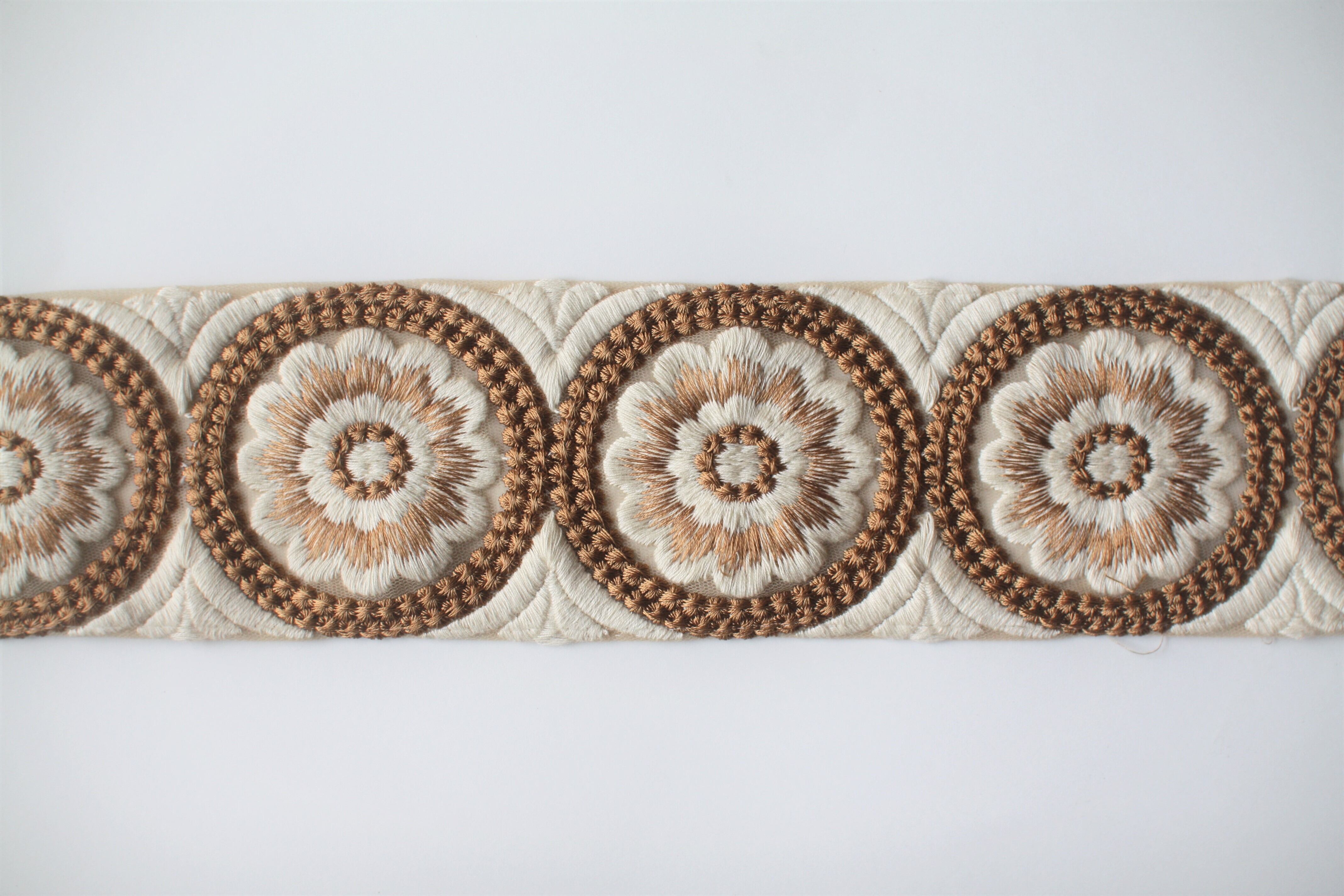 ◆80cmカット済◆チュール花柄刺繍リボン・ベージュ