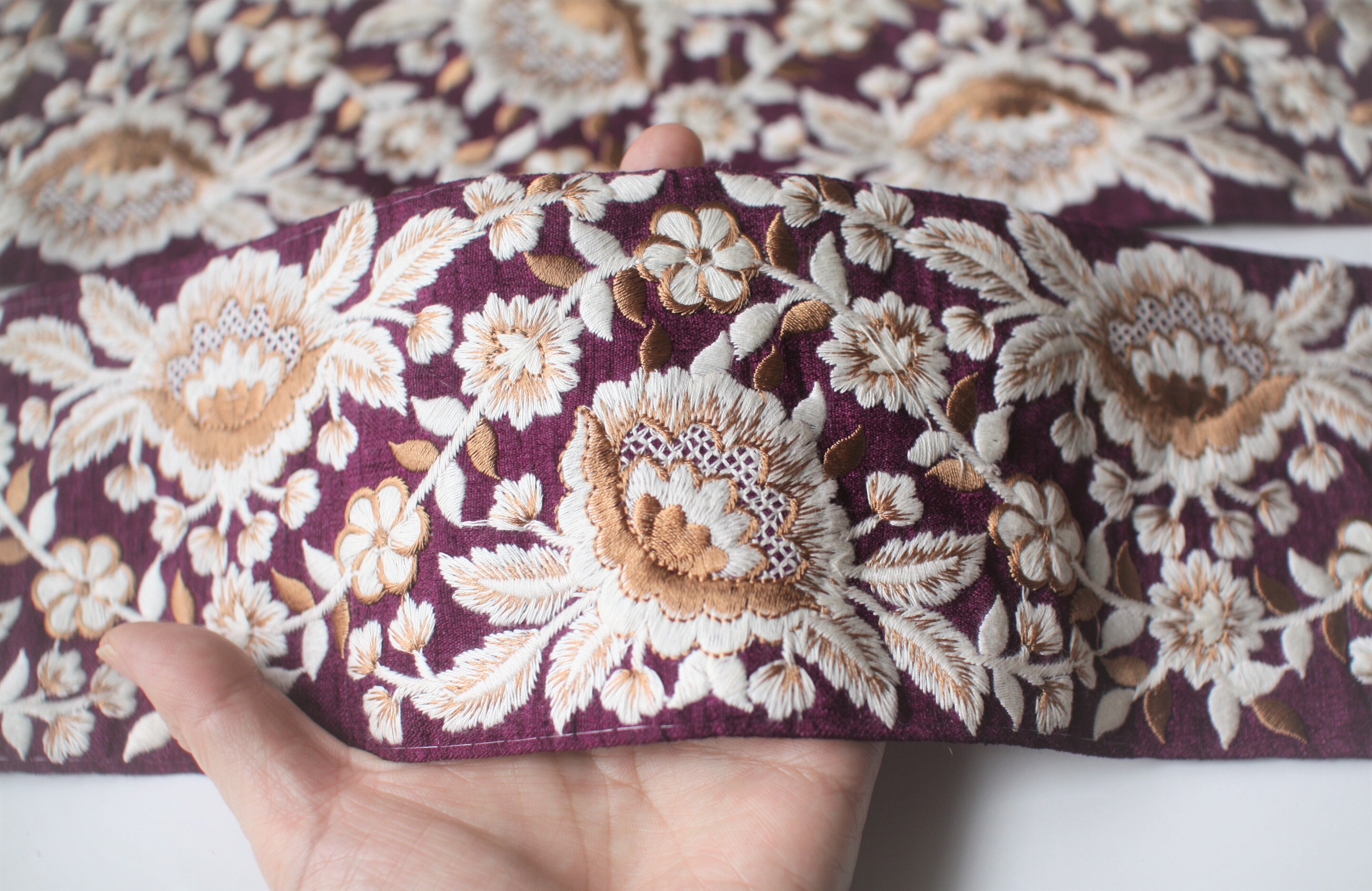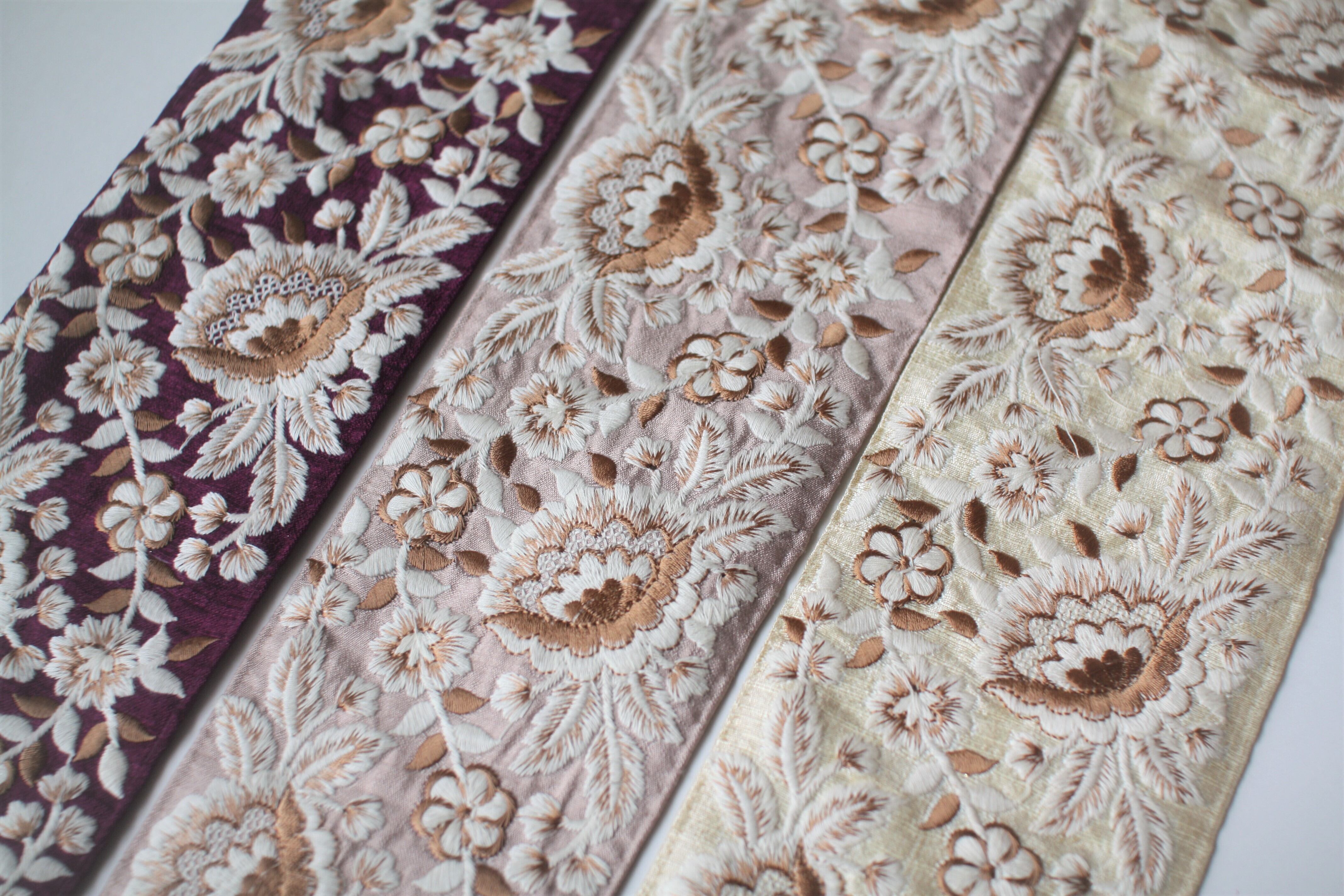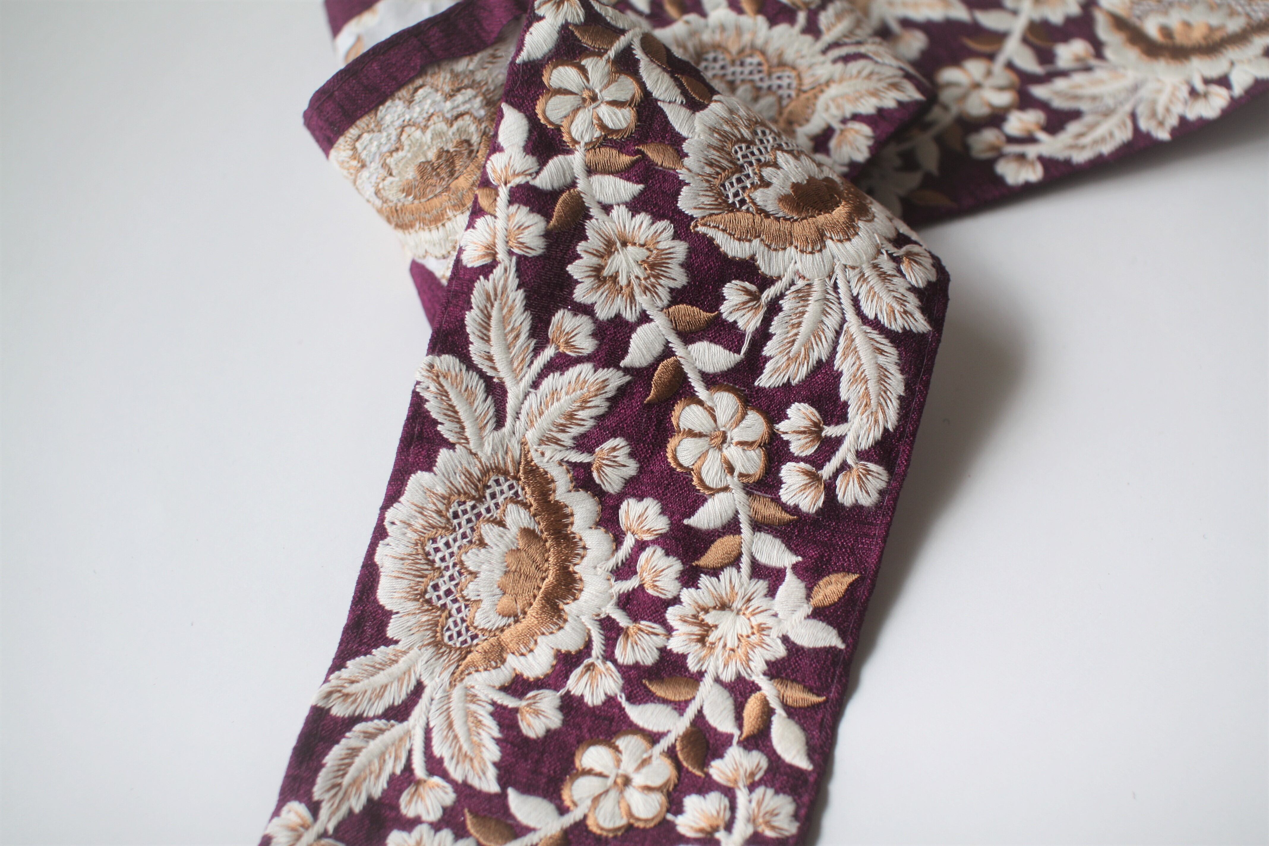 ◆75cmカット済◆インド花柄刺繍リボン・パープル