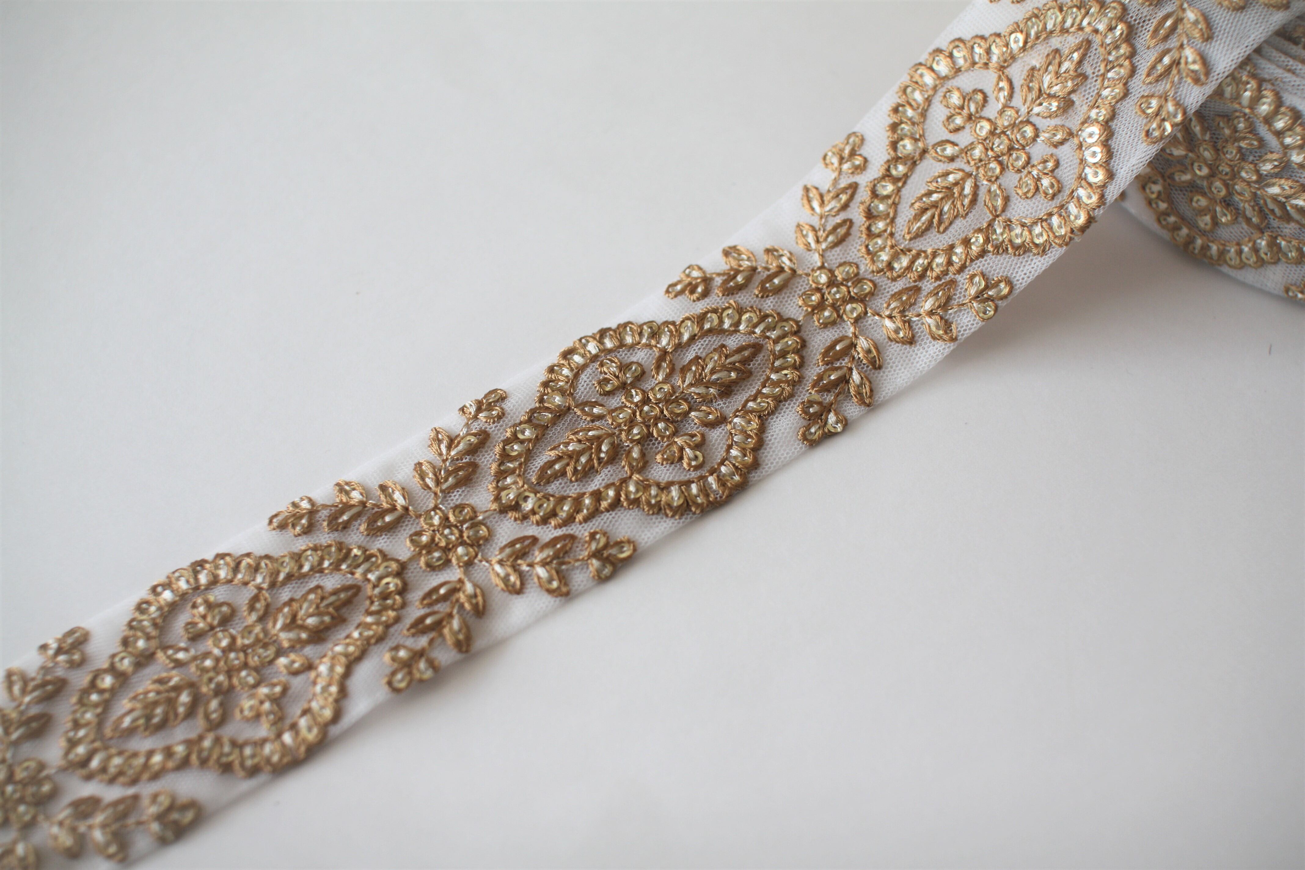 ◆1mカット済◆チュール花柄刺繍リボン・ホワイト