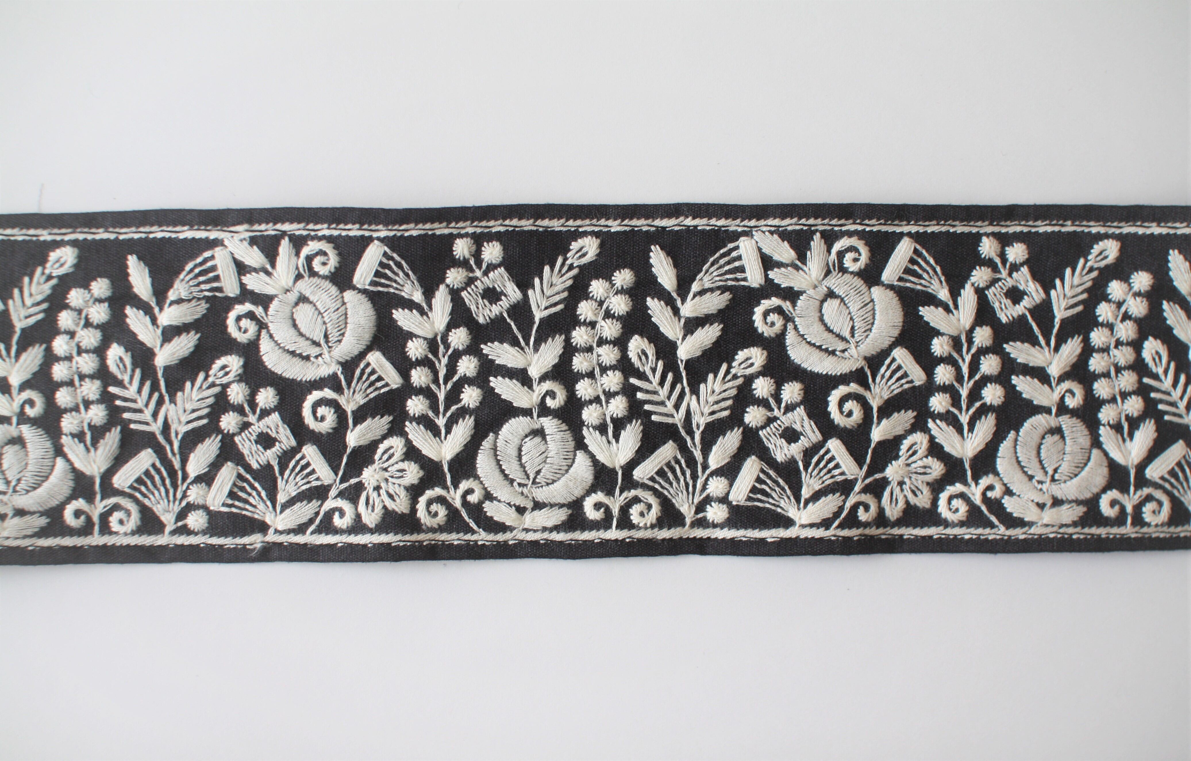 ◆1mカット済◆インド花柄刺繍リボン・ブラック
