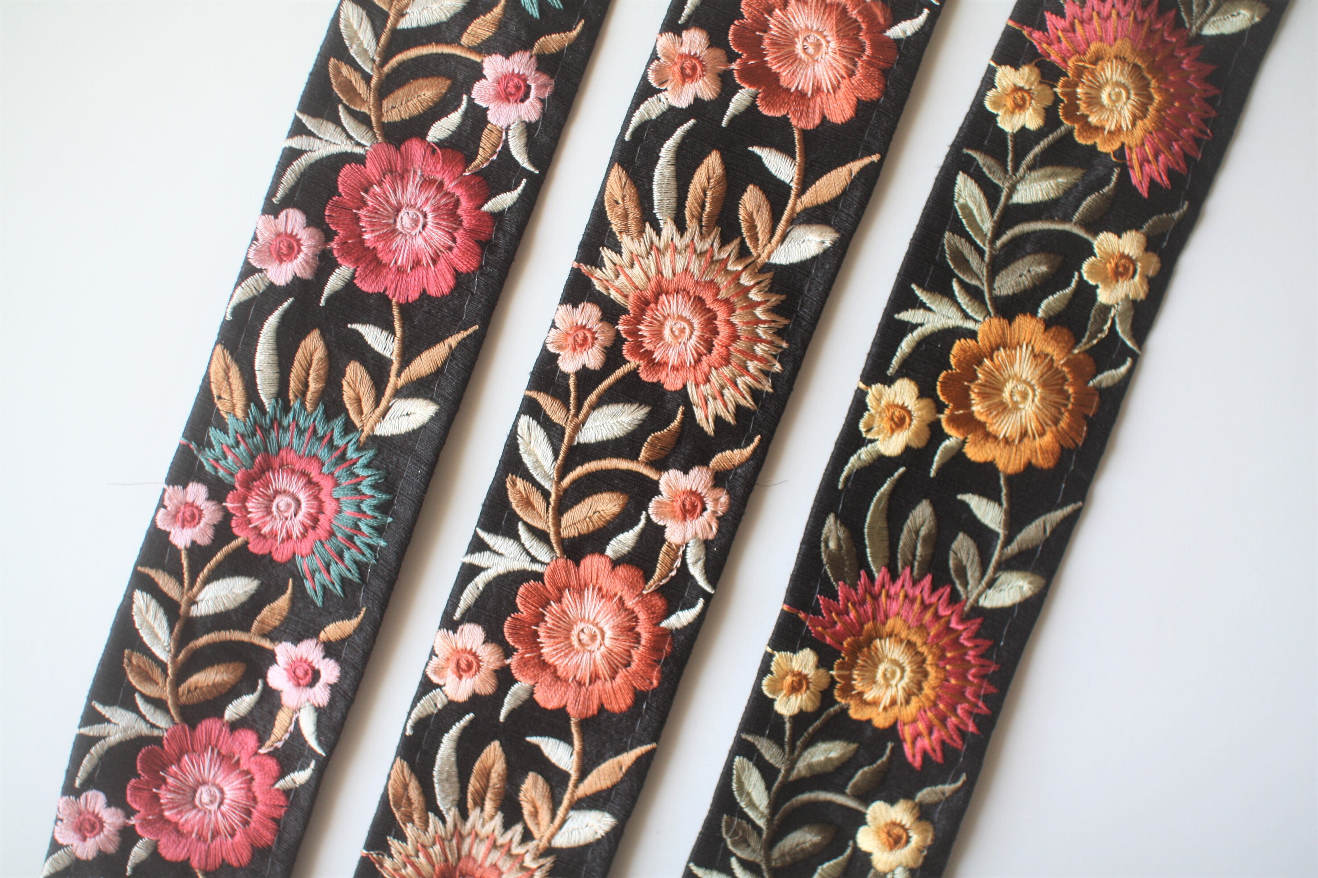 ◆70cmカット済◆インド花柄刺繍リボン・パープル