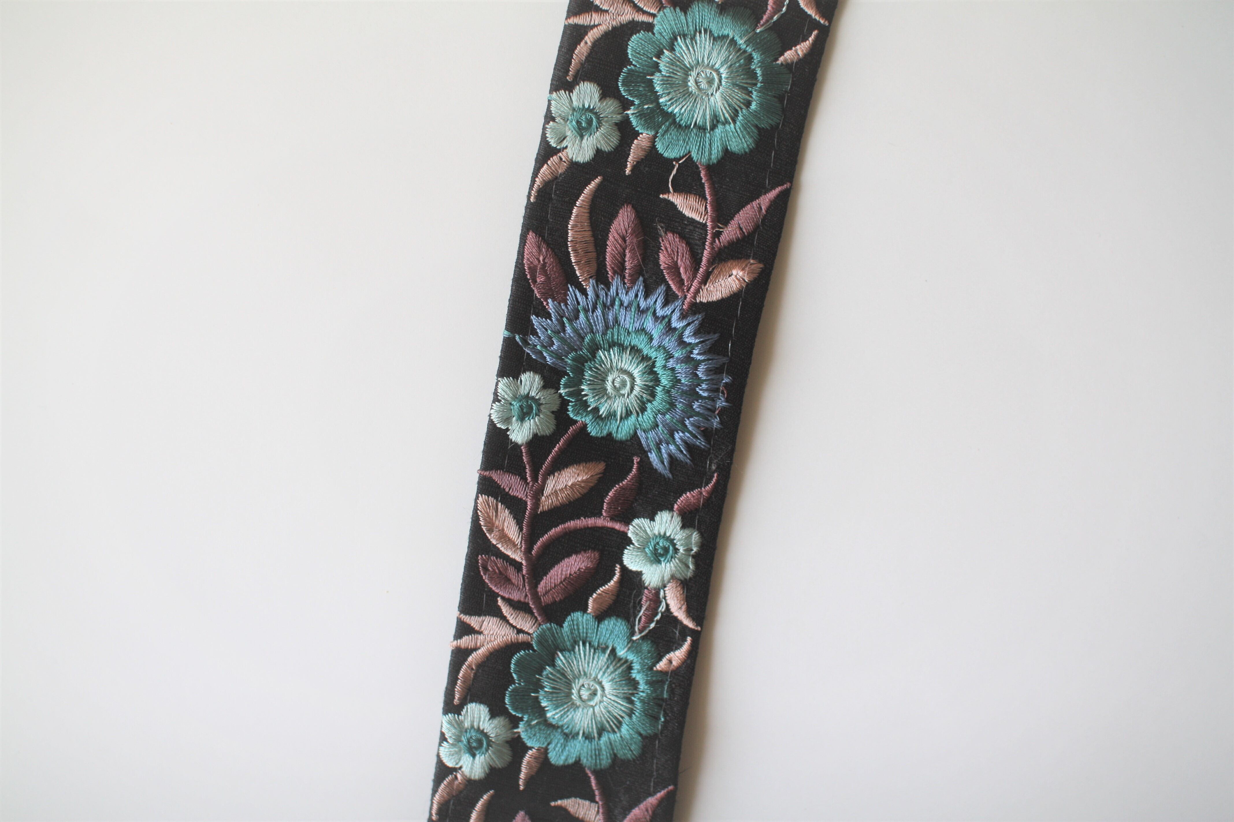 ◆70cmカット済◆インド花柄刺繍リボン・ブルーグリーン