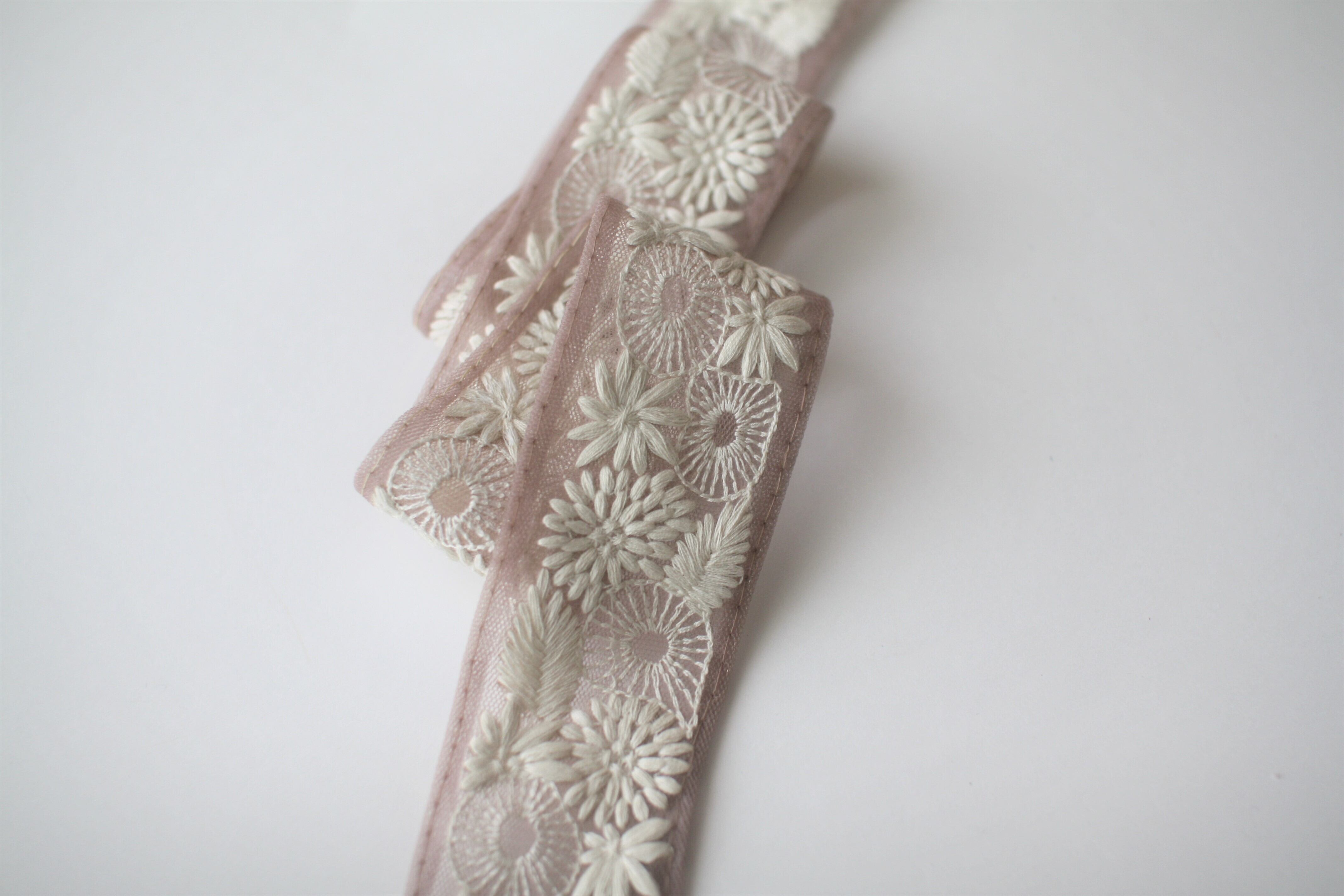 ◆1mカット済◆チュール花柄刺繍リボン・ローズグレー