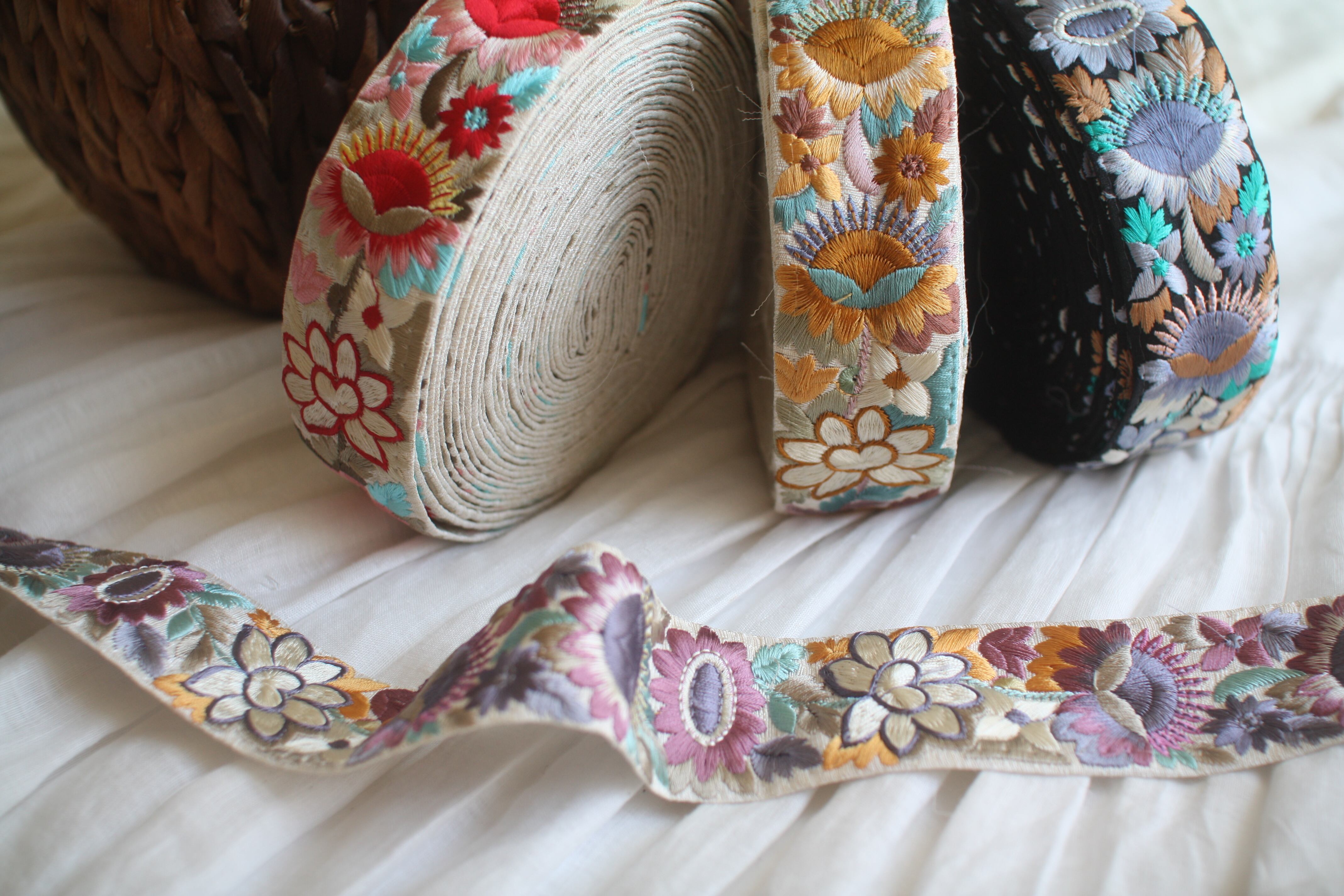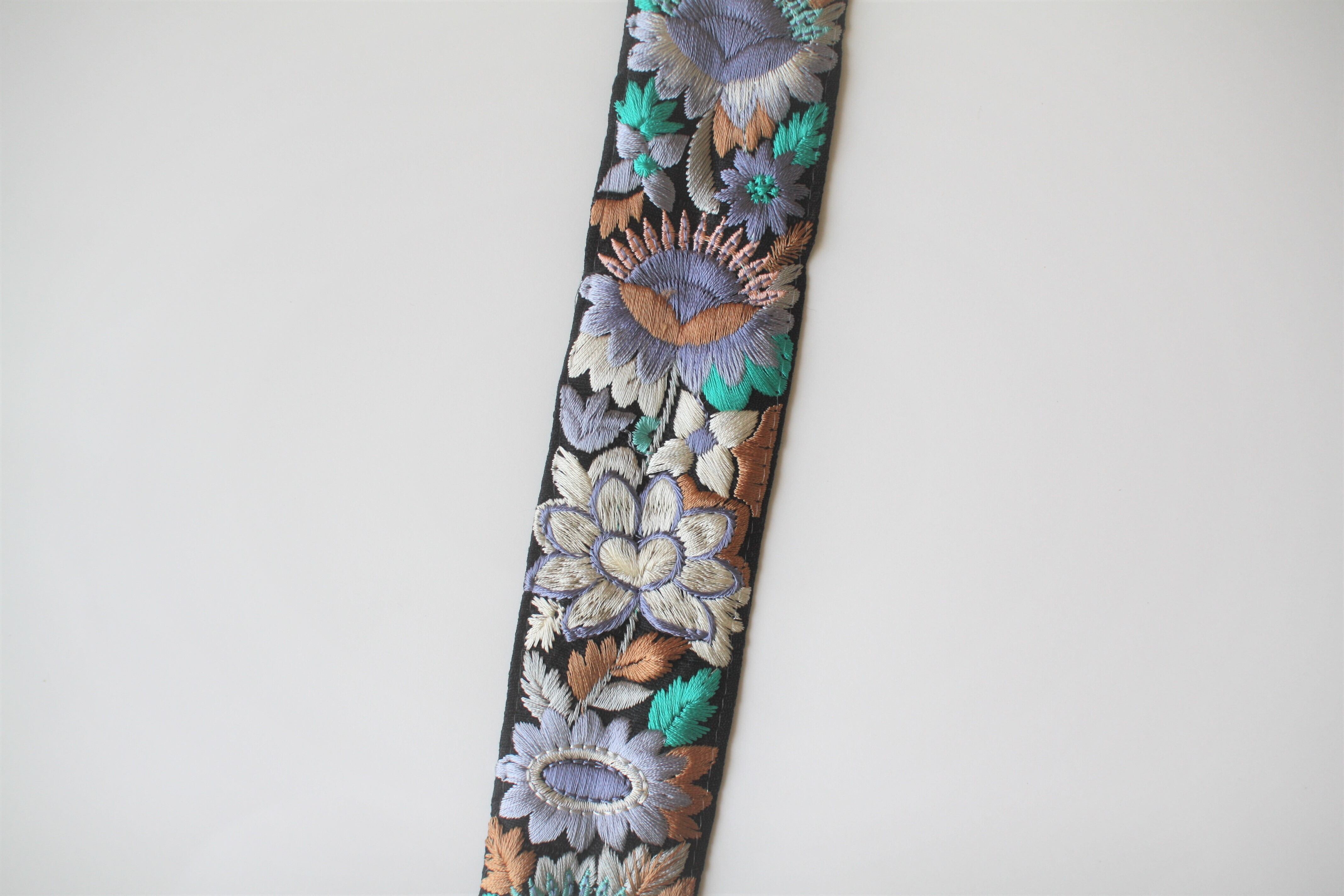 ◆70cmカット済◆インド花柄刺繍リボン・ブルー