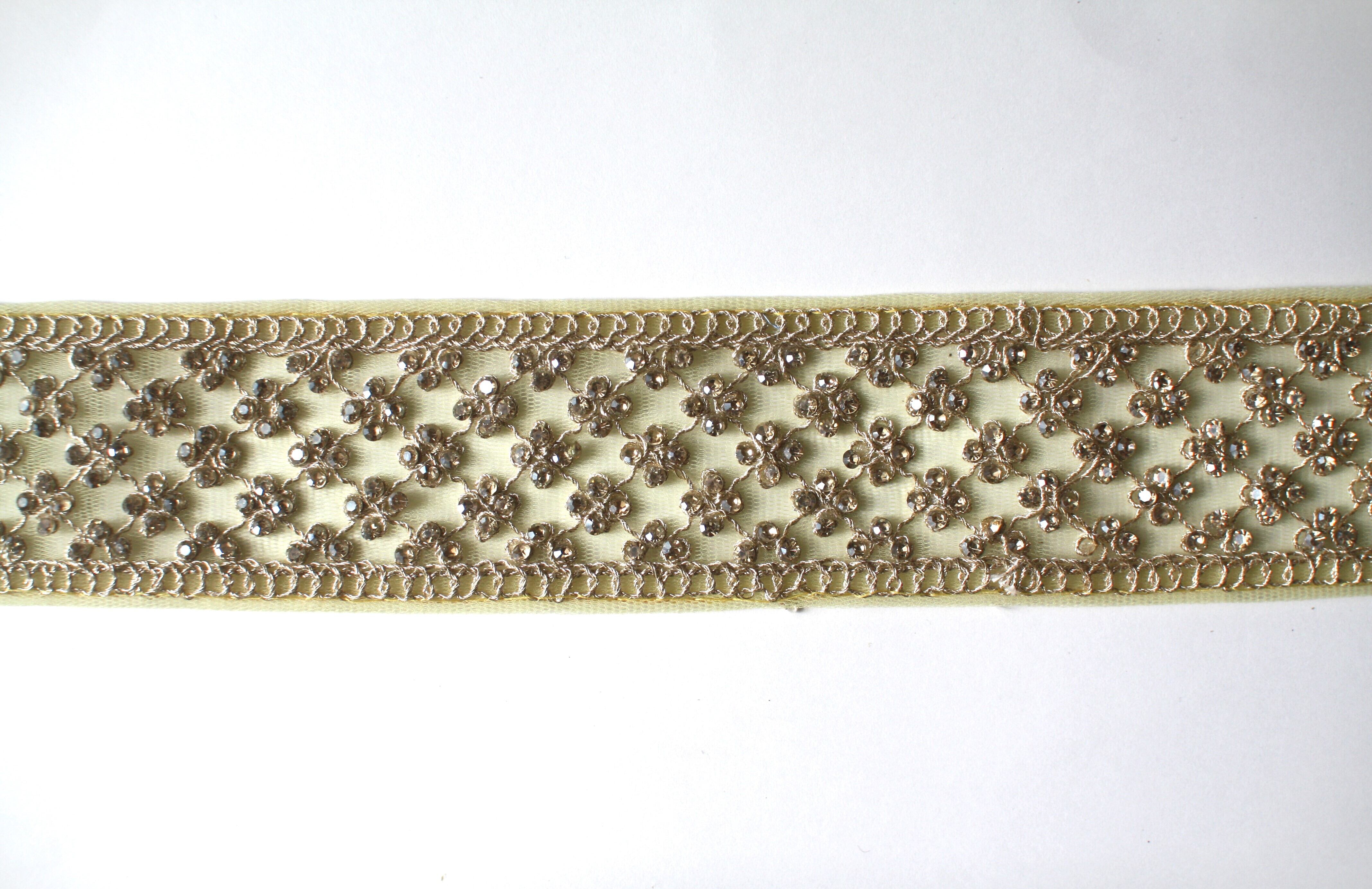 ◆1mカット済◆チュール花柄刺繍リボン・サンド
