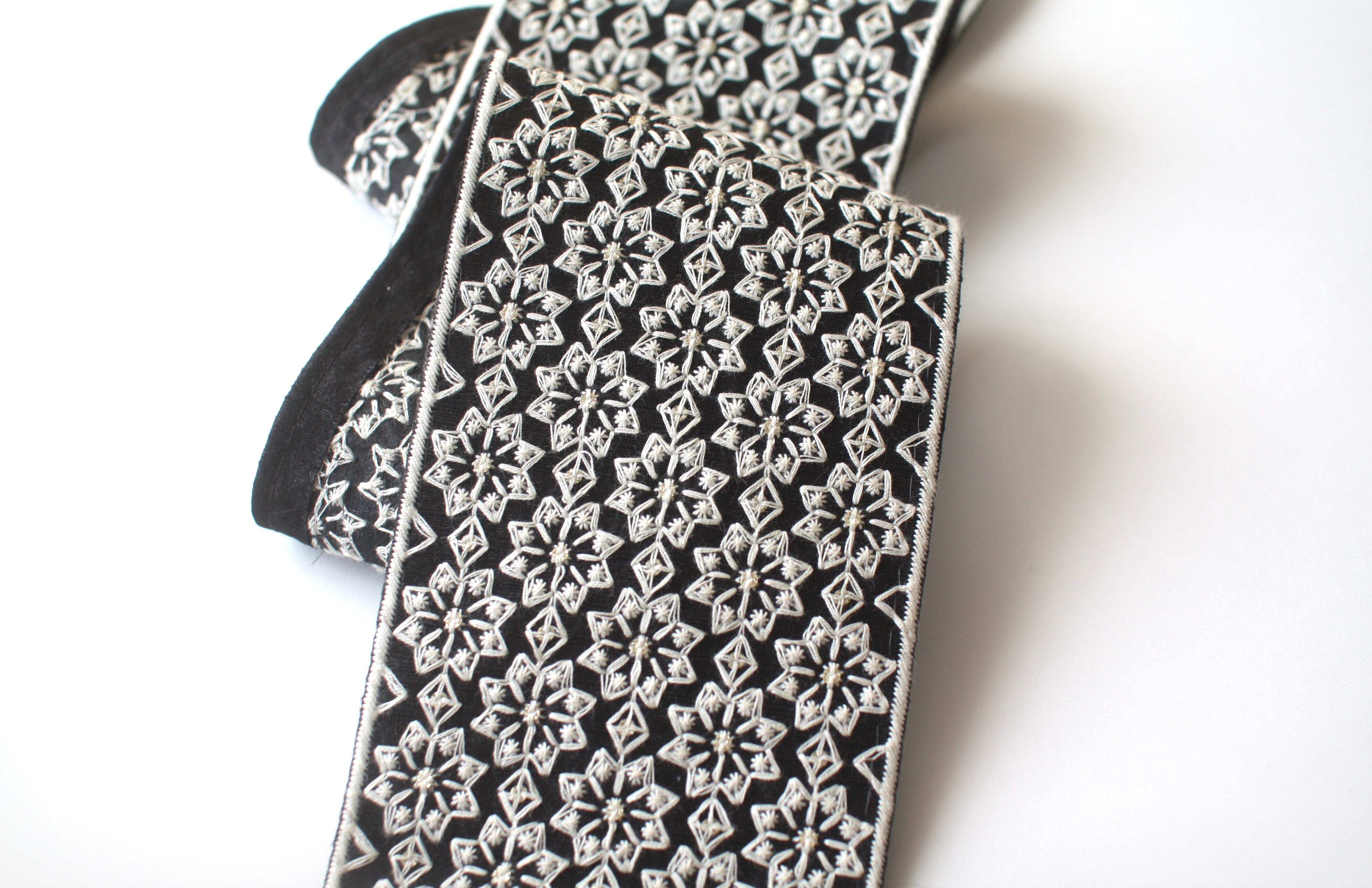 ◆1mカット済◆インド花柄刺繍リボン・ブラック