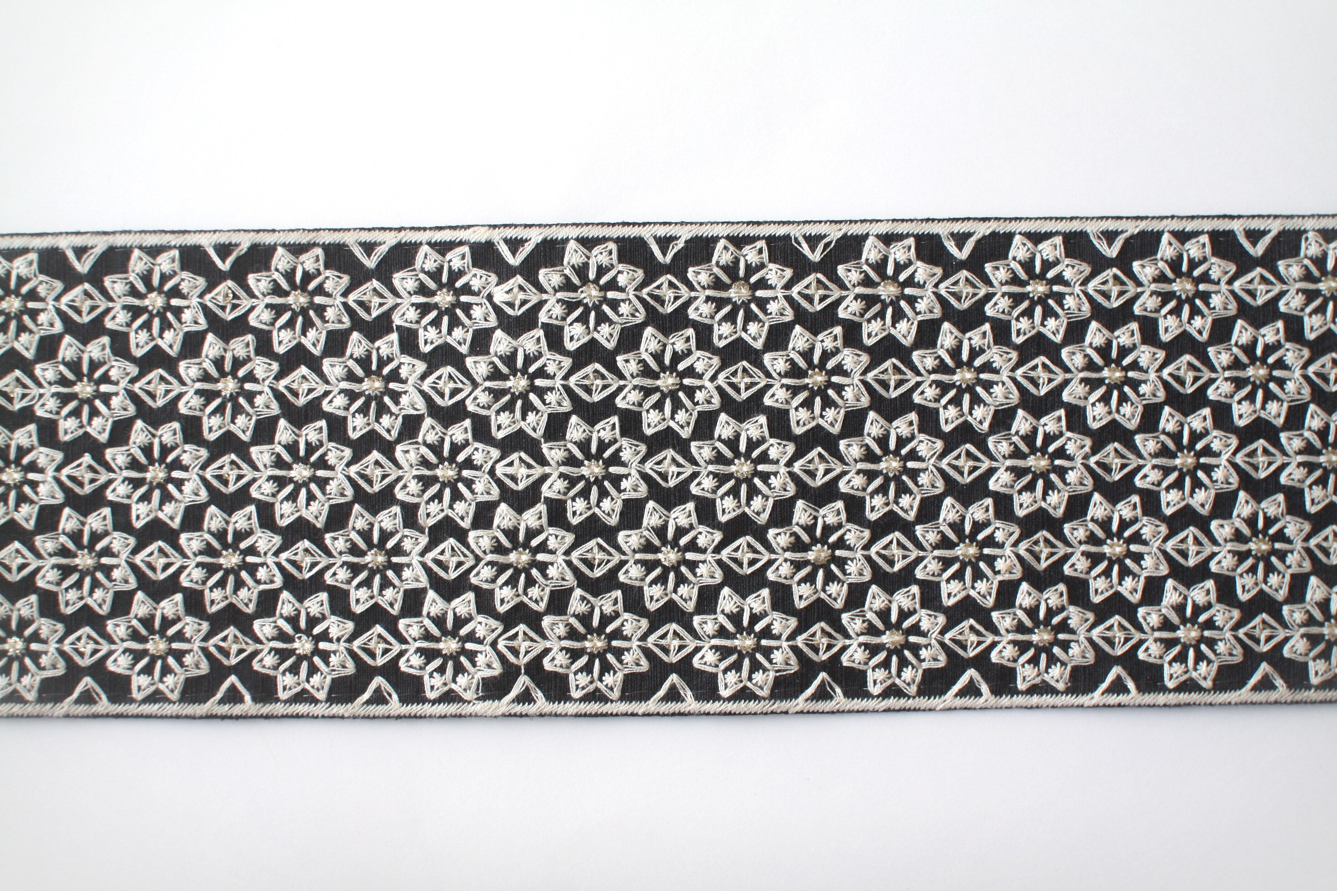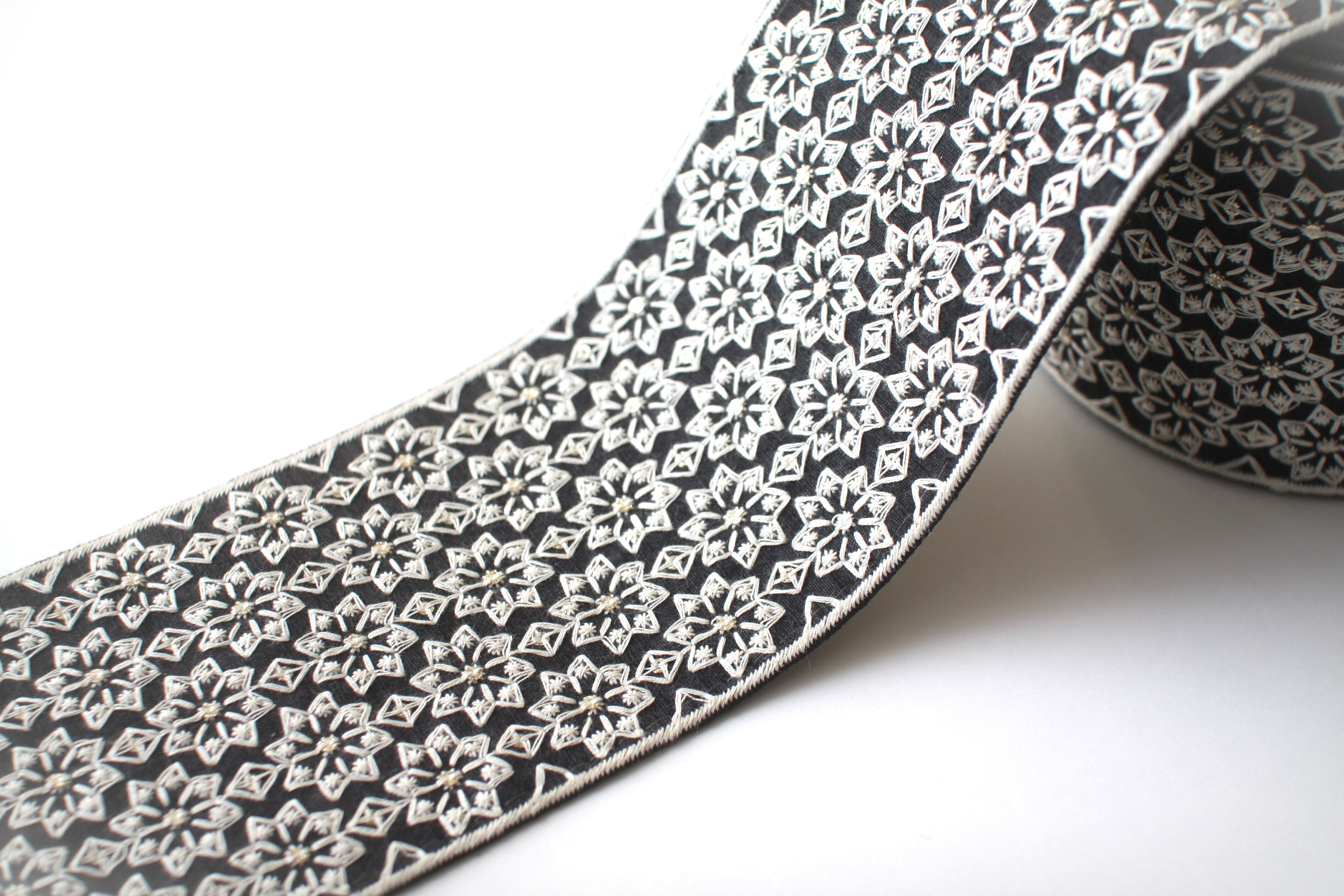 ◆90cmカット済◆インド花柄刺繍リボン・ブラック