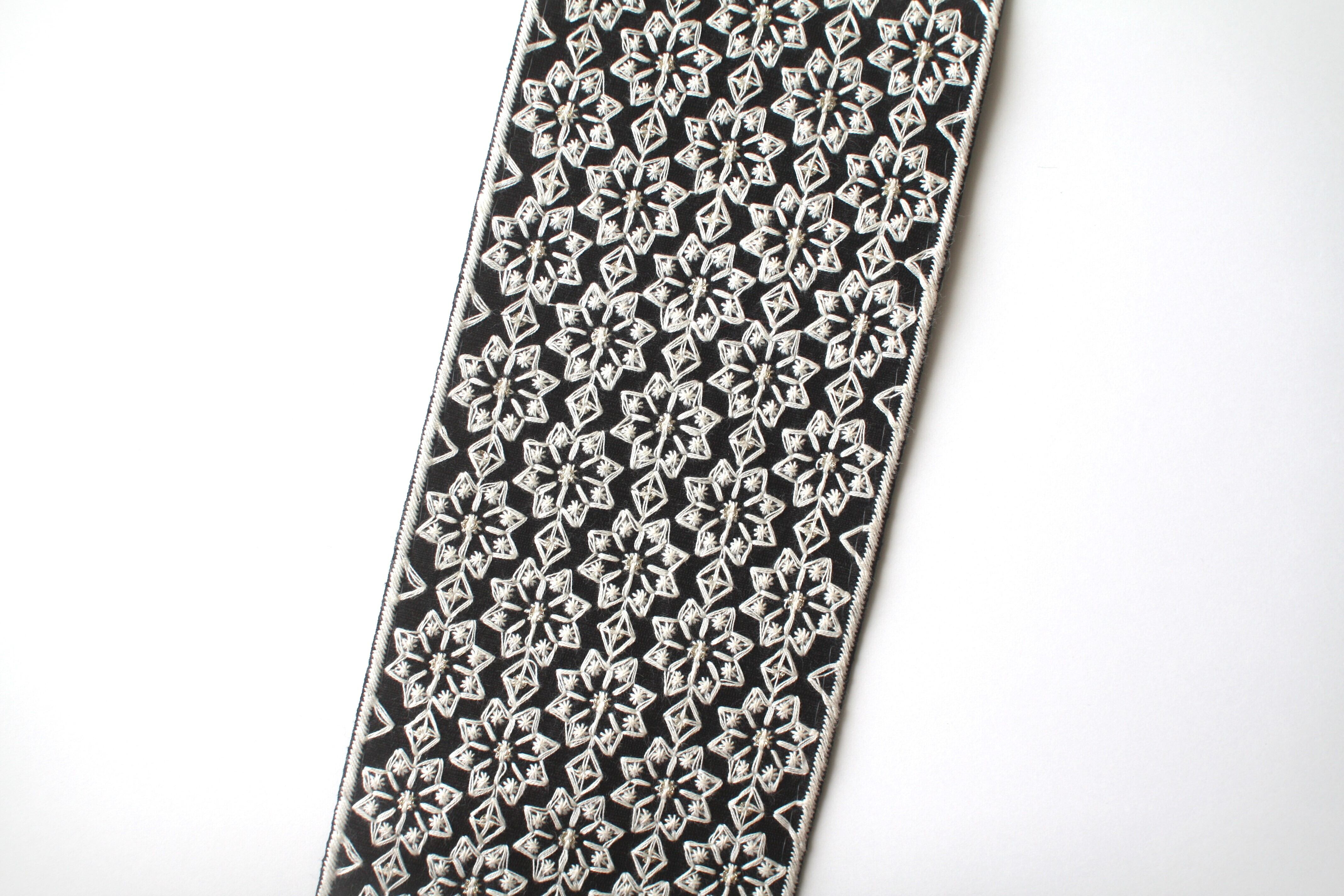◆80cmカット済◆インド花柄刺繍リボン・ブラック