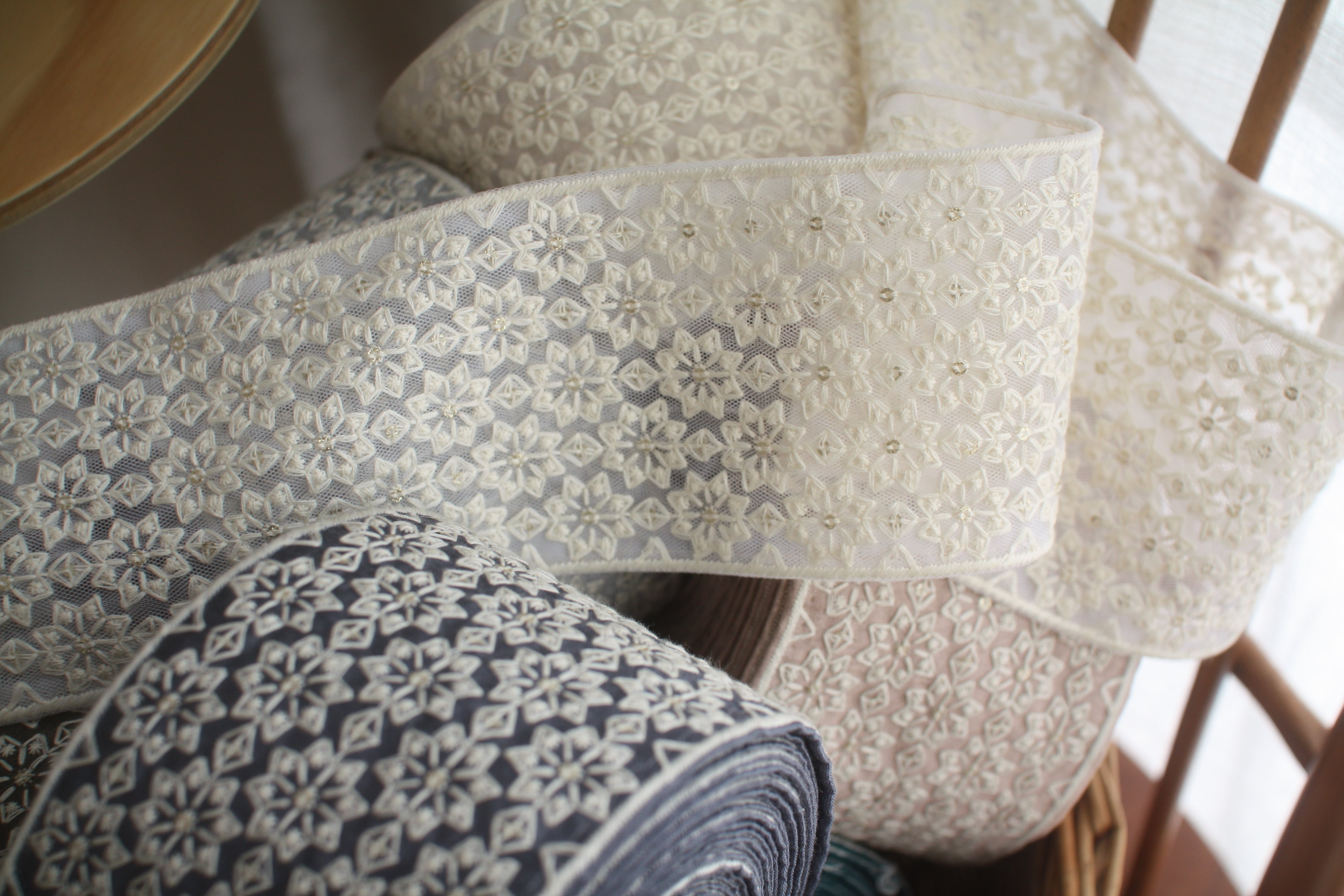 ◆65cmカット済◆インド花柄刺繍リボン・ブラック