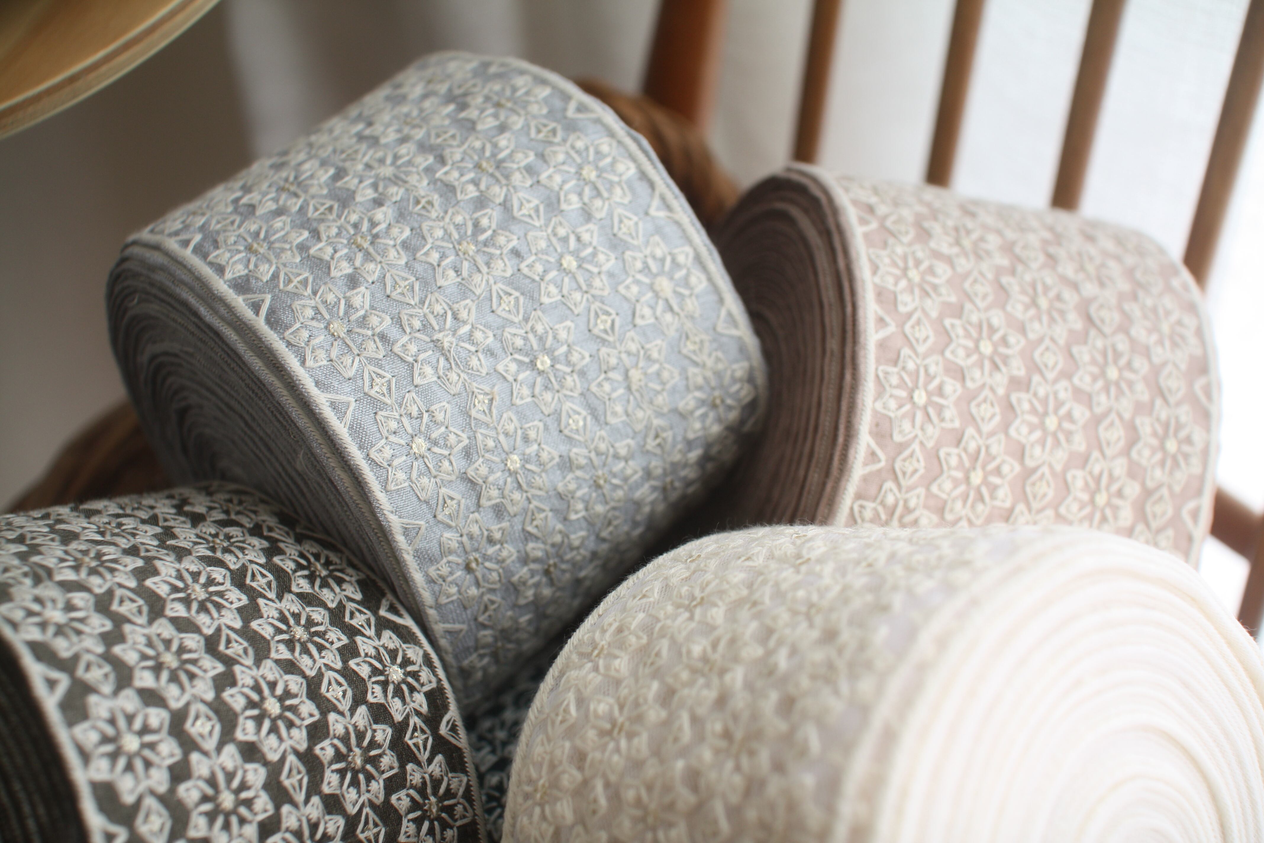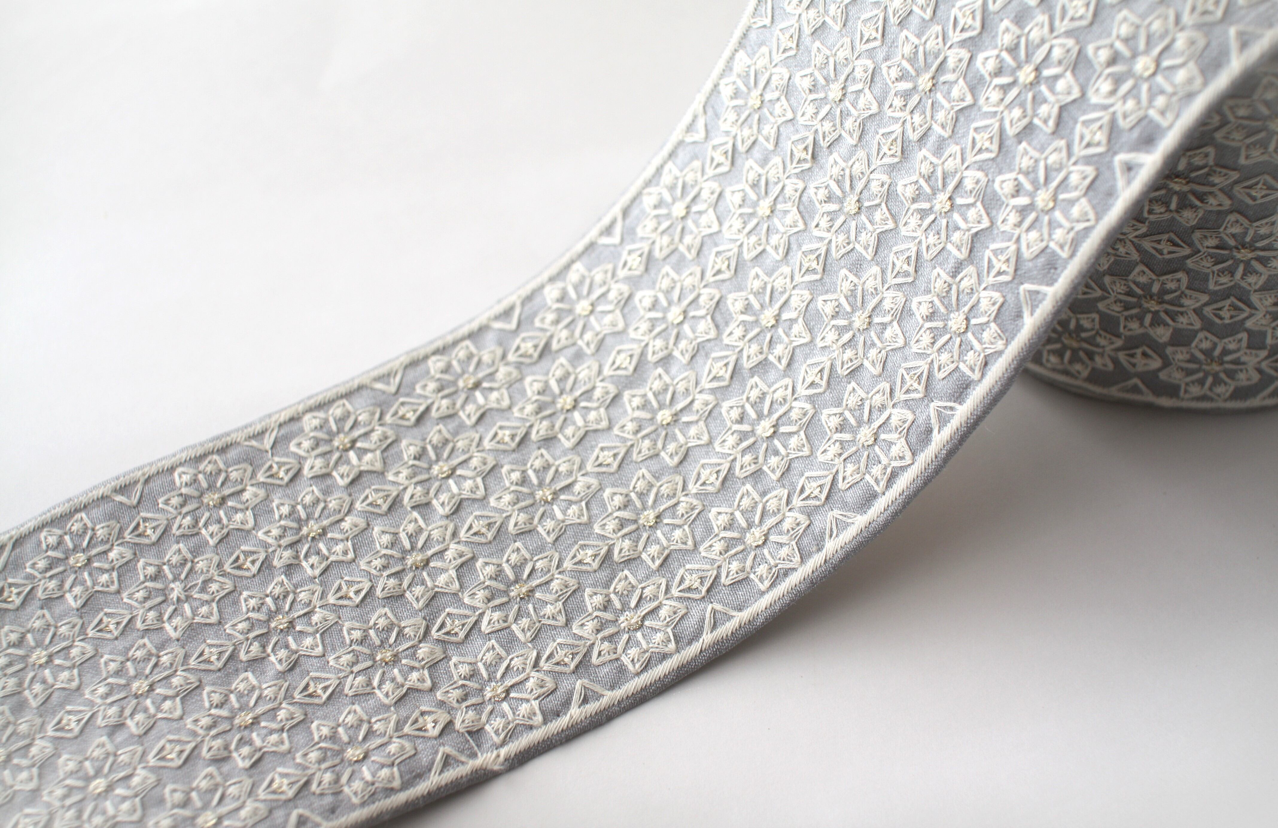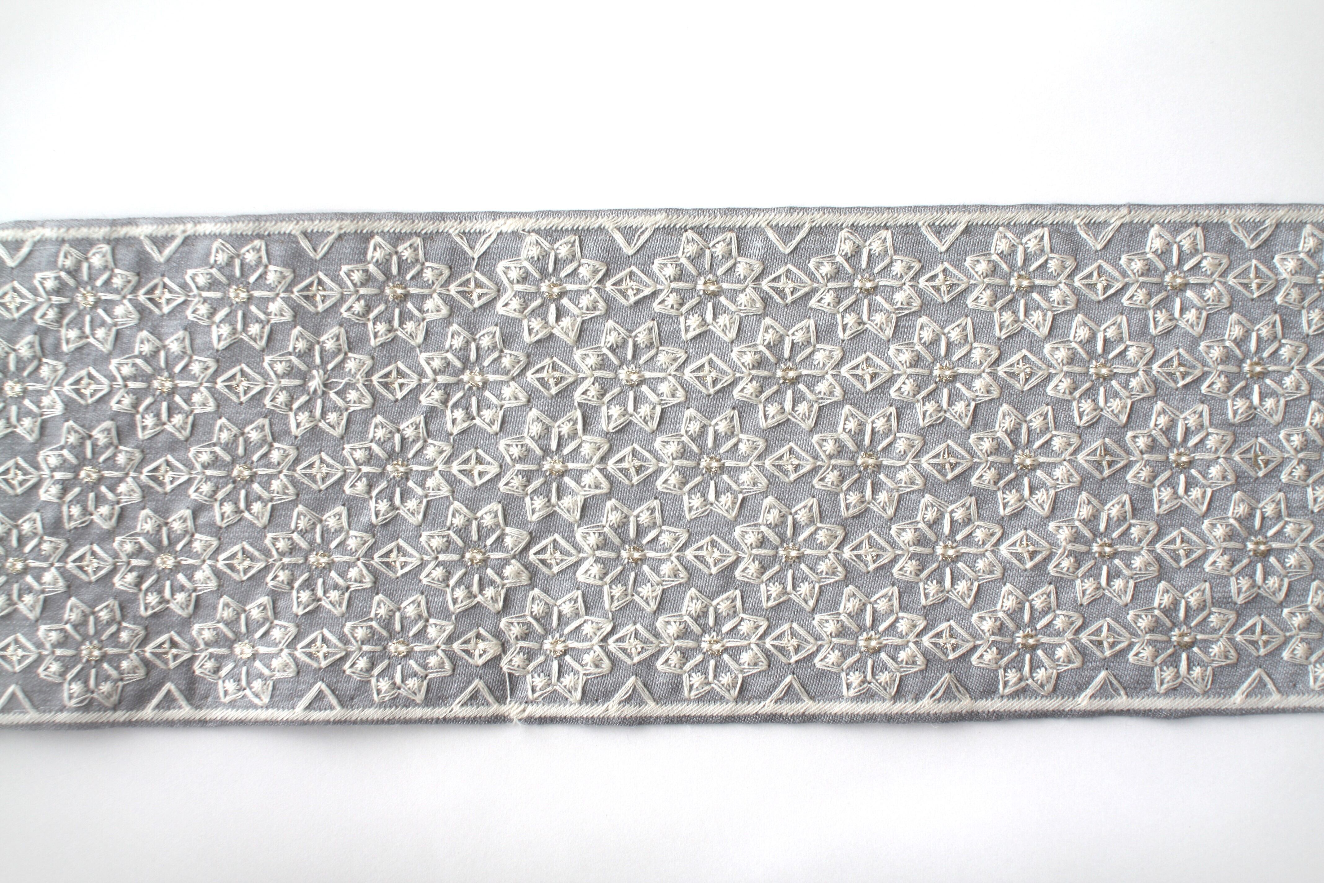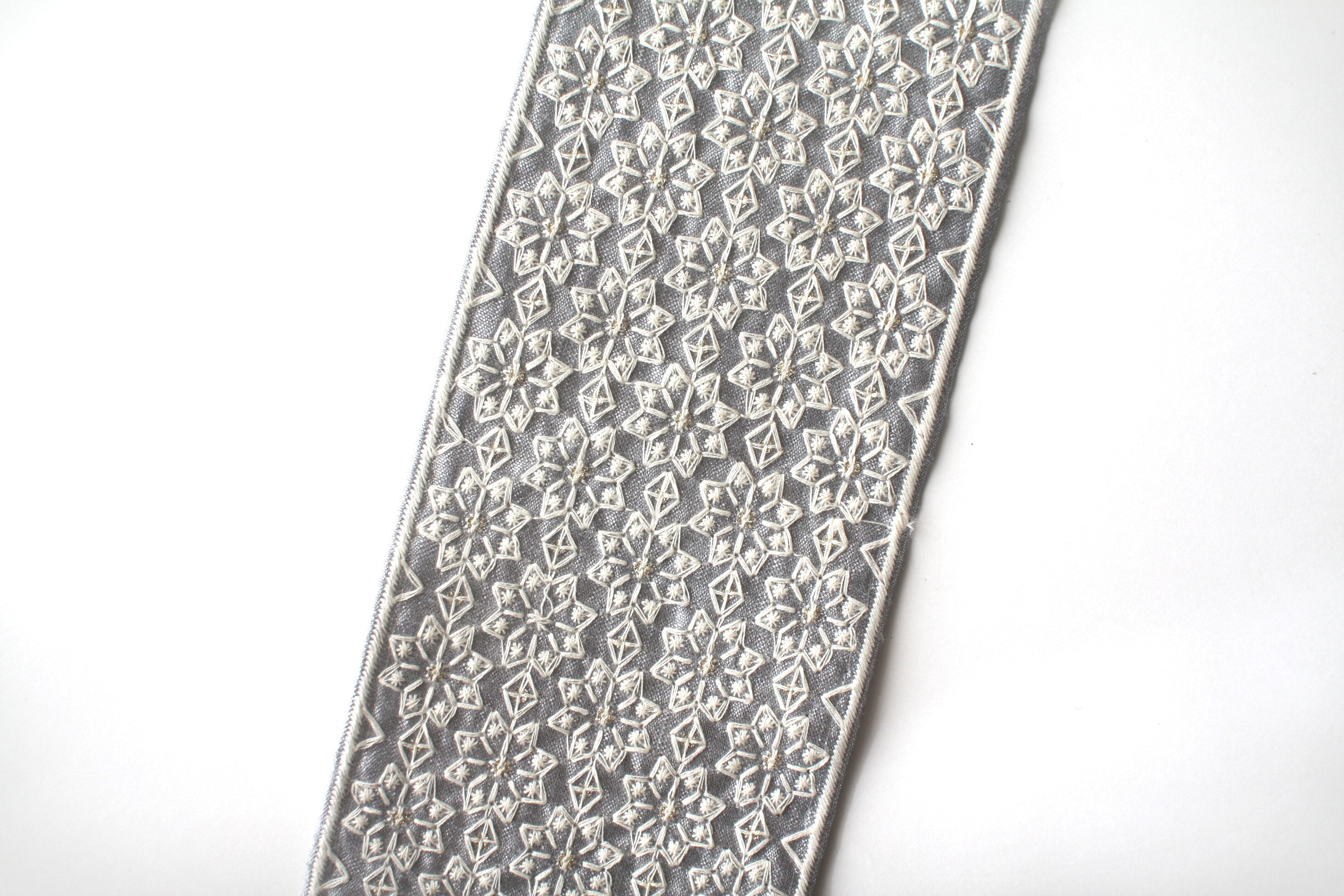 ◆1mカット済◆インド花柄刺繍リボン・アッシュグレー