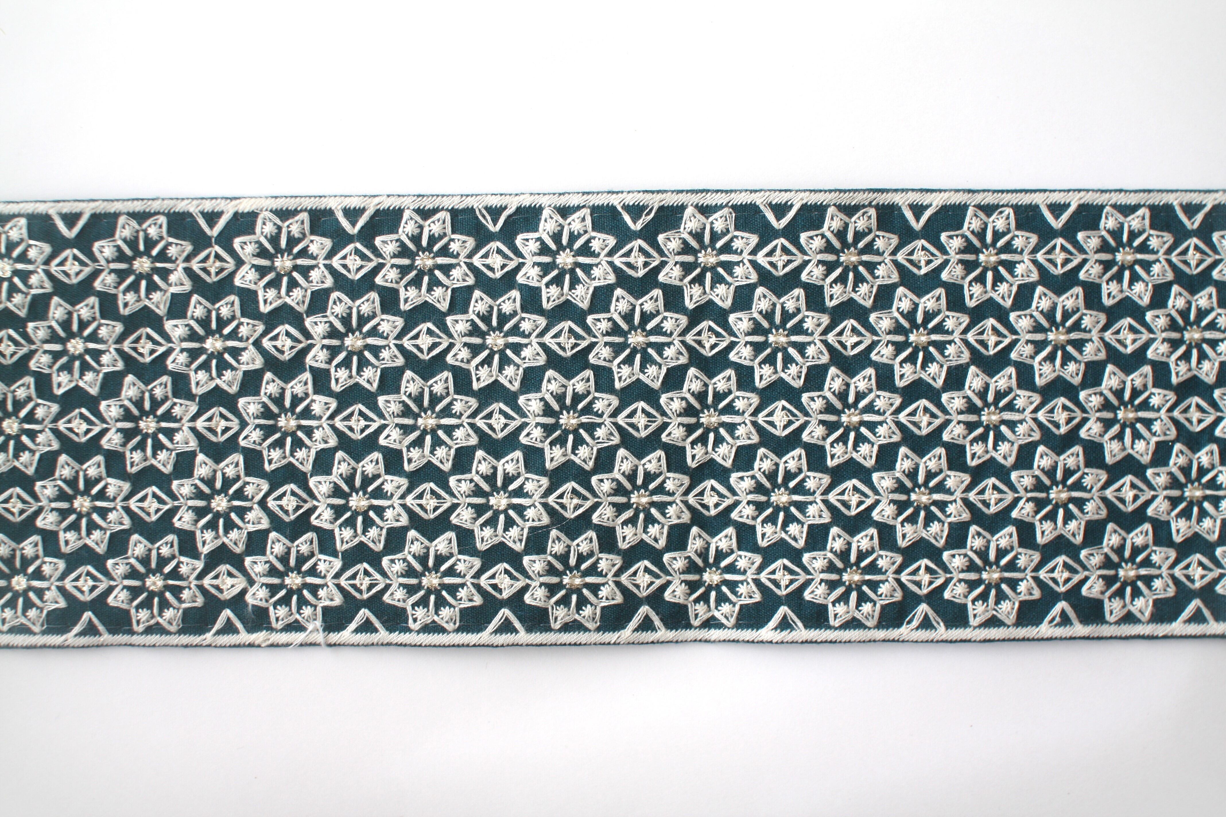 ◆85cmカット済◆インド花柄刺繍リボン・グリーン