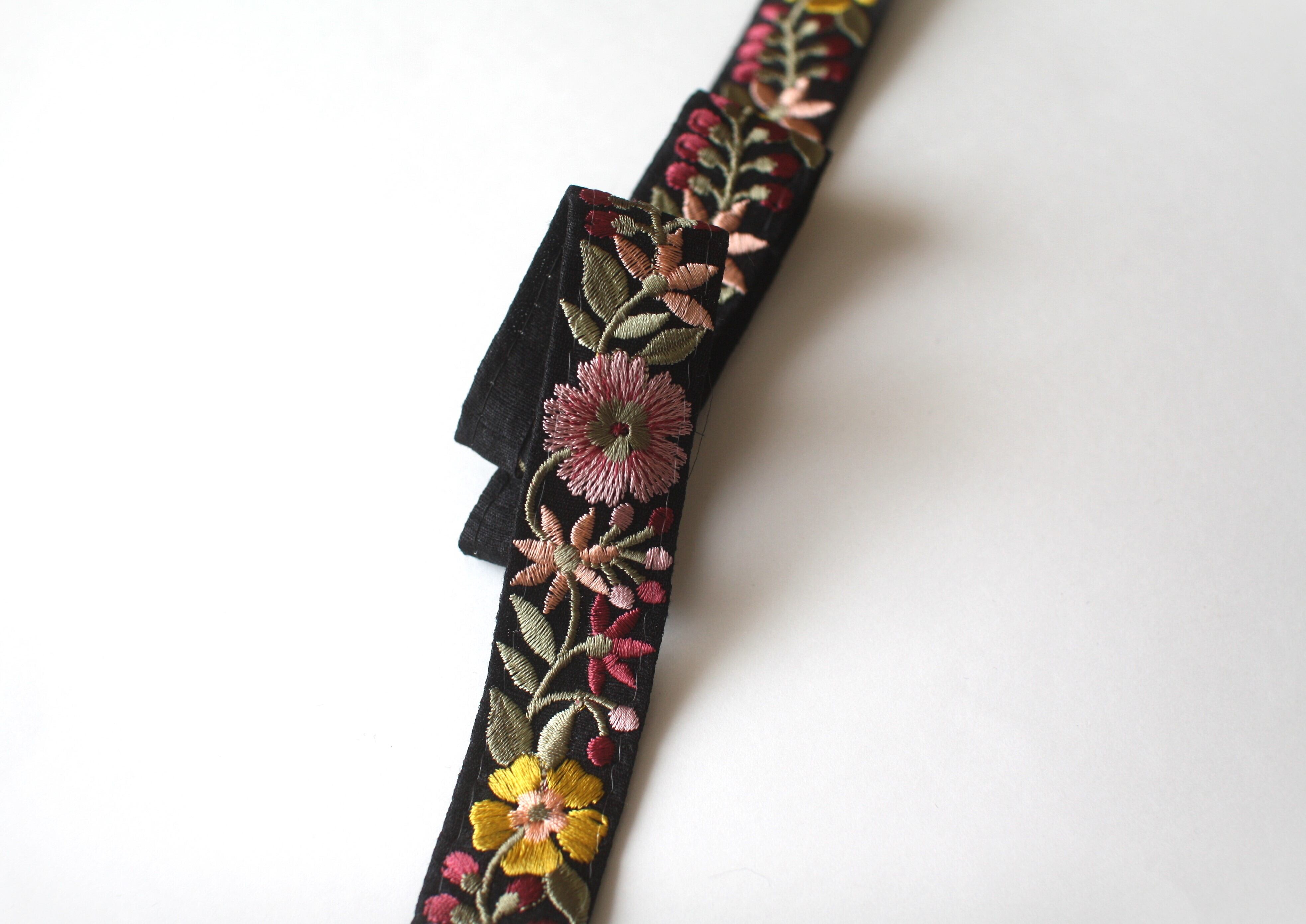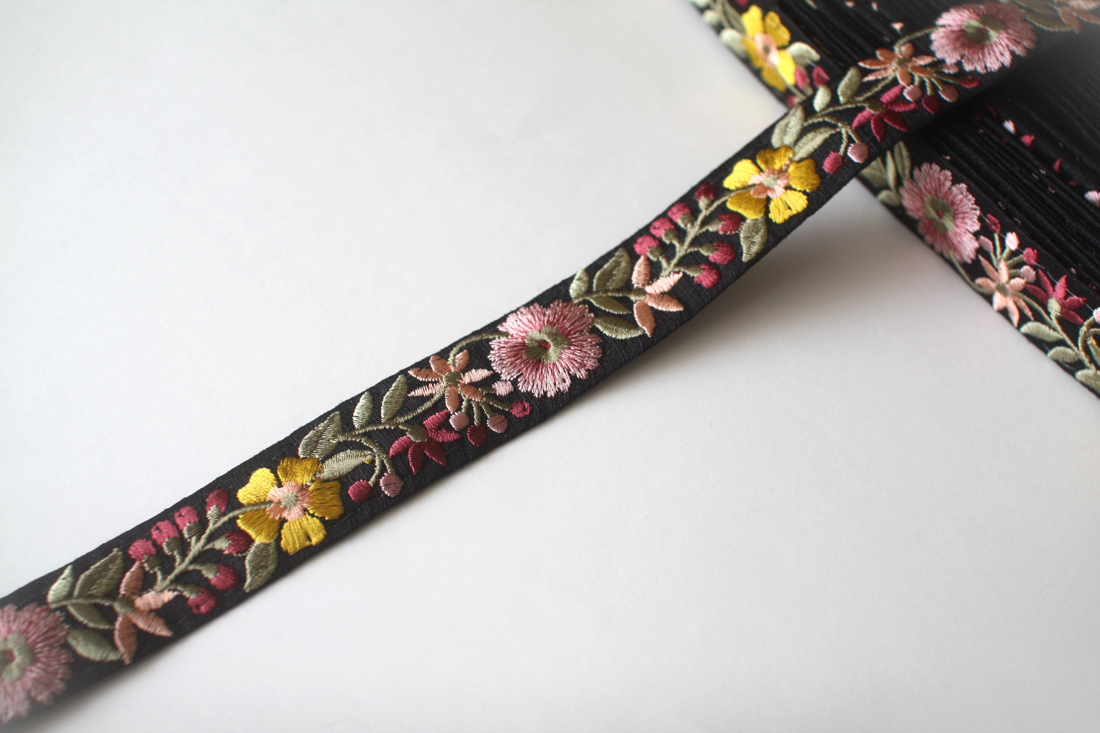 ◆80cmカット済◆インド花柄刺繍リボン・ピンク×イエロー